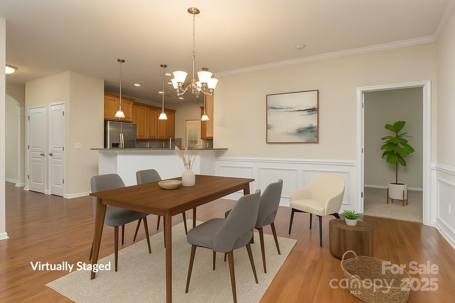 Welcome to 3104 Streamhaven Drive, a lovely hideaway in the center of the quiet Cobblestone neighborhood of Indian Land. This immaculately kept three-bedroom, three-bathroom home, close to Ballantyne, Charlotte, and Fort Mill, seamlessly combines classic charm with contemporary convenience. When you enter, you'll find a large, light-filled space with beautiful architectural features like crown molding, wainscoting, and hardwood flooring on the main floor. A well-appointed kitchen with granite countertops, stainless steel appliances, lots of cabinets, large pantry and a chic tile backsplash flows naturally from the open-concept living and dining areas. The family room is anchored by a warm gas fireplace, and a flexible area with French doors is ideal for a home office or guest suite. The tranquil ensuite features a tray ceiling, a custom walk-in closet, and a spa-style bathroom with tile flooring, a garden tub, and a walk-in shower. The basement has an extra bedroom providing flexibility for expanding families, guests, or other uses. With a large bedroom, a full bathroom, and direct entrance to a covered patio, the finished walk-out rivals the main living area and is perfect for entertaining on the weekends or living with many generations. Enjoy tranquil views of the thick forests and blossoming trees from the screened porch outside—a veritable nature and bird lover's paradise. This house is built for comfort, connection, offers lots of storage, and a quiet garden retreat. The Cobblestone community is situated in a desirable area with well regarded schools and convenient access to many and growing neighborhood amenities. (Note: All photos have been virtually staged for inspiration)