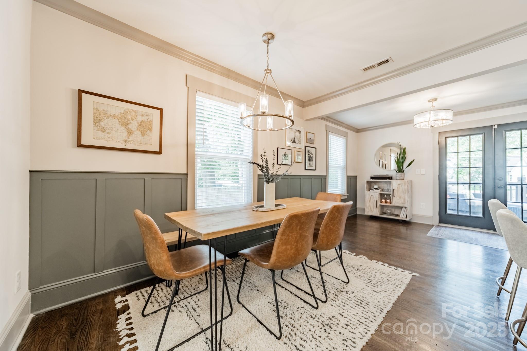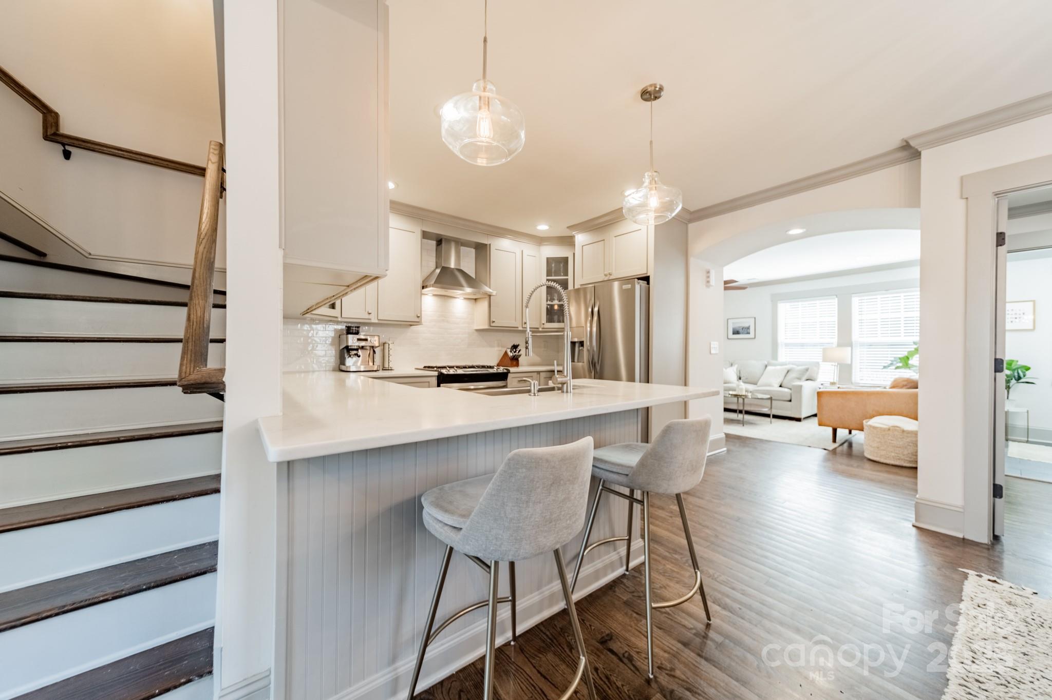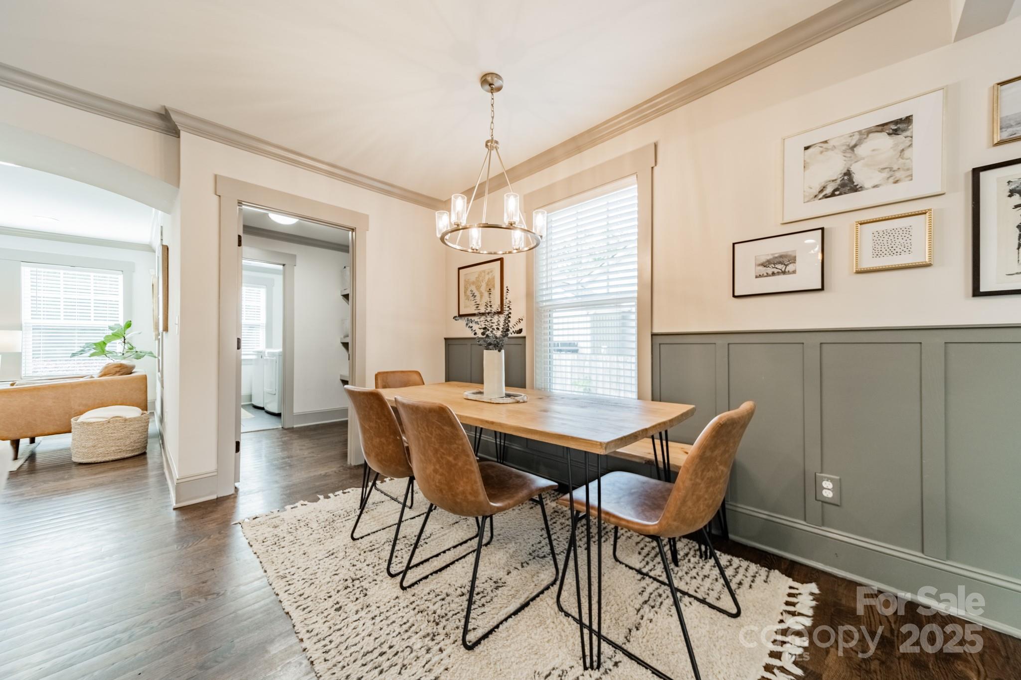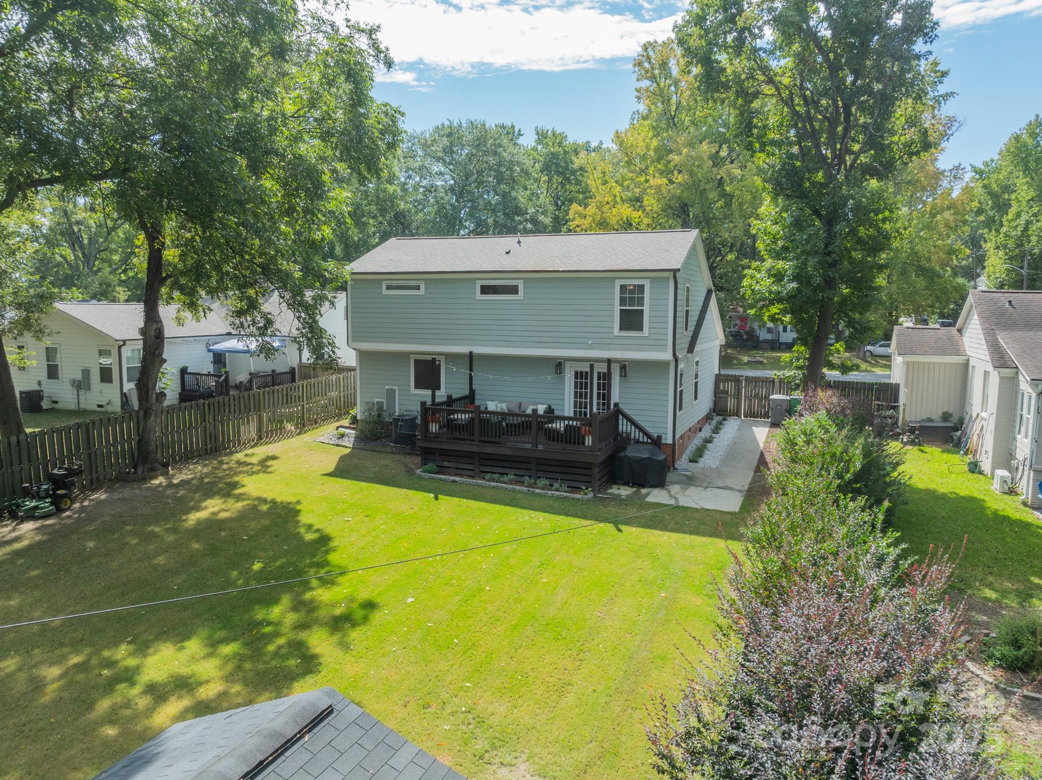 Classic charm meets modern comfort in this fully renovated 1.5-story 1948 bungalow near historic Camp Greene. Hardwood floors, arched doorways & detailed millwork create a warm, inviting feel. The cozy living room flows into a spacious kitchen with elegant finishes, breakfast bar, dining area & sitting room - perfect for day-to-day living or entertaining. A generous walk-through pantry leads to the laundry, offering ample storage and effortless functionality. Two main-level BRs include the primary suite & a 2nd BR ideal for a home office or den. Upstairs, two additional BRs & a full bath provide a quiet retreat. The beautifully manicured lot features a HUGE fenced yard, garden shed & spacious deck for endless outdoor enjoyment. Set in a well-established neighborhood undergoing thoughtful revitalization, with local favorites like Legion Brewing, Pinky’s, Noble Smoke & Rhino Market nearby. Commuting is a breeze as this home is less than 10 minutes to Uptown Charlotte.