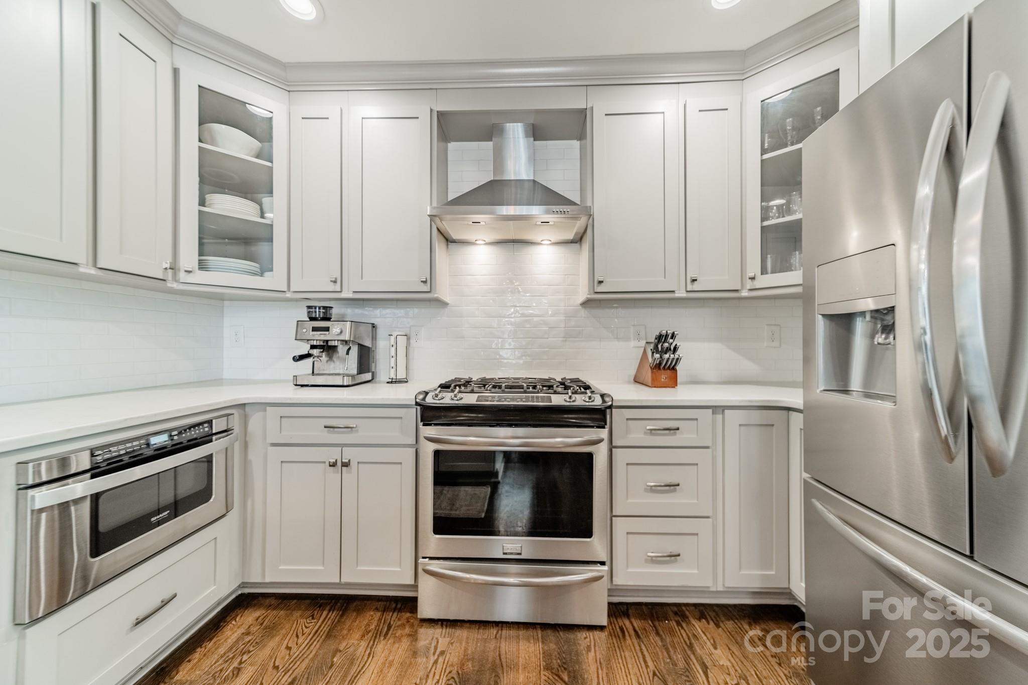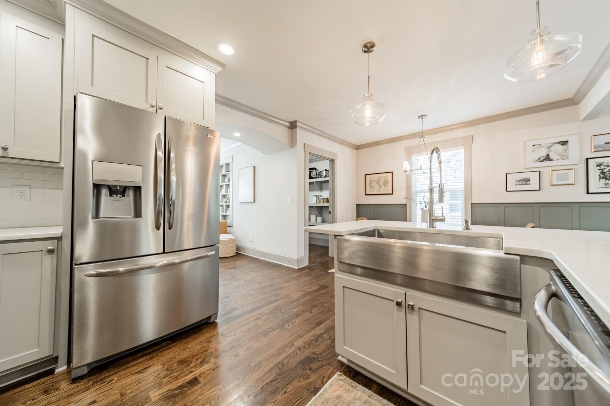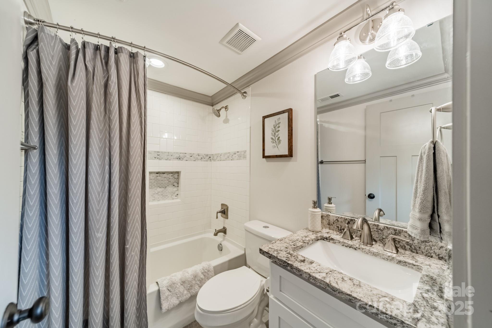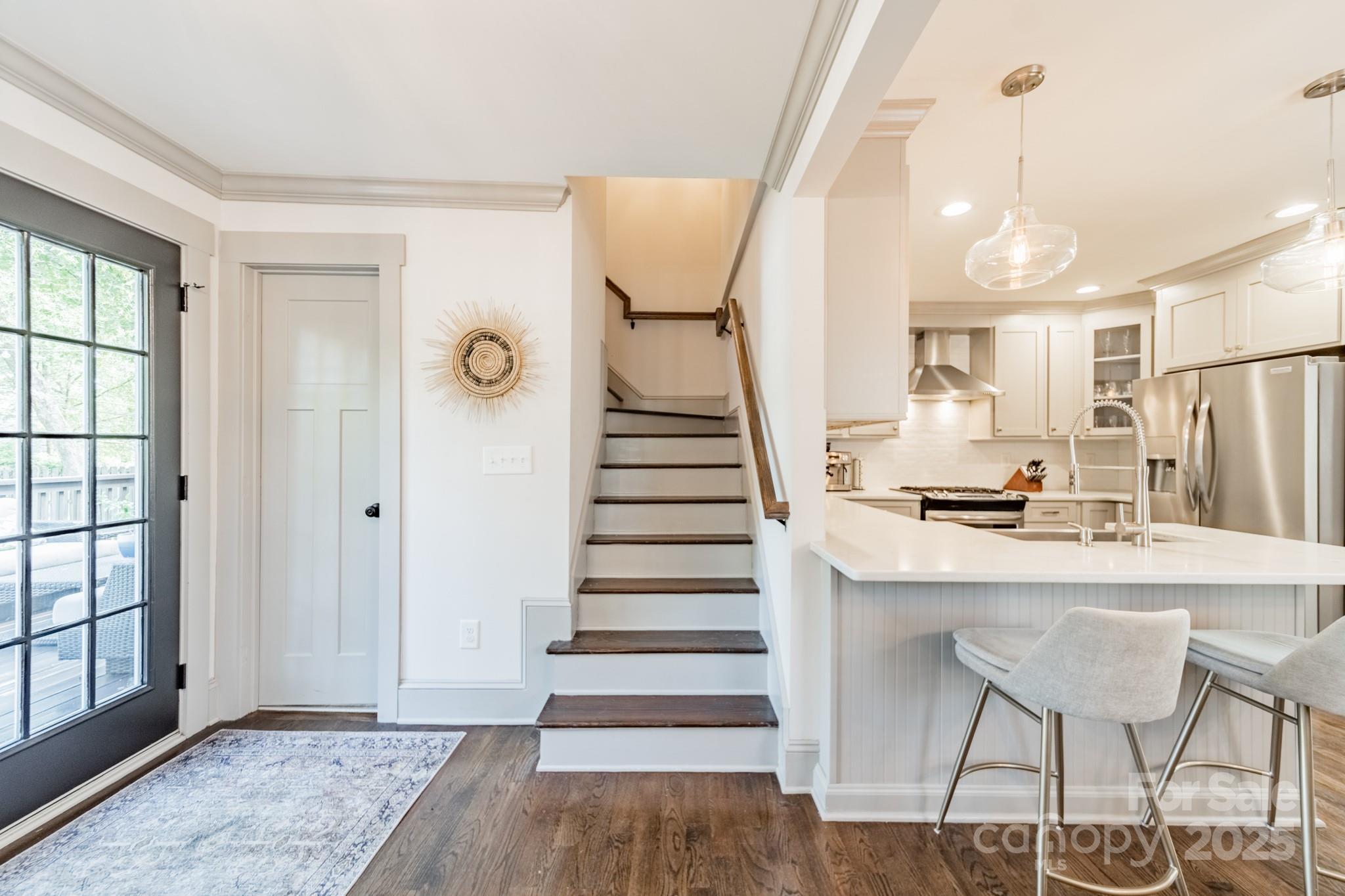 Classic charm meets modern comfort in this fully renovated 1.5-story 1948 bungalow near historic Camp Greene. Hardwood floors, arched doorways & detailed millwork create a warm, inviting feel. The cozy living room flows into a spacious kitchen with elegant finishes, breakfast bar, dining area & sitting room - perfect for day-to-day living or entertaining. A generous walk-through pantry leads to the laundry, offering ample storage and effortless functionality. Two main-level BRs include the primary suite & a 2nd BR ideal for a home office or den. Upstairs, two additional BRs & a full bath provide a quiet retreat. The beautifully manicured lot features a HUGE fenced yard, garden shed & spacious deck for endless outdoor enjoyment. Set in a well-established neighborhood undergoing thoughtful revitalization, with local favorites like Legion Brewing, Pinky’s, Noble Smoke & Rhino Market nearby. Commuting is a breeze as this home is less than 10 minutes to Uptown Charlotte.
