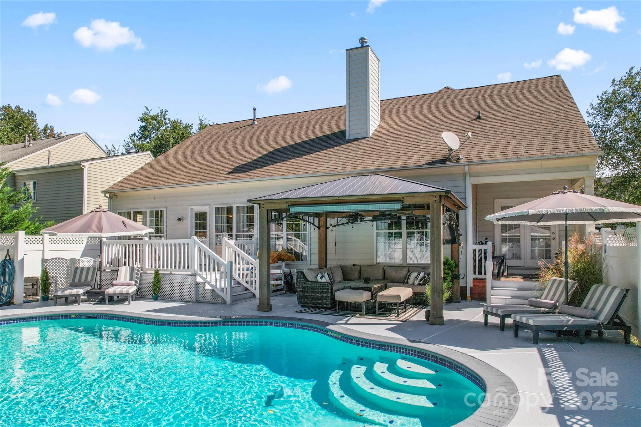 Welcome to this beautifully updated 5-bedroom, 3-bath home nestled in the desirable Winslow Bay neighborhood, offering exclusive lake access and resort-style living! This spacious and inviting residence is filled with custom upgrades and timeless charm. Step inside to discover a completely renovated gourmet kitchen designed for entertaining, featuring a massive center island, sleek cabinetry, quartz countertops, premium appliances, and designer finishes. The vaulted ceiling in the great room enhances the open, airy feel, complemented by tons of natural light streaming through an abundance of windows.The main level showcases new LVP flooring and upgraded light fixtures, blending style and function seamlessly. Retreat to the private primary suite, complete with exclusive access to your own back porch oasis—perfect for morning coffee or winding down in the evening. 3 generous sized bedrooms and a full bathroom complete the main level. Upstairs you'll be delighted to find a large bedroom and full bathroom, making it perfect for guests. Outdoors, enjoy your very own in-ground pool with integrated spa and a large pergula, ideal for relaxing or entertaining guests. At almost 2,800 square feet, this home offers space and comfort for the whole family. Located in a vibrant lake access community with amenities and convenience, this is the perfect place to call home. Don’t miss your chance to experience the ultimate blend of luxury, comfort, and lake lifestyle living!