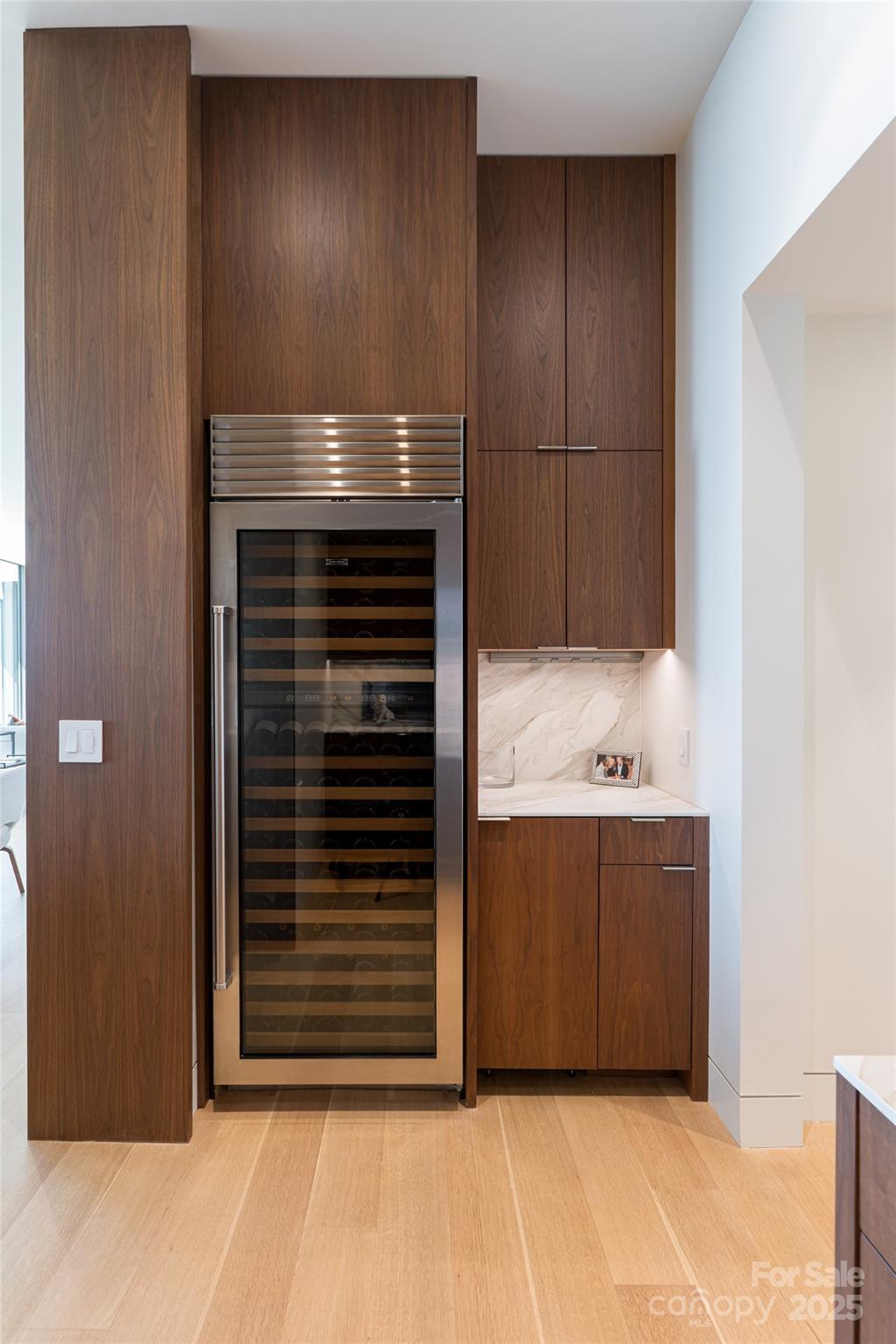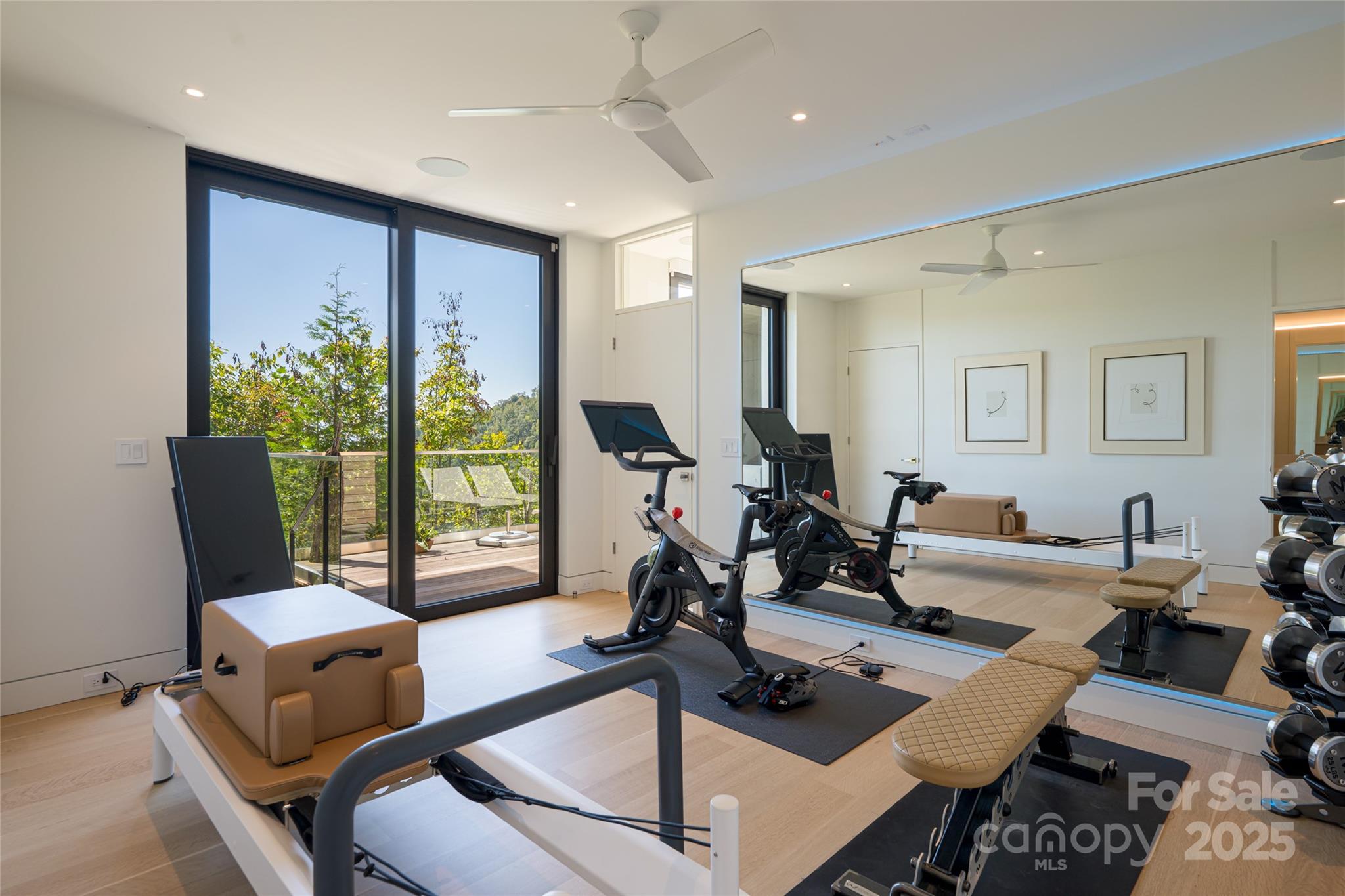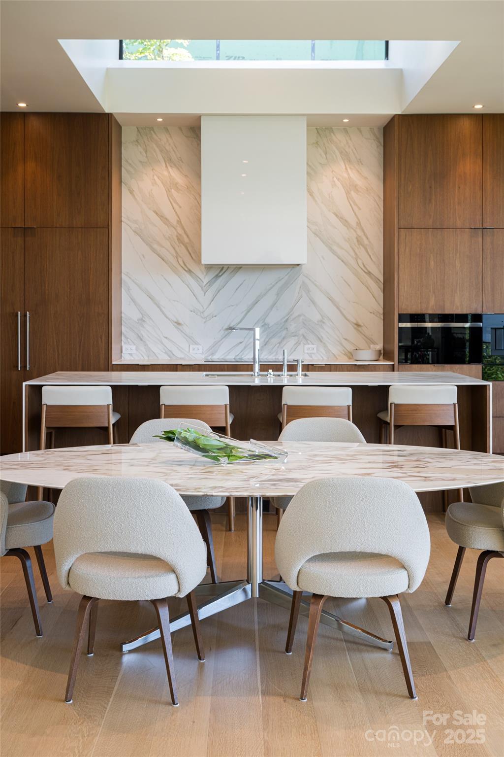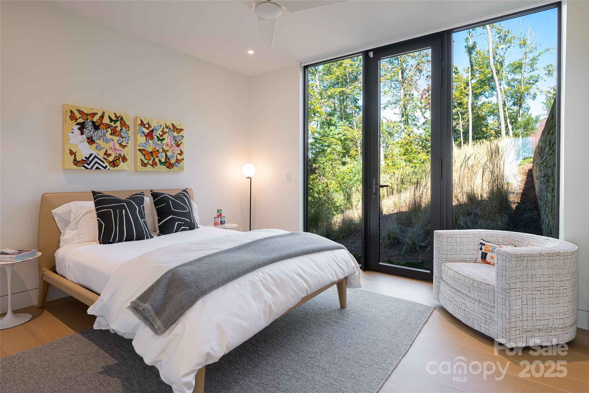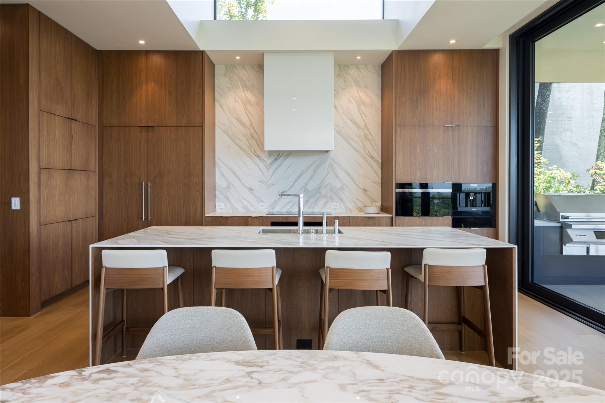 Perched along a dramatic ridge north of Asheville, this breathtaking modern residence captures the essence of mountain serenity and architectural brilliance. As clouds drift past and the sun sets behind the Blue Ridge Mountains, floor-to-ceiling glass reveals an ever-changing panorama of sky, weather, and the twinkling lights of downtown Asheville. Designed by Scott Huebner of Harding Huebner Architects, the home stands as a refined union of strength, transparency, and timeless design. Conceived around the architectural principle of a single sweeping roof and floor plane suspending an all-glass core, the residence appears to hover effortlessly above its rugged terrain. Steel and concrete provide both structural integrity and visual balance, anchoring the home to the mountain while heightening the illusion of weightlessness. Set on a compact half-acre lot, the 3,330-square-foot design achieves a remarkable sense of openness through intelligent orientation and masterful engineering. A cantilevered terrace extends over the sloping landscape, offering panoramic views of layered mountain ridges and downtown Asheville. The exterior’s natural wood siding is left unstained to weather gracefully into a silvery gray, harmonizing with locally quarried stone and sand drawn from nearby waterways—materials chosen to create a seamless connection between architecture and landscape. Inside, the design continues its dialogue with nature. Expansive windows flood the interiors with light, while eleven-foot ceilings enhance the sense of volume and air. Custom walnut cabinetry, crafted from a single tree for visual continuity, showcases an artisan level of precision. Polished marble surfaces bring timeless elegance to the kitchen and baths, complemented by a fireplace surround of lime plaster and stone. Blonde oak floors and neutral-toned finishes infuse the home with understated sophistication, balancing warmth and modern minimalism. Recipient of multiple design honors—including the AIA Asheville Honor Award and national recognition from the Best in American Living Awards—this residence exemplifies architectural excellence and craftsmanship of the highest order. Every line, material, and proportion has been thoughtfully considered to harmonize modern design with the beauty of its natural surroundings. Evenings unfold on the expansive terrace, where the horizon glows and the lights of Asheville shimmer in the valley below. The residence represents an evolution of the mountain home—where contemporary architecture meets the elemental rhythms of sky, stone, and light.