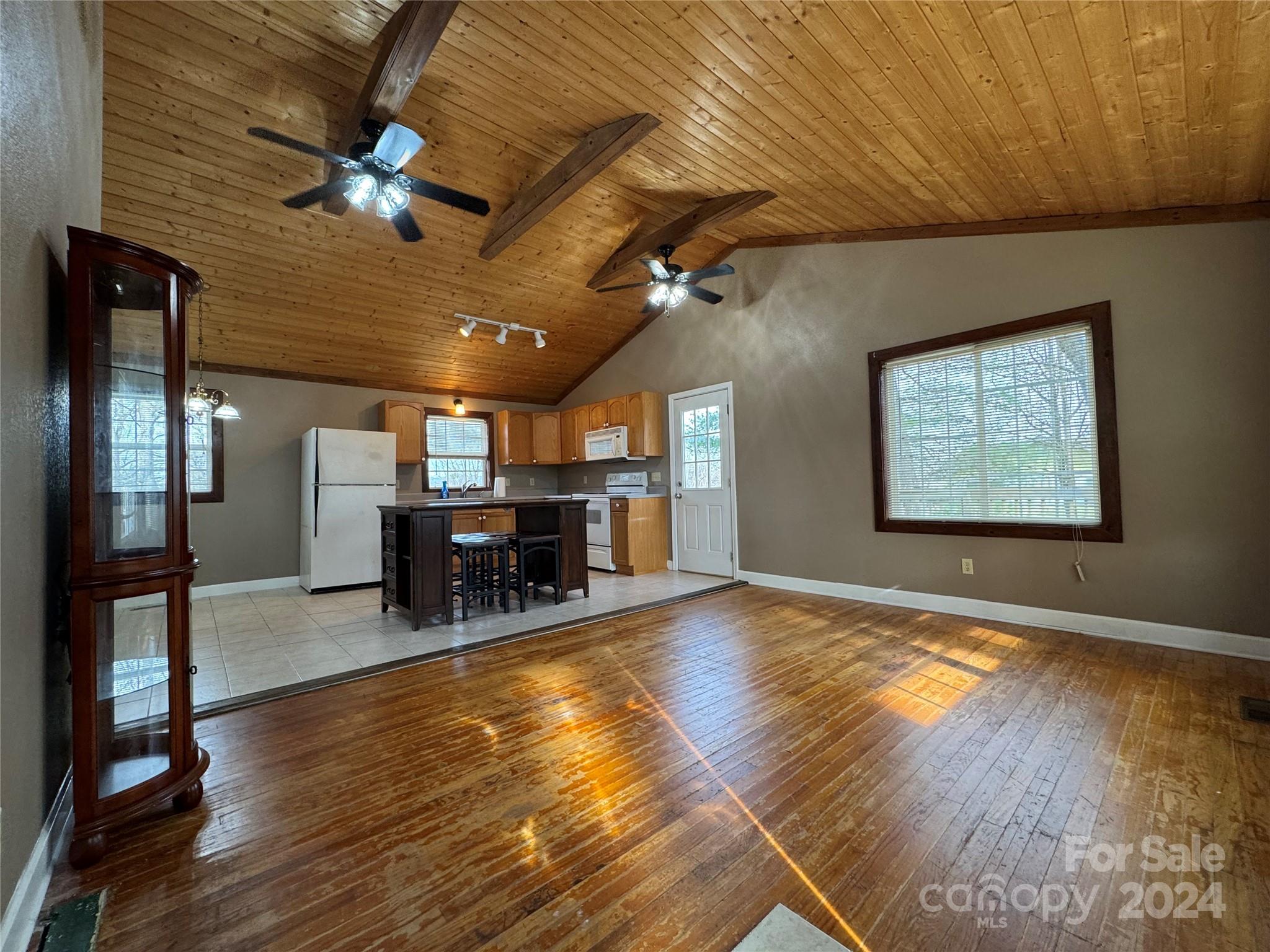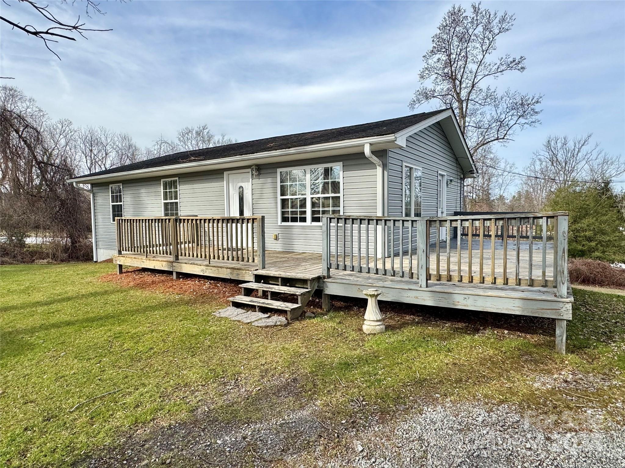 Conveniently located only one mile from downtown Hendersonville and at the end of a dead end street, this property is full of appeal. Upon arrival, step onto the wrap-around deck and enter into an open concept living area overlooking a quaint kitchen and dining space. With vaulted ceilings, beams, hardwood floors, tile, and fresh paint, this space is comfortable and full of natural light. With upgraded light fixtures, the home offers a move-in ready nature at a reasonable price point. On the main level, three bedrooms including one primary with en suite and an additional full guest bathroom provide convenience and functionality on the main level. Downstairs an unfinished basement and laundry area offer a number of possibilities, leaving you with a blank slate to expand, convert, and modify as you see fit. Enjoy the outdoor adventures and downtown conveniences of Hendersonville, NC at 1031 7th Avenue West--don't miss out on the opportunity to own a great piece of real estate.