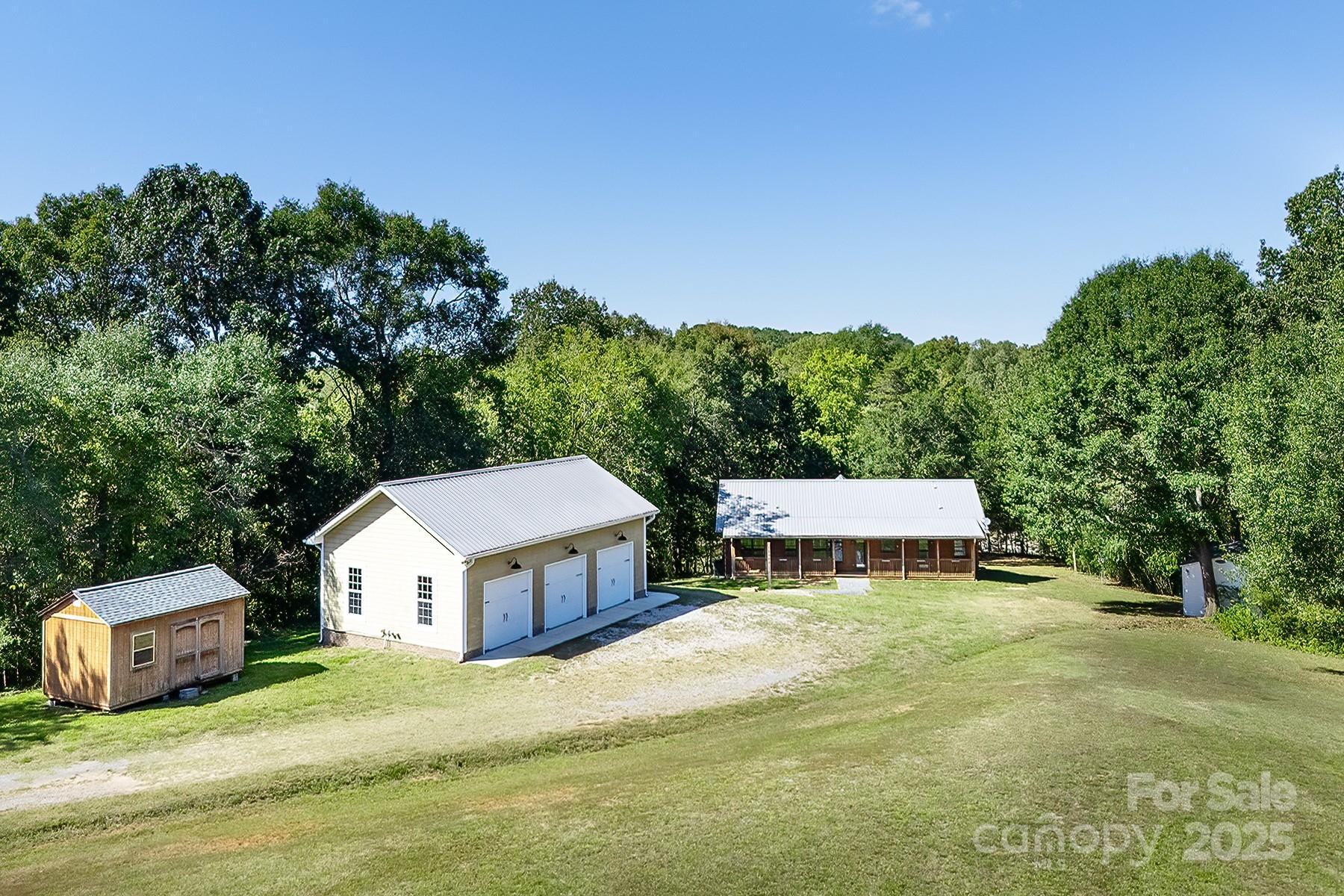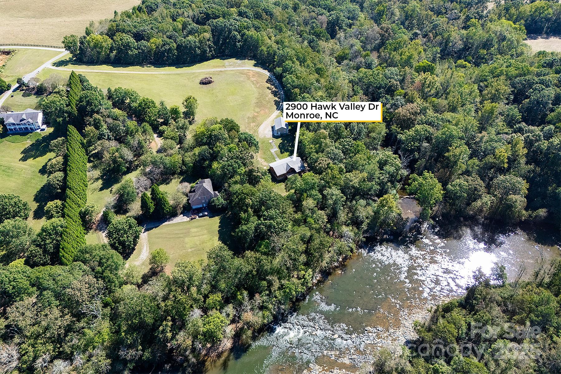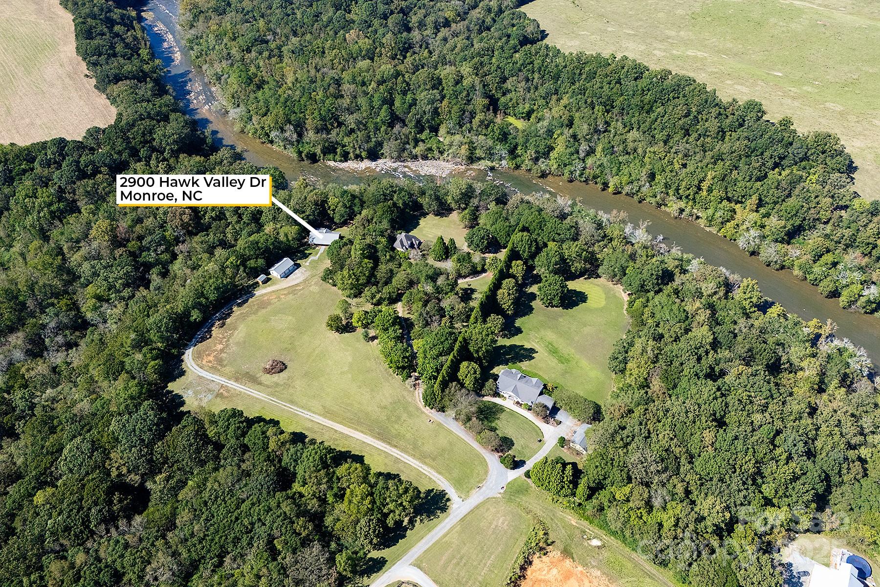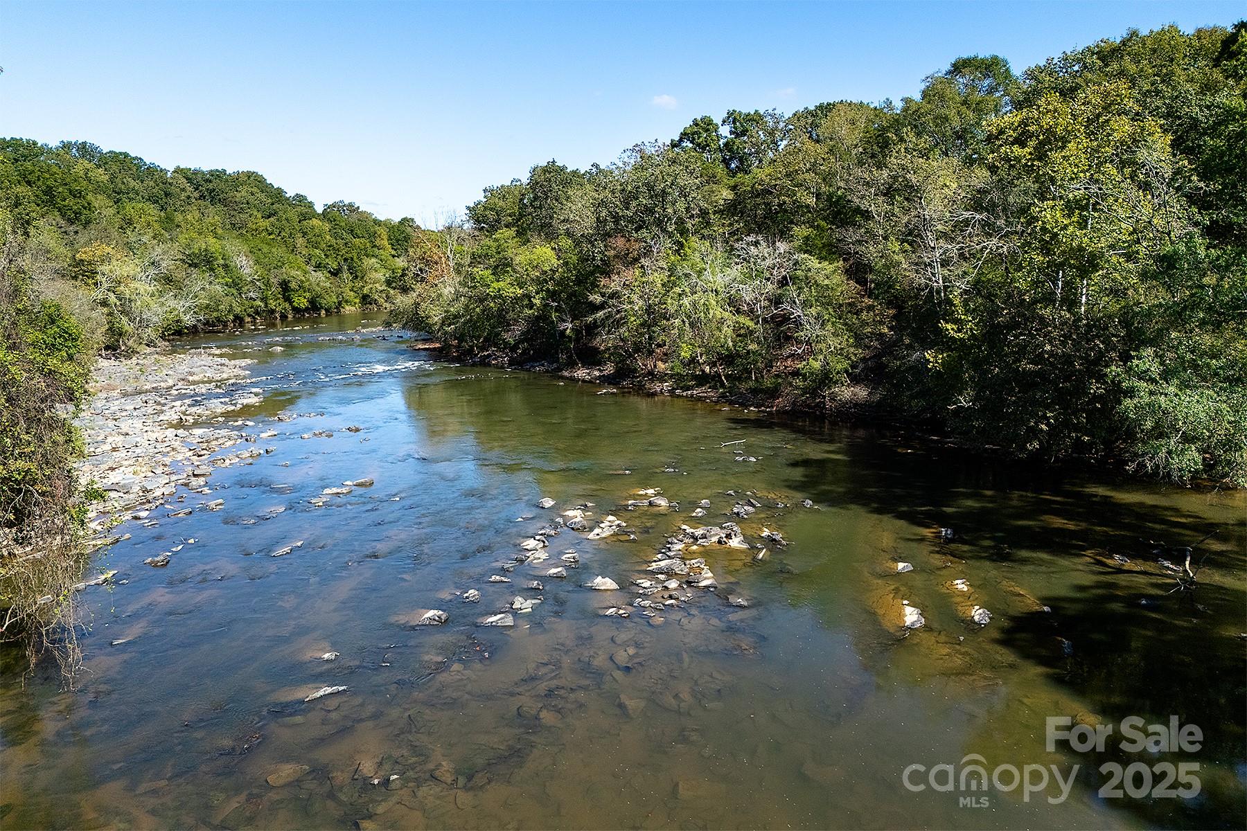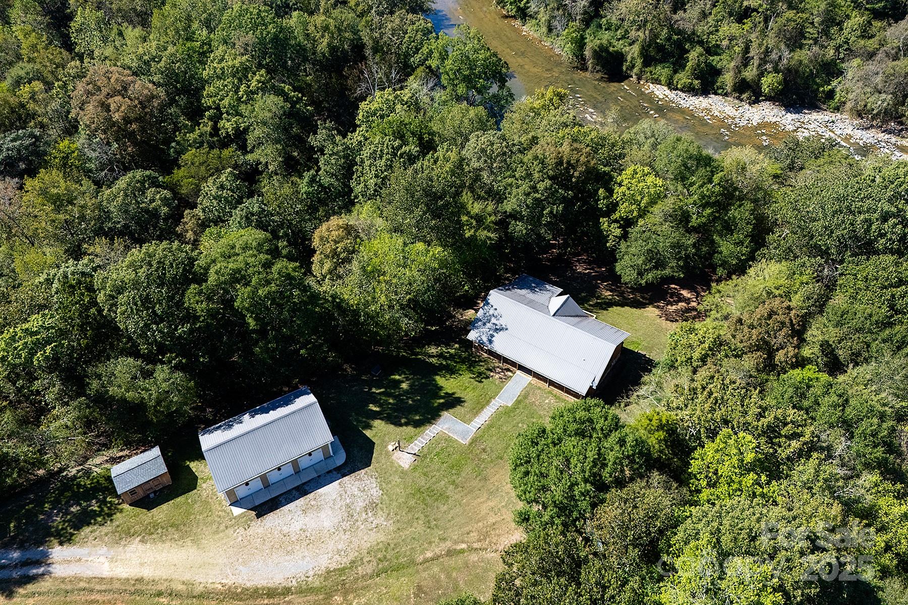 A truly unique property on the Rocky River that must be seen in person to appreciate! This extraordinary 10-acre property is nestled along a wide portion of the scenic Rocky River and is a haven for any outdoor enthusiast. With the sound of rapids and rushing water year-round, this property offers an opportunity to live surrounded by nature just outside Charlotte. This peaceful waterfront property has direct access to both Crooked Creek and Rocky River for bass fishing, kayaking and more, and the property’s wooded landscape also provides excellent hunting opportunities. The three-bedroom custom split-bedroom home has been lovingly cared for and was fully sandblasted and refinished - a $34k, five-coat process - in late 2024, and features a lifetime metal roof (2012). Enjoy soaring ceilings in the great room/dining room and abundant natural light throughout, along with river views from several rooms and the large back deck. Trane HVAC system installed in 2021, oversized septic tank with permit for a garbage disposal, and a whole-house water softener, PH balancer and R/O in the kitchen. Thoughtful convenience features include a whole-house vacuum and kick vacuums in the baseboard of the kitchen and bathrooms. With just a few cosmetic upgrades, it's ready to be a showstopper! Heated & cooled shop/garage: A large, fully equipped shop built in 2012 features heat/AC, three bays, a vehicle lift, power, and water. The garage has attic storage above two of the bays, and an extended-height third bay for car enthusiasts to fully utilize the lift. The exterior of the garage has dedicated 30/50 amp service, plus there is a separate RV pad just up the driveway already equipped with water and 30-amp service. There are two other outbuildings - one for additional storage with power, and a white hobby shed that is heated/cooled and with power and water. Too many features and upgrades on the property to list. The other side of Rocky River is conservancy land and will not be built on, preserving the gorgeous view. When/if the river swells, the water goes to that low-lying side as this property sits up much higher. This is a rare property to come on the market!