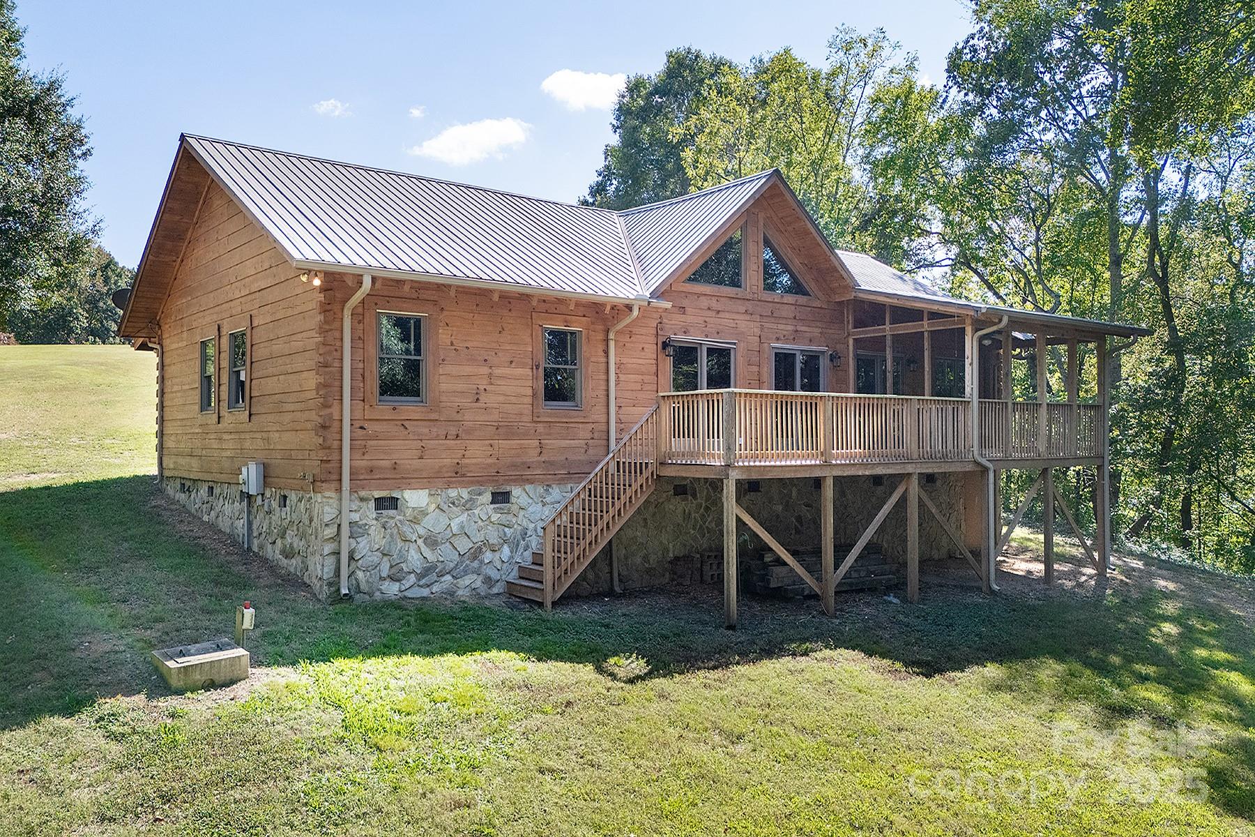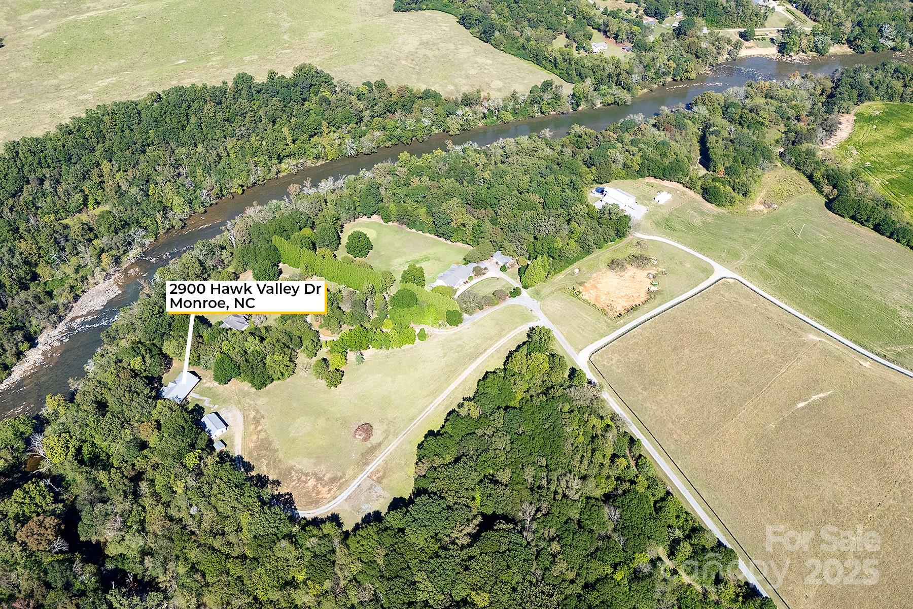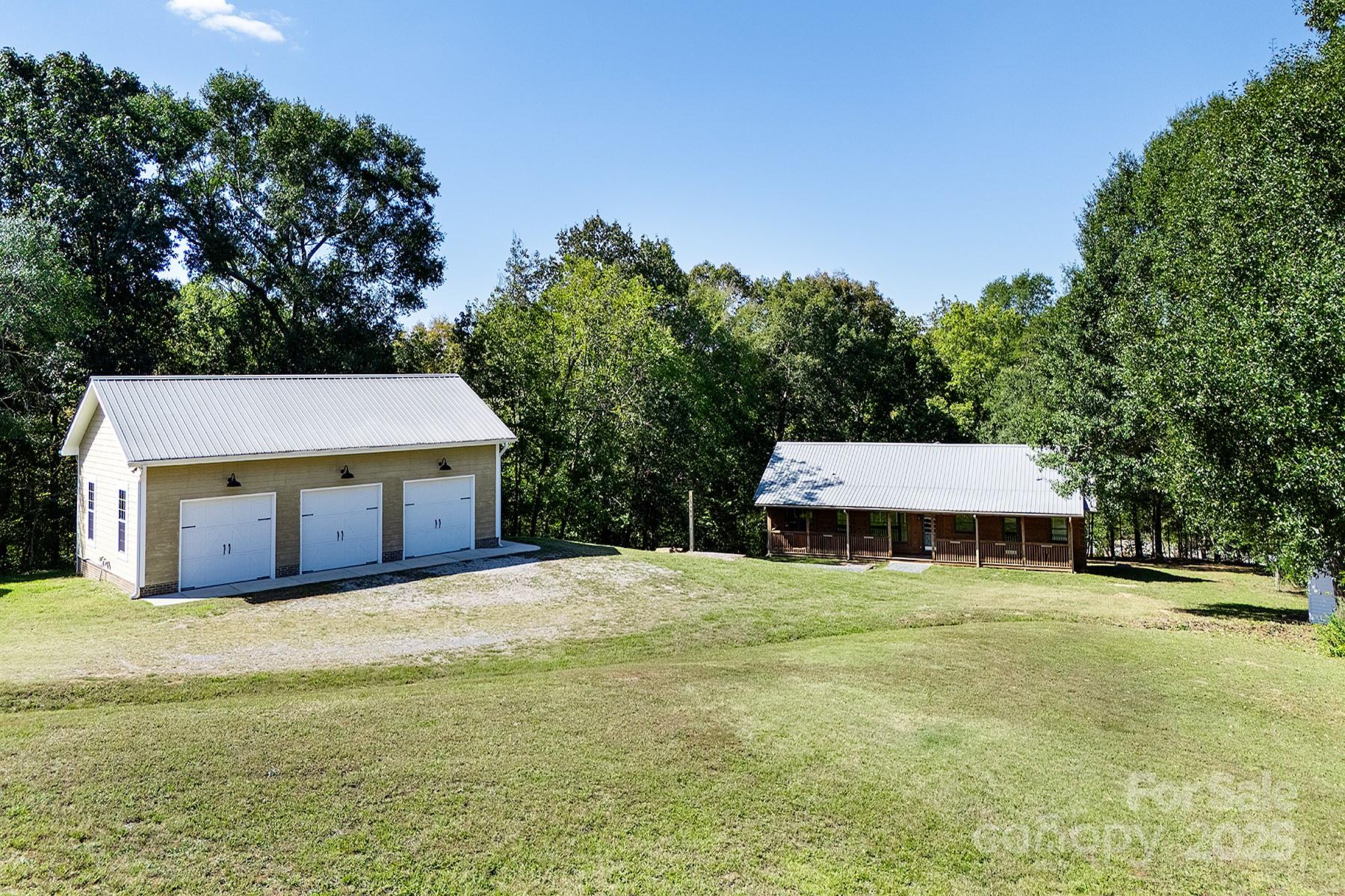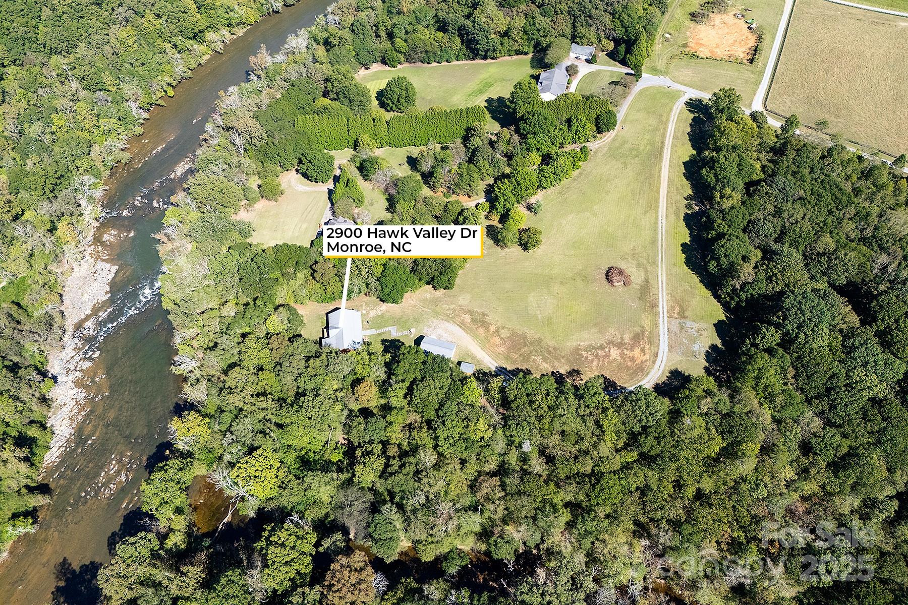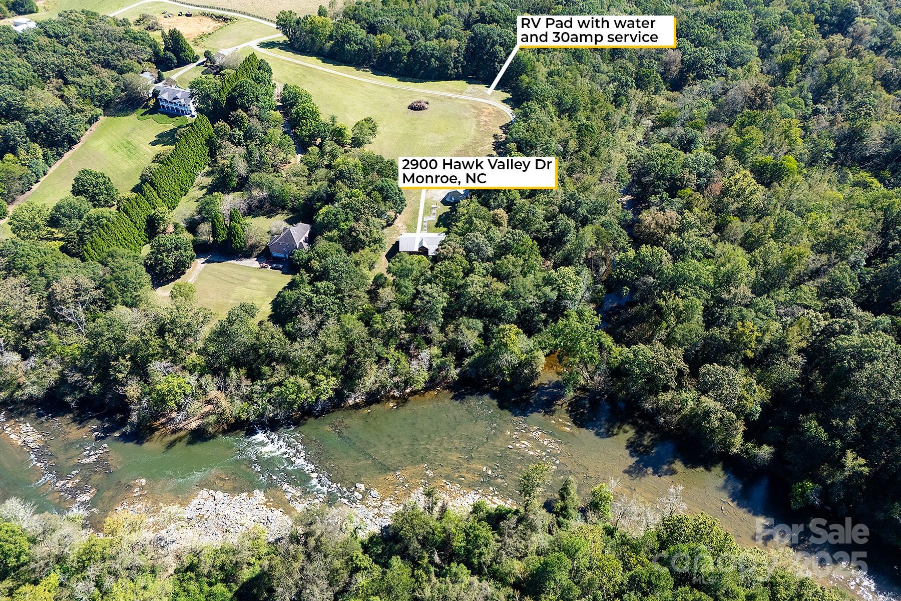 A truly unique property on the Rocky River that must be seen in person to appreciate! This extraordinary 10-acre property is nestled along a wide portion of the scenic Rocky River and is a haven for any outdoor enthusiast. With the sound of rapids and rushing water year-round, this property offers an opportunity to live surrounded by nature just outside Charlotte. This peaceful waterfront property has direct access to both Crooked Creek and Rocky River for bass fishing, kayaking and more, and the property’s wooded landscape also provides excellent hunting opportunities. The three-bedroom custom split-bedroom home has been lovingly cared for and was fully sandblasted and refinished - a $34k, five-coat process - in late 2024, and features a lifetime metal roof (2012). Enjoy soaring ceilings in the great room/dining room and abundant natural light throughout, along with river views from several rooms and the large back deck. Trane HVAC system installed in 2021, oversized septic tank with permit for a garbage disposal, and a whole-house water softener, PH balancer and R/O in the kitchen. Thoughtful convenience features include a whole-house vacuum and kick vacuums in the baseboard of the kitchen and bathrooms. With just a few cosmetic upgrades, it's ready to be a showstopper! Heated & cooled shop/garage: A large, fully equipped shop built in 2012 features heat/AC, three bays, a vehicle lift, power, and water. The garage has attic storage above two of the bays, and an extended-height third bay for car enthusiasts to fully utilize the lift. The exterior of the garage has dedicated 30/50 amp service, plus there is a separate RV pad just up the driveway already equipped with water and 30-amp service. There are two other outbuildings - one for additional storage with power, and a white hobby shed that is heated/cooled and with power and water. Too many features and upgrades on the property to list. The other side of Rocky River is conservancy land and will not be built on, preserving the gorgeous view. When/if the river swells, the water goes to that low-lying side as this property sits up much higher. This is a rare property to come on the market!