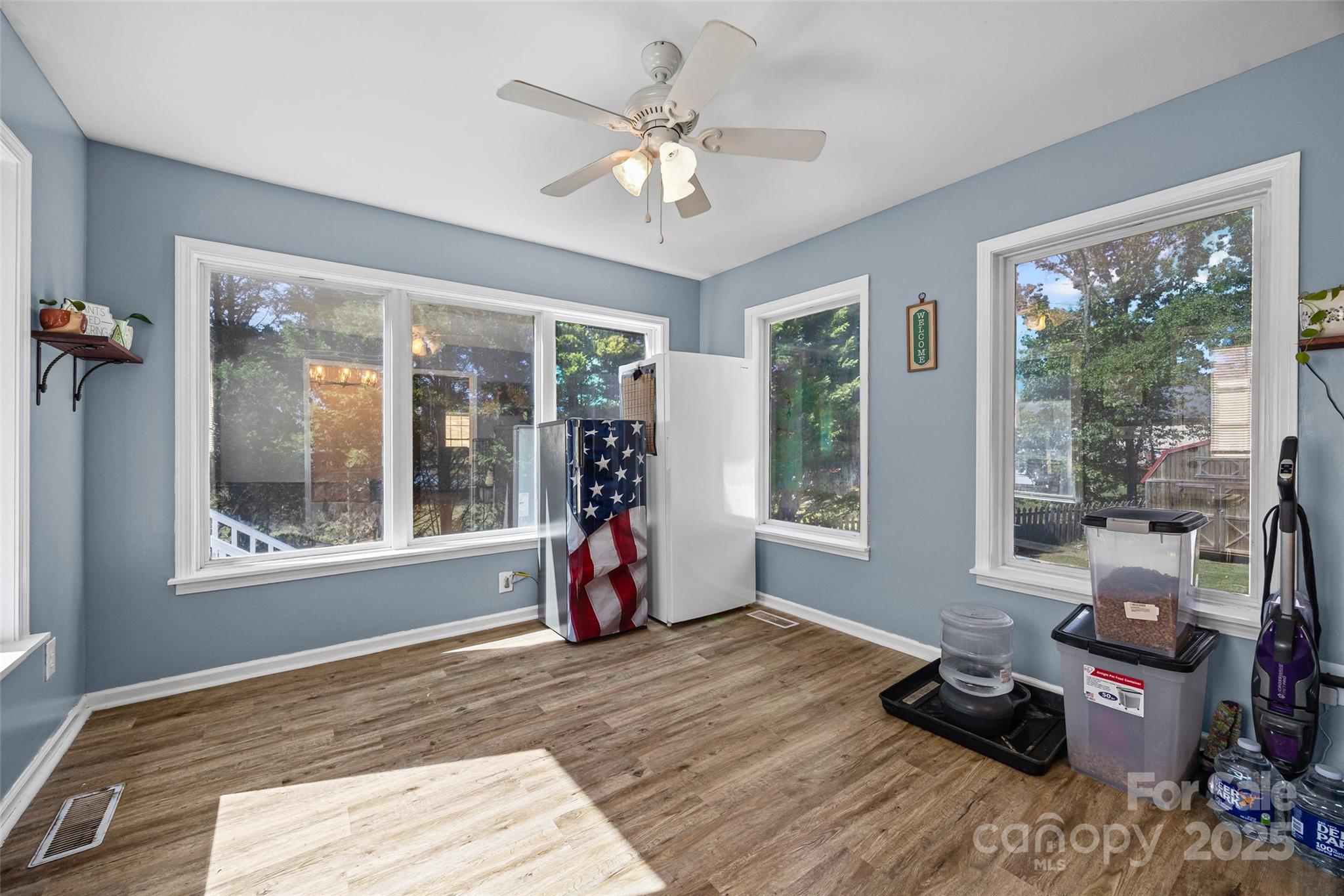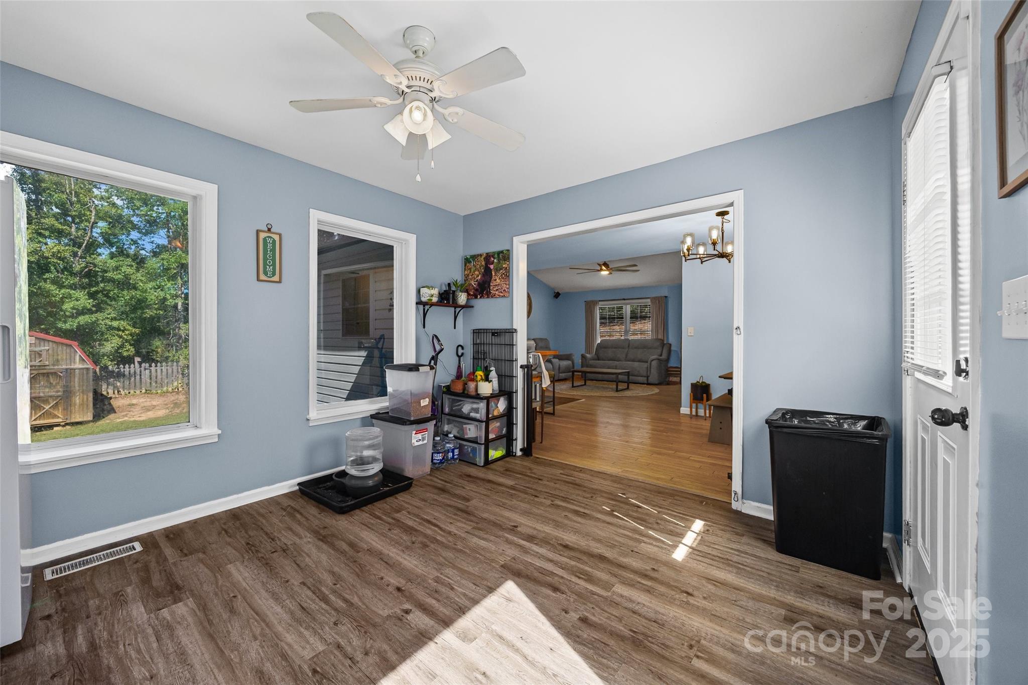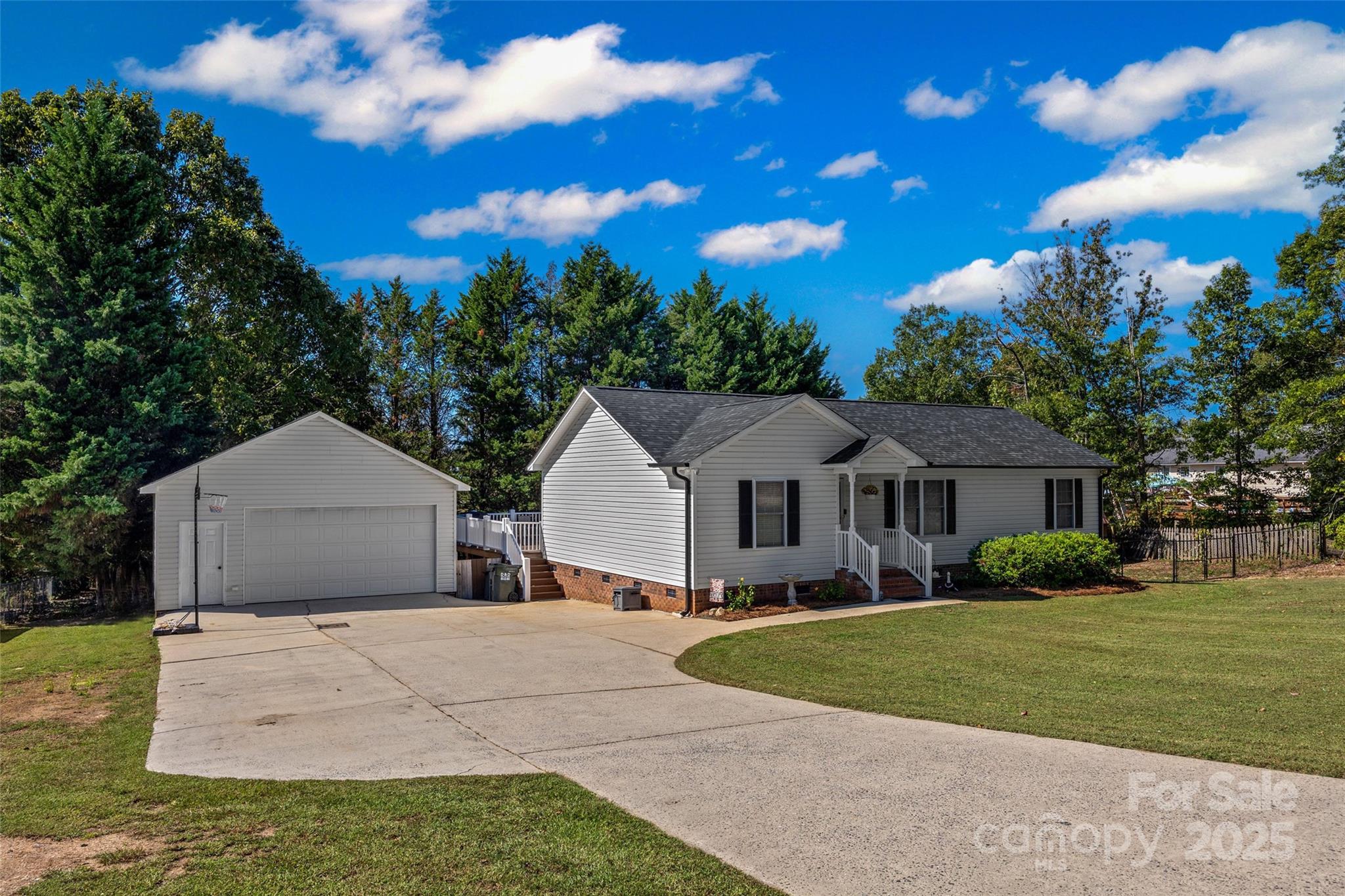 Charming 3 bed, 2 bath ranch on 1.2 Acres in Quail Lakes – No City Taxes, No HOA! Welcome home to this beautifully cared-for 3-bedroom, 2-bath ranch nestled on a spacious 1.2-acre corner lot in the quiet Quail Lakes subdivision. Enjoy the peace and privacy of country living with the convenience of nearby amenities. The split-bedroom layout offers a comfortable flow. The kitchen features beautiful butcher block counters, giving it a fresh, modern feel. A large sunroom across the back of the home is perfect for relaxing with a cup of coffee or gathering with friends. Step outside to the expansive Trex deck, great for grilling or just enjoying the view of your fenced backyard. The home sits well back from the road for added privacy and includes a detached 2-car garage plus a 12x10' storage building for tools, hobbies, or extra space. Recent updates include a new roof (2024), new gutters (2025), HVAC replacement within the last 5 years, and a new water heater, so you can move right in and start enjoying your new home. You’ll love the quiet neighborhood, spacious yard, and easy one-level living this home offers.