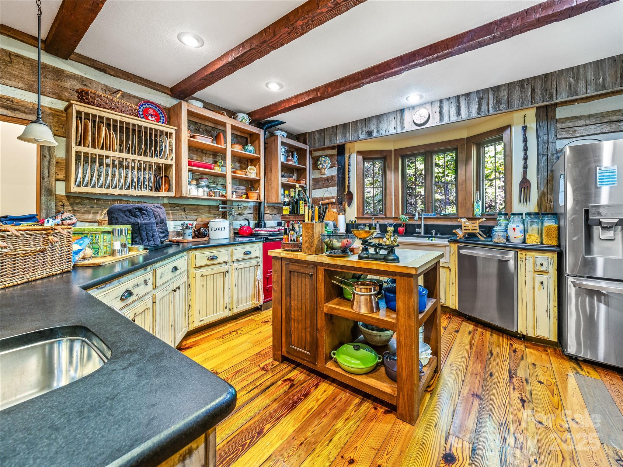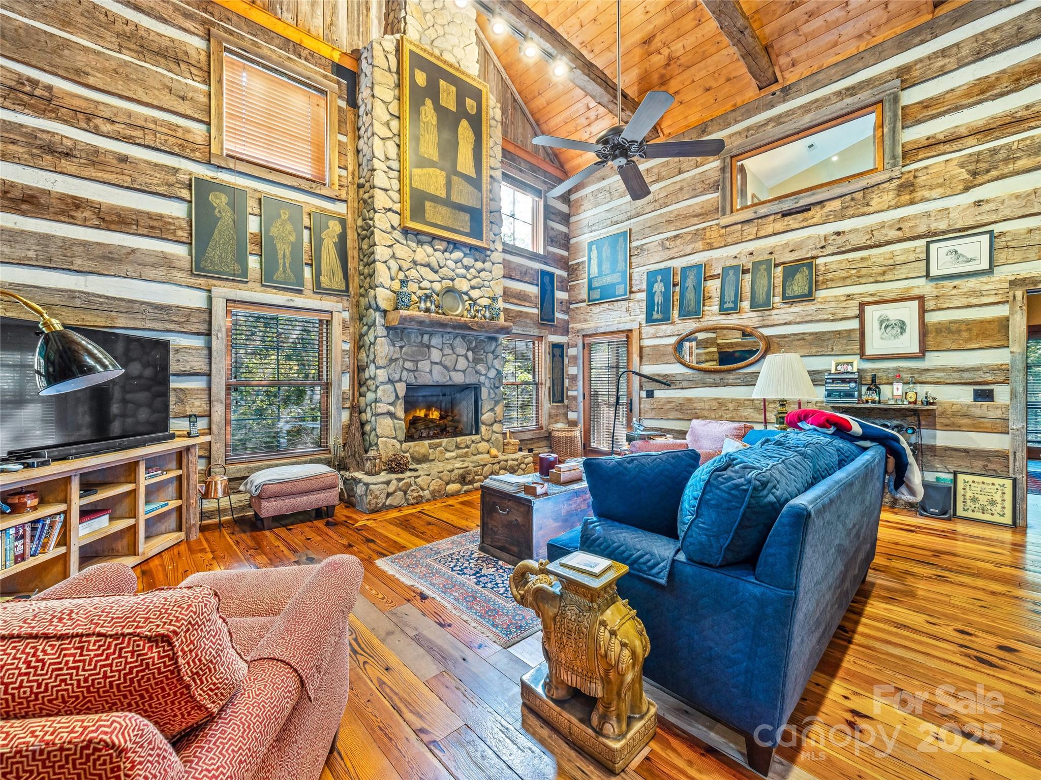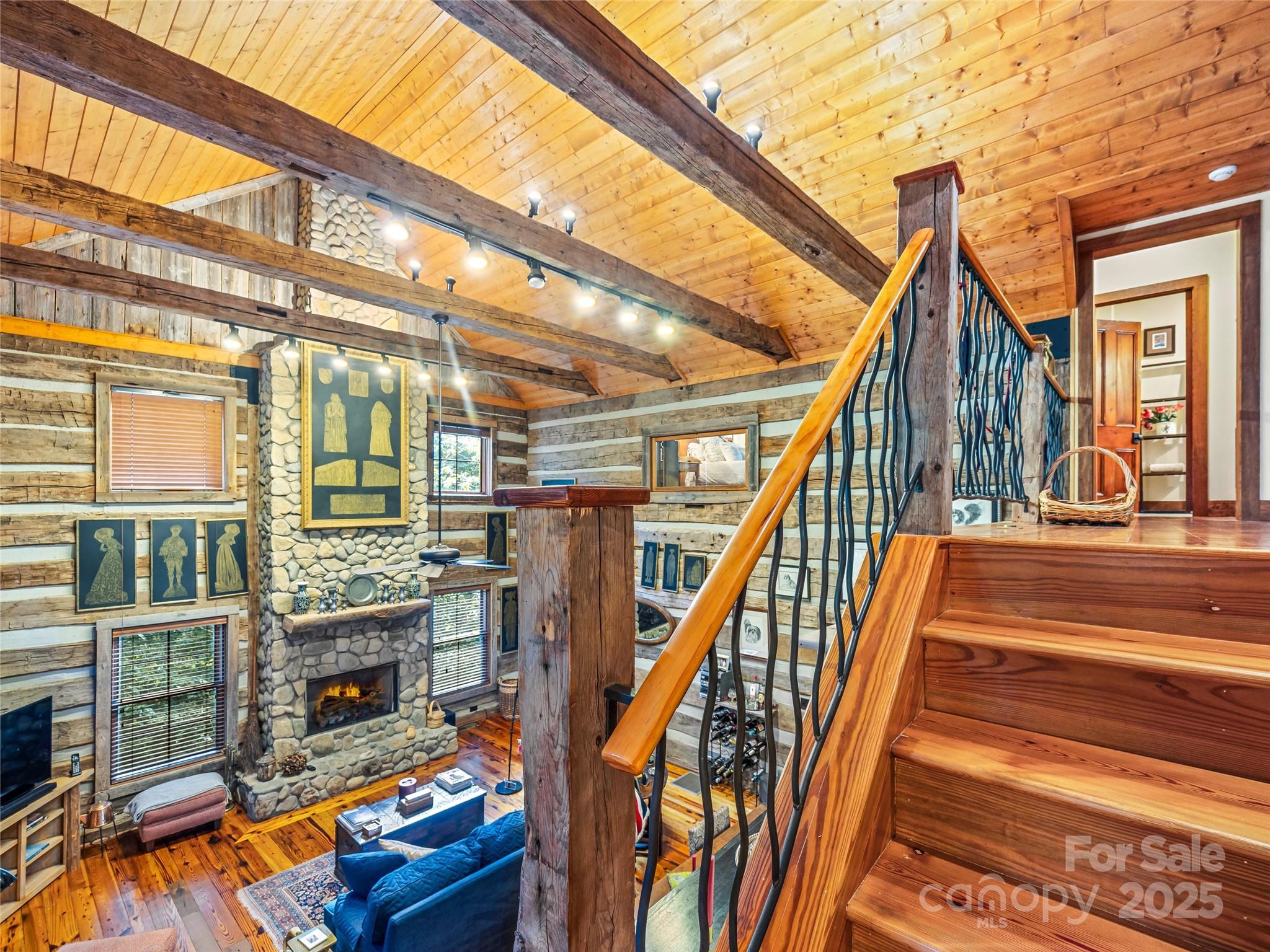 Tucked away at 69 Dogwood Branch in the exclusive gated enclave of Pinnacle Falls, this custom-crafted reclaimed log home is a masterpiece of rustic elegance. Step into the awe-inspiring great room, where a towering vaulted ceiling soars above a majestic floor-to-ceiling river rock stone fireplace, its warm glow dancing across rich wooden beams, inviting cozy gatherings. This 3-bedroom, 3.5-bath sanctuary boasts a loft perch that gazes down on the vibrant heart of the home, blending airy openness with intimate charm. Outside, multiple sprawling porches and decks beckon, including a serene back porch where the melodic rush of a crystalline stream serenades your senses. Savor crisp mountain evenings by the crackling outdoor fire pit, or retreat to the separate two-car garage, complete with fully appointed living quarters—a perfect haven for guests or quiet escapes. Nestled in Pinnacle Falls, this retreat is enriched by a vibrant community clubhouse, a sparkling inground pool, and winding walking trails that weave through nature’s splendor, offering an unparalleled blend of private tranquility and lively amenities in this breathtaking mountain oasis. Its Like living in a National Park without the traffic!