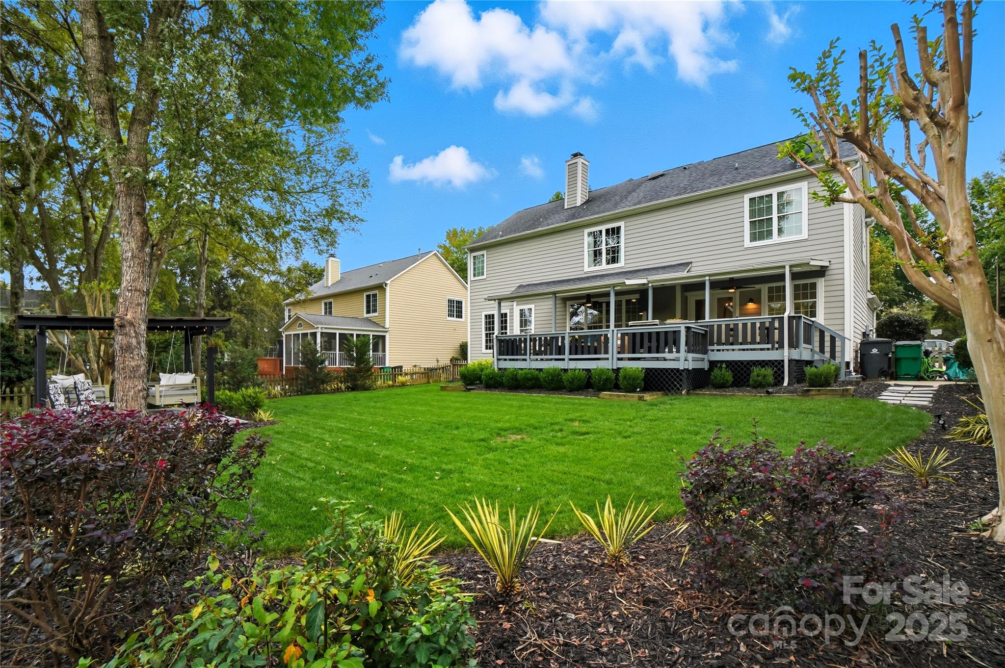 Welcome Home! Perfectly positioned directly across from Highland Creek’s main recreation complex—featuring pools, tennis and basketball courts, and scenic walking trails—this refined residence offers the rare balance of community vibrance and private tranquility. Set along Fairvista Drive’s wooded curve, the home overlooks a protected preserve, merging architecture and nature in timeless harmony. Inside, warm oak floors flow through an open-concept design uniting the family room, breakfast area, and dining gallery. Tall windows fill the home with natural light, while soft neutral tones create calm and cohesion. The chef’s kitchen is the centerpiece, showcasing quartz countertops, stainless steel appliances, marble backsplash, and a central island framed by pendant lighting. Across the foyer, French doors open to a private office or study, ideal for remote work or reading. Every space is intentionally designed—beautiful, functional, and full of light. Upstairs, the primary suite offers a peaceful retreat with a tray ceiling, preserve-view windows, and a spa-inspired bath featuring a glass shower, soaking tub, and dual vanities. 4 additional bedrooms provide flexibility for guests, media, or creative use. Altogether, the second floor spans 1,439 sq. ft., balancing openness with privacy. Beyond the rear French doors, the home’s living experience expands outdoors. A 1,000-square-foot covered terrace with a pergola, paneled ceiling, and dual ceiling fans creates a year-round sanctuary for dining, entertaining, or quiet reflection. The terrace overlooks a fenced backyard and wooded preserve, blending the comfort of home with the beauty of nature. Morning light filters through the trees; evenings glow under string lights and Carolina skies. The climate-controlled garage redefines flexibility—finished, insulated, and ready to serve as a gym, studio, or workshop while maintaining comfort in every season. Highland Creek remains Charlotte’s premier golf and nature community, known for its master-planned design and resort-level amenities. Residents enjoy an 18-hole championship golf course, five pools, tennis and basketball courts, playgrounds, and miles of interconnected greenways. A MUST SEE!