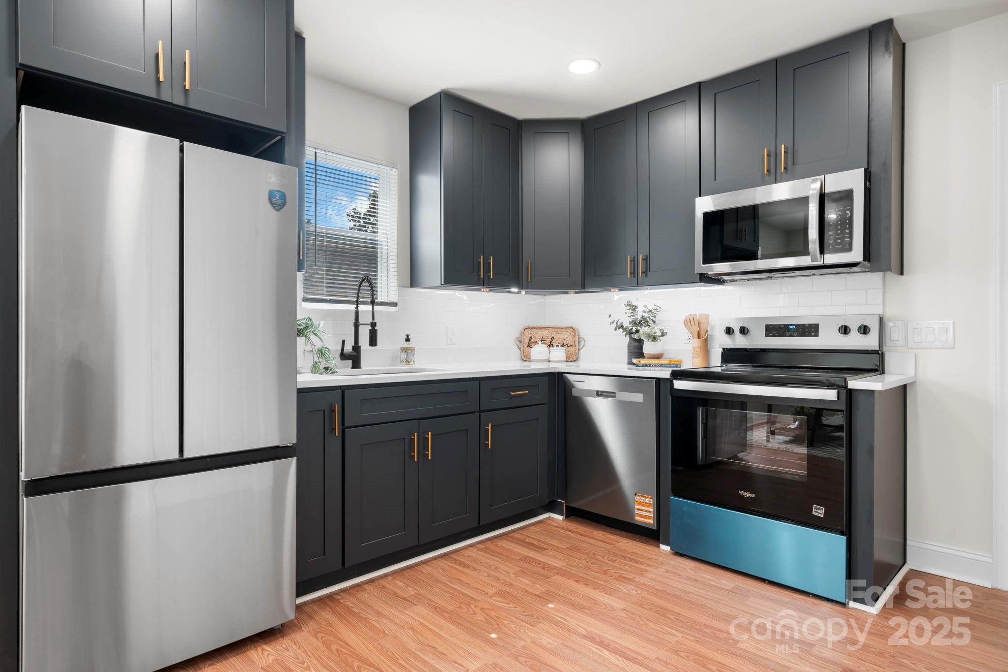 Located just minutes from Lenoir-Rhyne University, Hwy 127, and downtown Hickory—you truly cannot beat this location. Everything you see stays—this home comes fully furnished! One year home warranty included. Modern charm meets classic comfort in this beautifully 2-bedroom, 1-bath home featuring a full basement for storage and a spacious backyard perfect for pets and play. The heart of the home is the stunning kitchen, where sleek cabinets with gold hardware pair beautifully with warm wood accents—all drenched in natural light from oversized windows. Step outside to enjoy the large back deck, ideal for entertaining or simply relaxing with views of your private yard. Fresh finishes throughout, including updated light fixtures and neutral tones, make this home truly move-in ready.