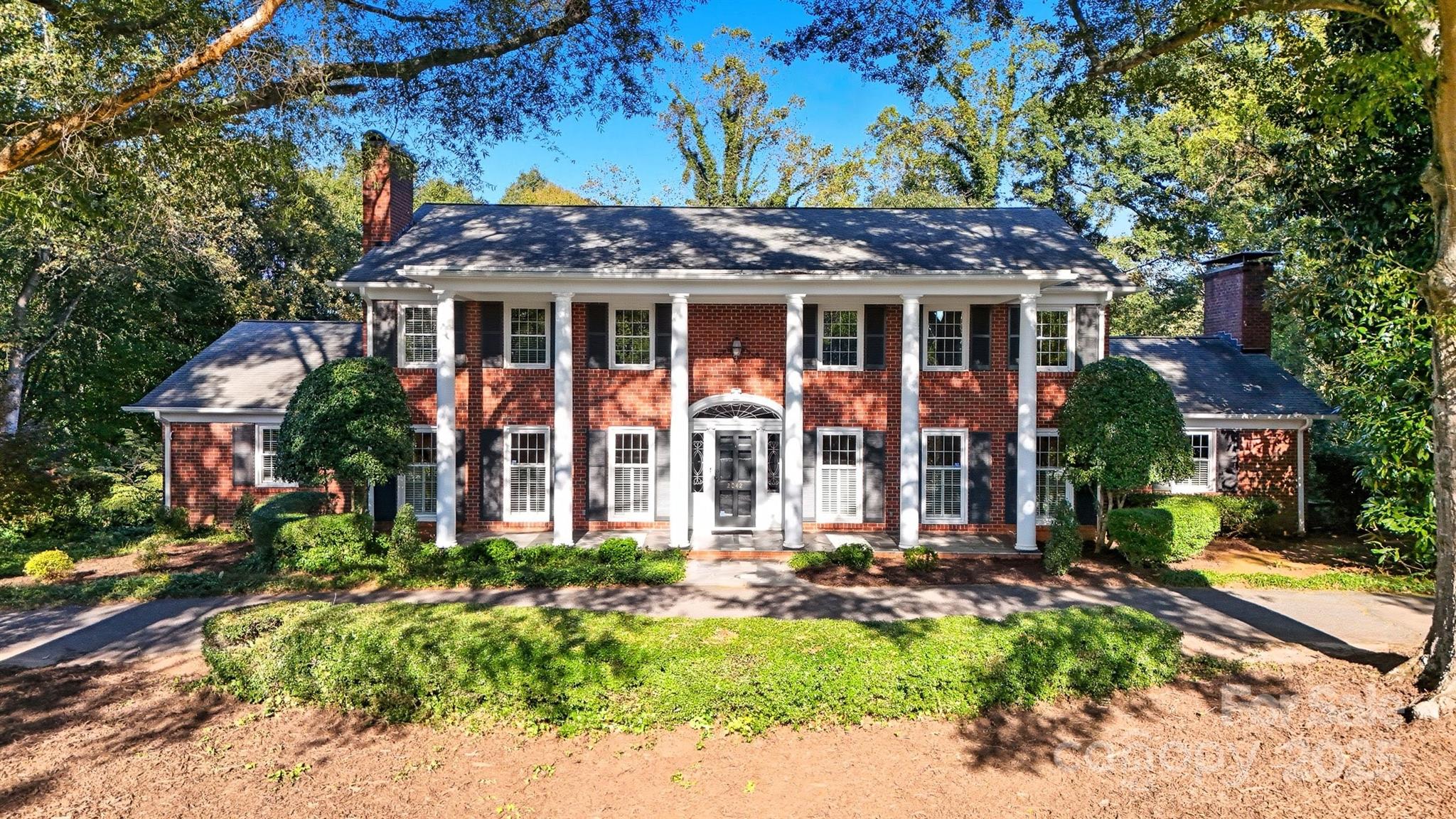 New Listing! Classic Colonial Style, 2 story brick home with basement located across the street from Lake Hickory Country Club tennis courts & golf course. Take it all in at the grand entryway presenting a circle driveway, tall established trees, 2 story white columns, arched molding front door, slate walkway & porch which welcome you into the luxurious foyer area featuring banister stairway, wainscoting, moldings, & wood flooring throughout. With plantation style shutters, the formal living room is located to the left with gas logs fireplace and formal dining room located off to the right. The master bedroom is located on the main level and has a gas logs fireplace & master bathroom with a large glass/tile shower, separate jetted tub, double vanity sinks, private toilet, & oversized walk-in closet with custom built ins. The kitchen features a kitchen island with granite countertop, eat-at bar, updated SS appliances, pantry, & an abundance of cabinetry with a breakfast eat-in area which accesses the 2nd story covered back patio. The den is located just beside the kitchen and features wooden ceiling beams; a 3rd gas logs fireplace with a stacked stone hearth. The upper-level houses 2 bedrooms which use a "Jack & Jill" style bathroom and opposite to that are 2 additional bedrooms that share a 2nd "Jack & Jill" style bath. An upper landing area offers more additional space & overlooks the foyer. The basement features a custom-built, wrap around bar with sink and a billiards room displaying wooden wainscoting just around the corner. A large laundry room is located on the lower level, in addition to an extra room that could be used as an office or crafts room. A half bath is located in the basement as well with abundance of storage and closet space throughout. There are several accesses to the back patio & side driveway from the basement. A custom brick terrace is shown off in the back yard as well as an upper and lower covered back patio. No HOA's. Call us to see this beautiful home today!