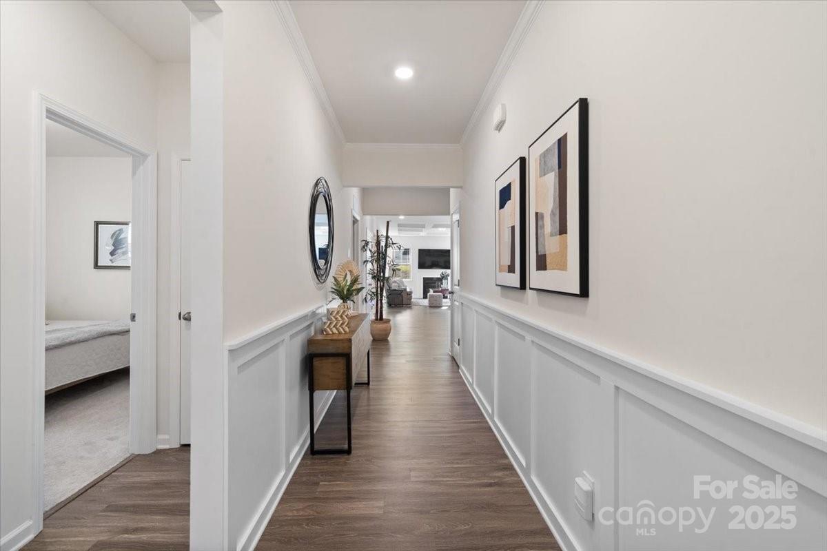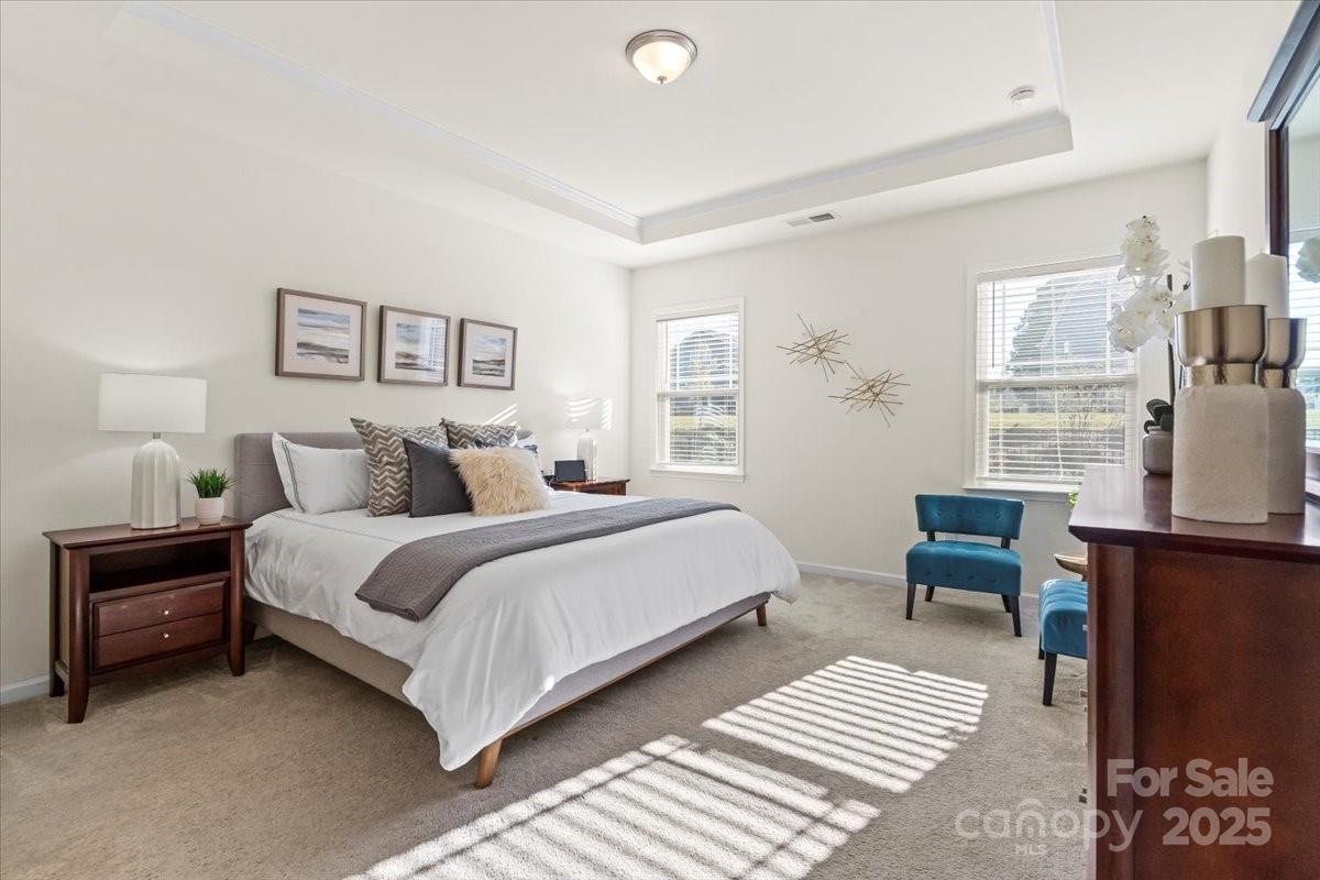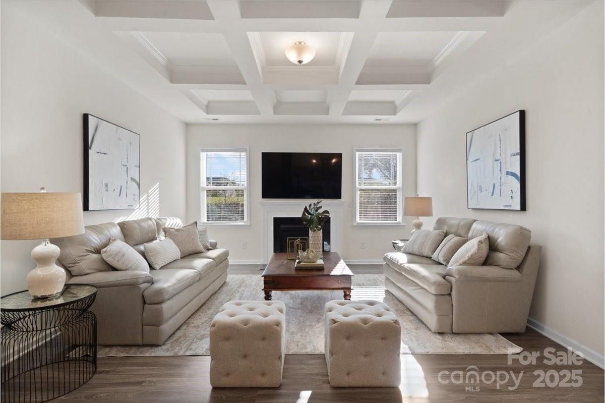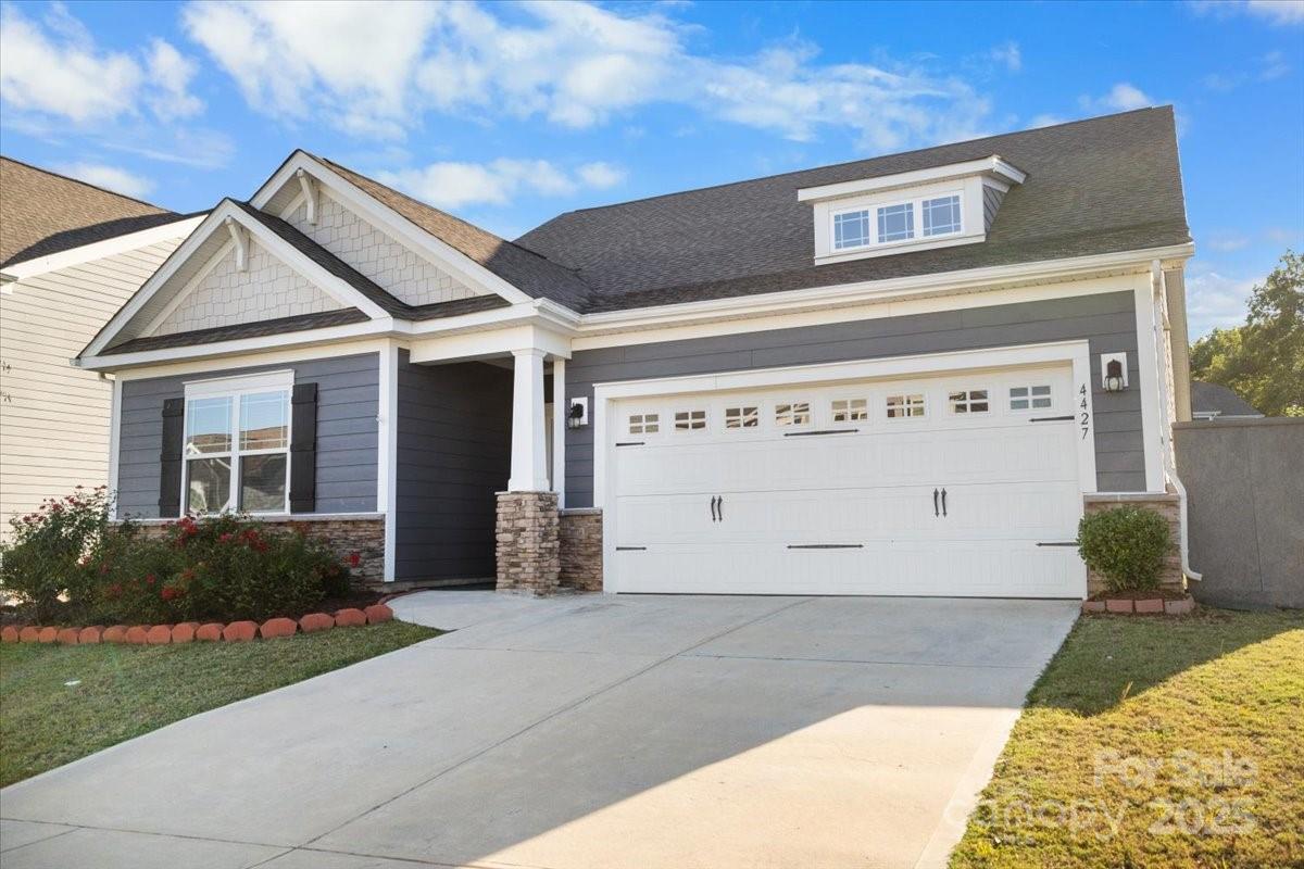 Welcome to 4427 Poplin Grove Drive in Indian Trail, NC—a beautifully designed 1.5-story home offering over 2,700 square feet of luxury living space. This thoughtfully crafted residence seamlessly blends modern comfort with timeless detail, featuring four spacious bedrooms, four walk-in closets, six additional storage closets, and a walk-out attic storage area—perfect for those who crave organization and space. The gourmet chef’s kitchen is the heart of the home, boasting an oversized island, a gas cooktop, custom cabinetry, and premium finishes, making it ideal for entertaining or everyday living. The open-concept floor plan flows seamlessly into the living room with 10-foot coffered ceilings, abundant natural light, and LED lighting throughout. Upstairs, you’ll find an oversized bonus room/loft/game area, offering endless possibilities for a media room, gym, or guest retreat. The primary suite is a true sanctuary, highlighted by one of the largest dual showers you’ve ever seen—a luxurious spa-inspired experience every day. Step outside to your covered rear porch, overlooking a beautifully landscaped yard with fruit trees and manicured greenery, creating the perfect setting for morning coffee or evening relaxation. Additional features include a wide staircase, an energy-efficient design, and an exceptionally livable floor plan that strikes a balance between elegance and practicality. Located in the desirable Poplin Grove community, you’re minutes from top-rated Union County schools, shopping, dining, and major commuter routes—making this the perfect place to call home.