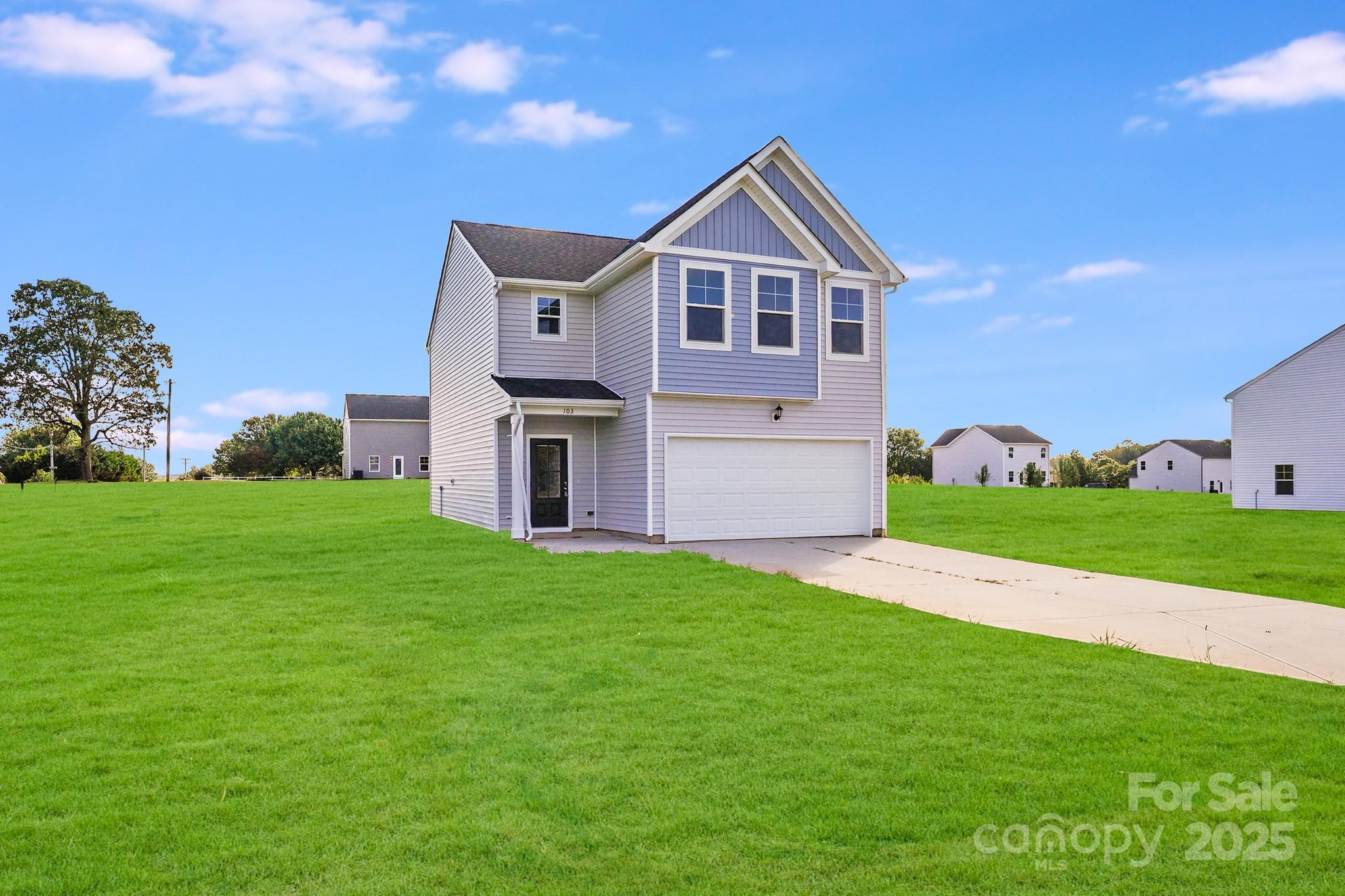 Welcome to this inviting 3-bedroom, 2.5-bath home offering the best of modern living—perfect for first-time buyers or those looking to upgrade to more space. Situated on a generous 0.54-acre lot, this property combines privacy with the convenience of quick access to I-40. The main level is designed for comfort and flexibility, featuring a spacious great room with large windows overlooking the backyard and filling the space with natural light. The kitchen is a chef’s delight, showcasing white cabinetry, granite countertops, a large island with a breakfast bar, a pantry, stainless steel appliances, and a dedicated dining area ideal for casual meals or entertaining guests. Upstairs, the primary suite offers a roomy walk-in closet and a private bathroom with dual sinks and granite countertops. Two additional bedrooms share a full bath with matching finishes, providing comfort and style for everyone. Additional highlights include a 2-car garage with an opener, a covered front porch perfect for relaxing outdoors, and a move-in-ready home with a versatile layout and ample space to grow—a perfect place to start your next chapter.