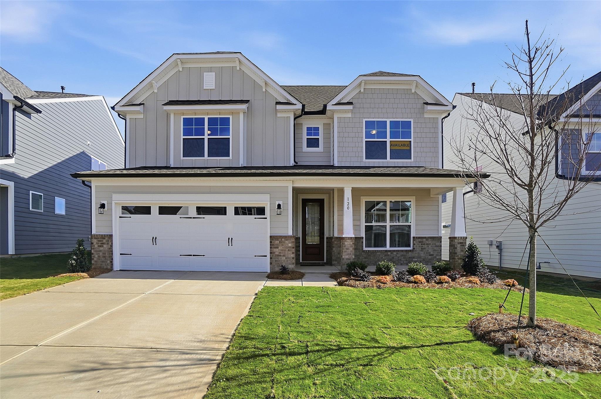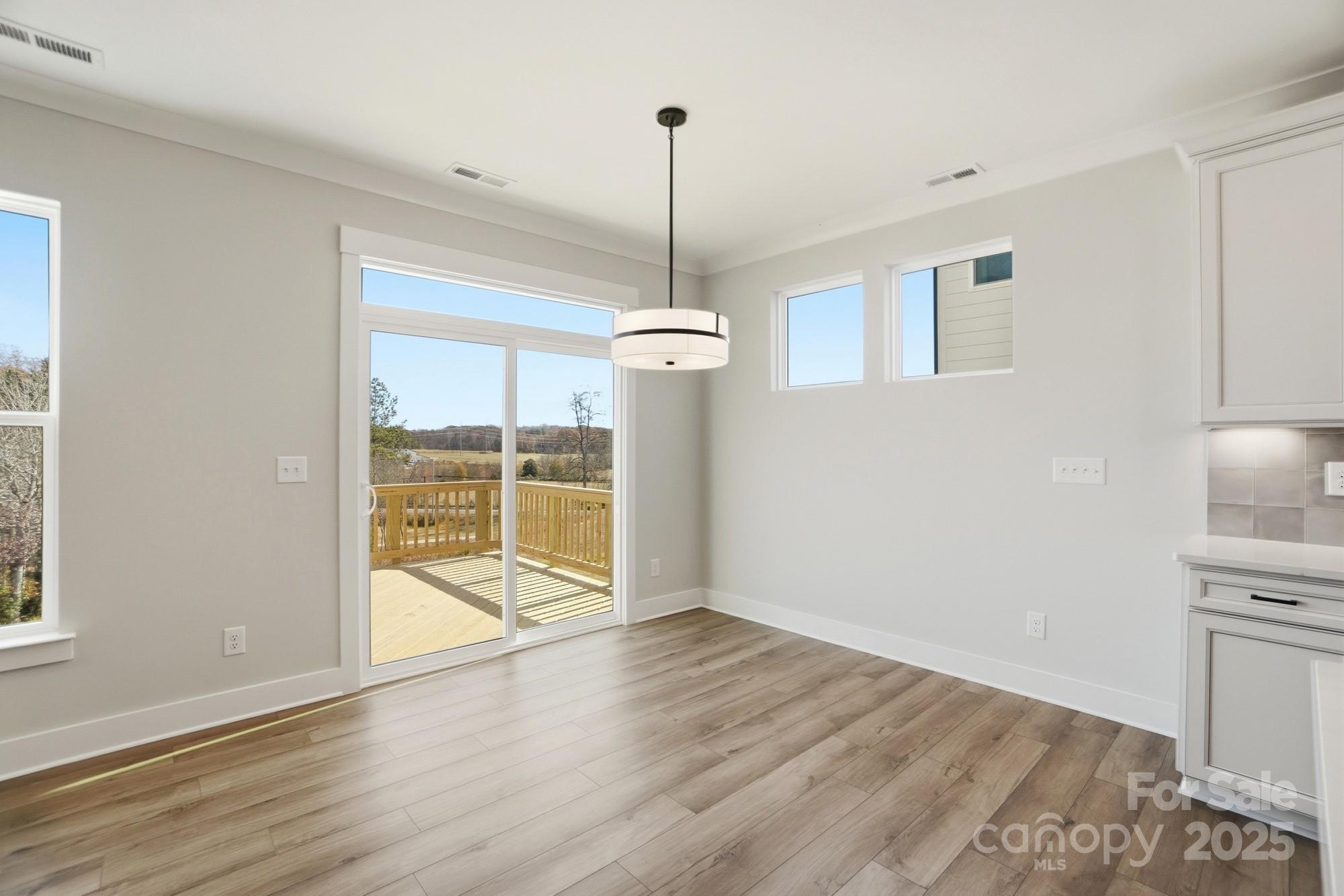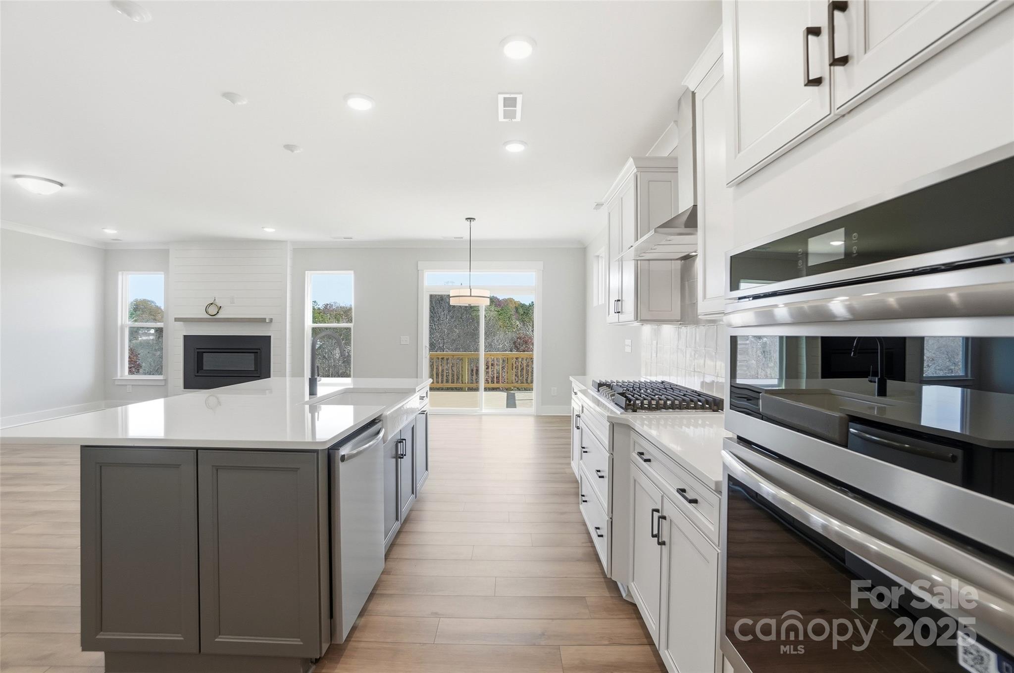 New construction in Mooresville! Let this Davidson welcome you home with its impressive 8' front door. The kitchen features upgraded 42-inch cabinets and matte black hardware, quartz counters, and tile backsplash. The kitchen also has stainless appliances, including a gas range with designer range hood. This home also features a family room with Cosmo fireplace showcasing a shiplap wall. The primary suite features a sitting room. All bathrooms feature quartz countertops, and the guest bath features a 4ft shower with bench seat. Other exciting extras include tray ceiling in the foyer, Enhanced Vinyl Plank flooring on the main, and an additional third floor with bedroom and bathroom. Enjoy the outdoors on the rear 12x12 deck, backing up to trees!