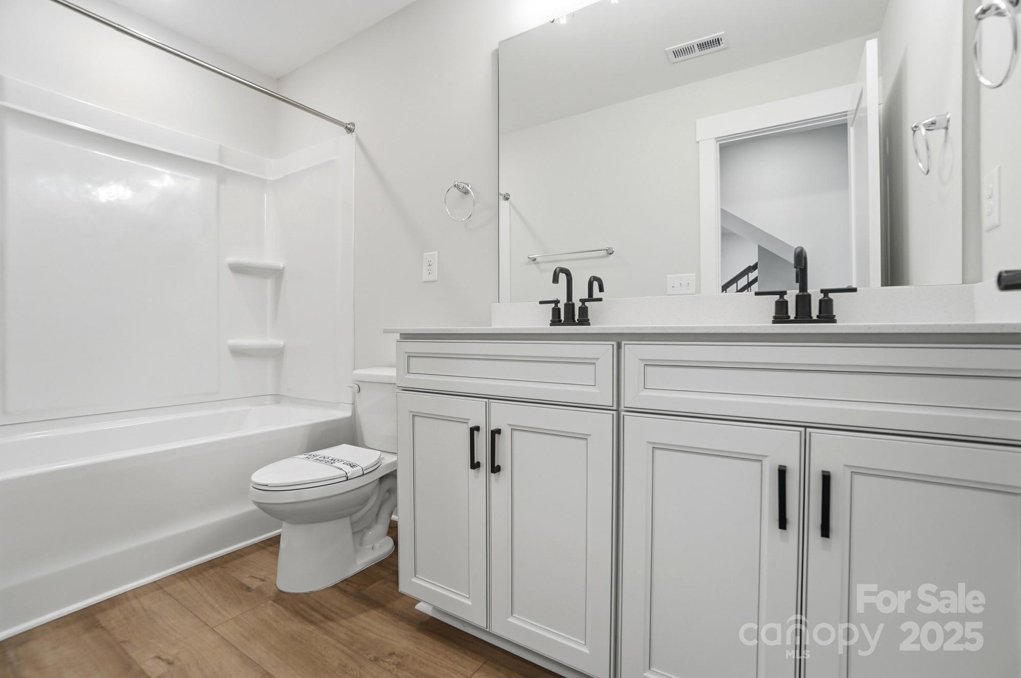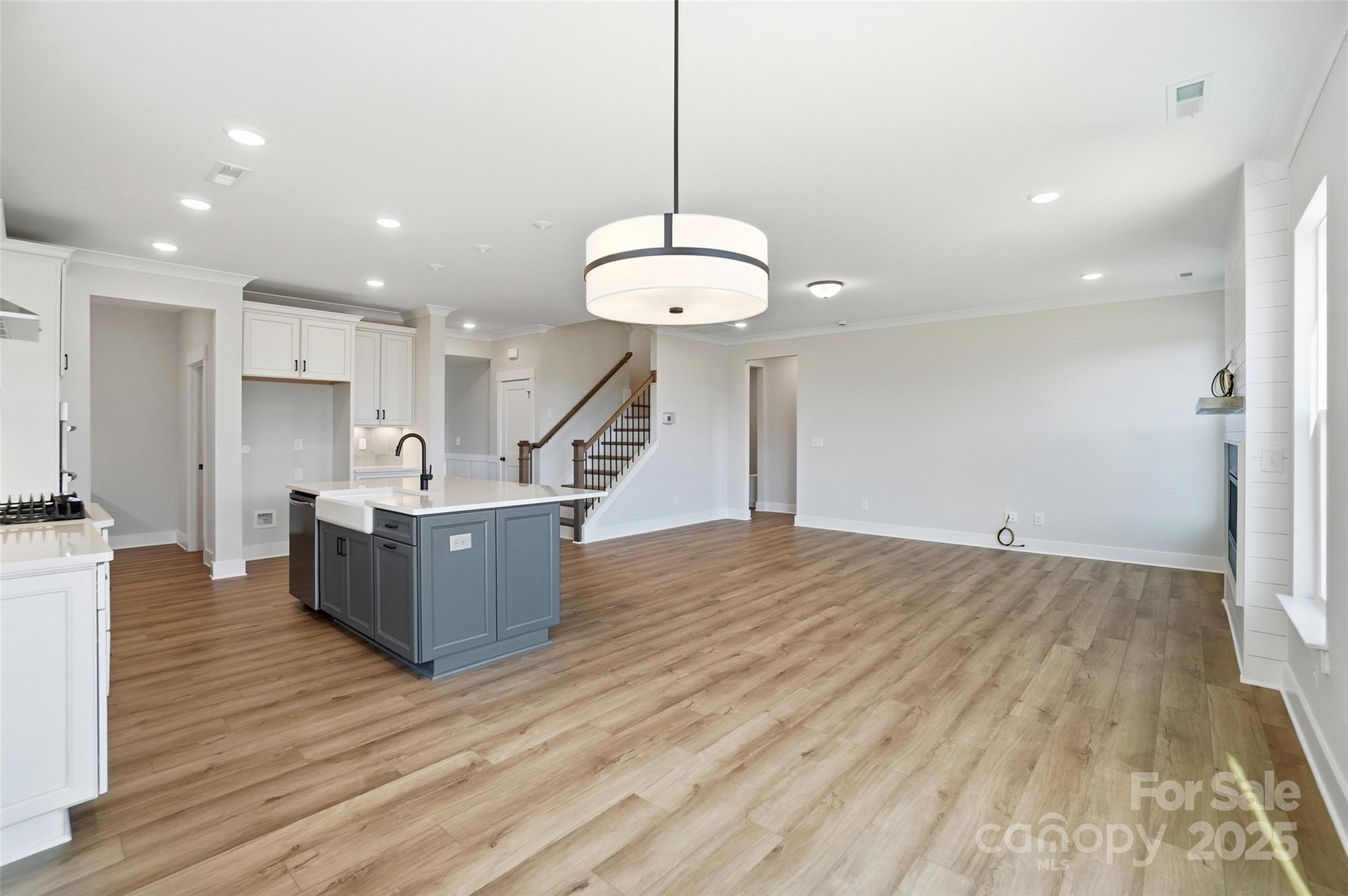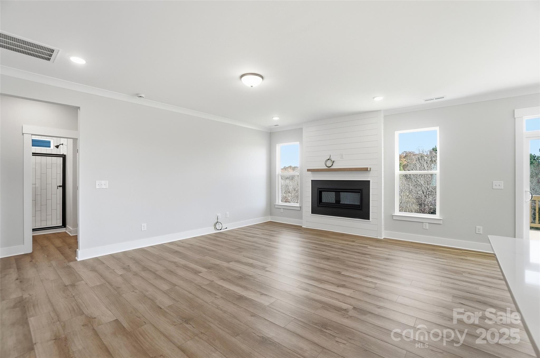 New construction in Mooresville! Let this Davidson welcome you home with its impressive 8' front door. The kitchen features upgraded 42-inch cabinets and matte black hardware, quartz counters, and tile backsplash. The kitchen also has stainless appliances, including a gas range with designer range hood. This home also features a family room with Cosmo fireplace showcasing a shiplap wall. The primary suite features a sitting room. All bathrooms feature quartz countertops, and the guest bath features a 4ft shower with bench seat. Other exciting extras include tray ceiling in the foyer, Enhanced Vinyl Plank flooring on the main, and an additional third floor with bedroom and bathroom. Enjoy the outdoors on the rear 12x12 deck, backing up to trees!