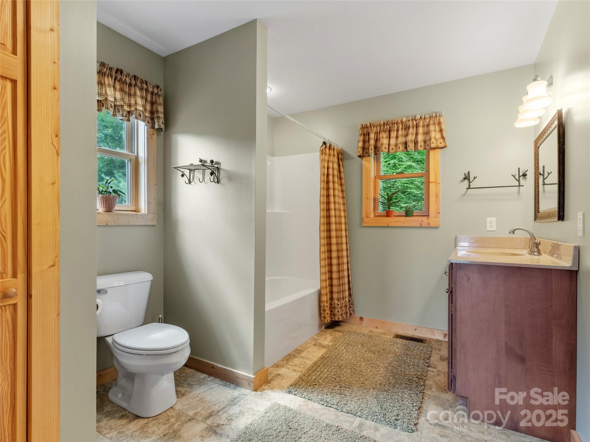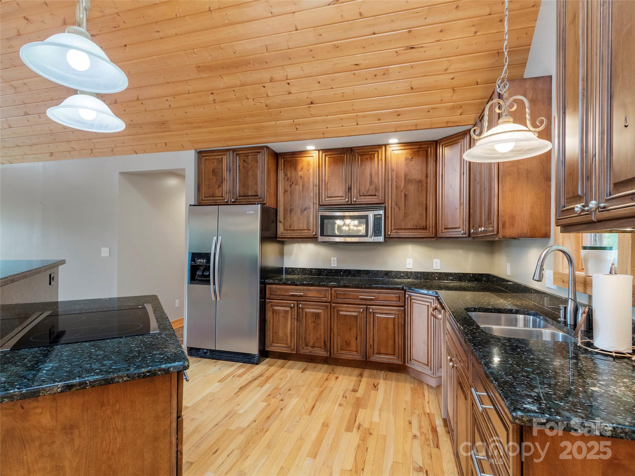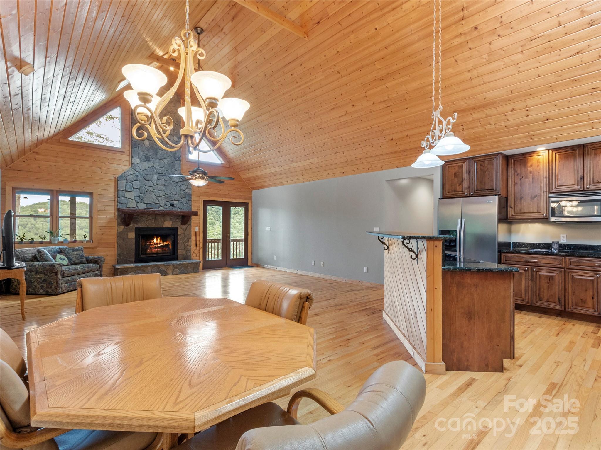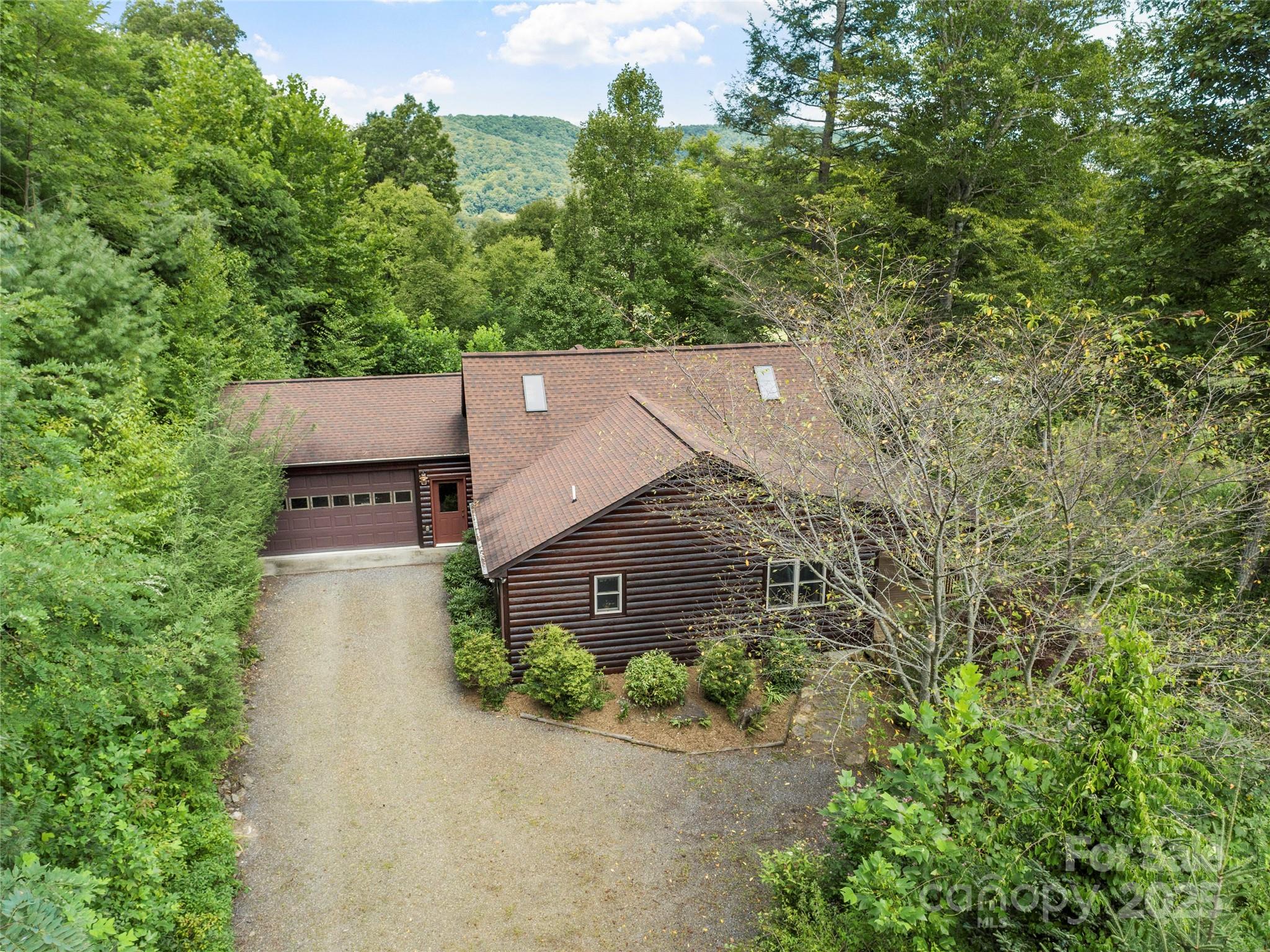 Step into peaceful tranquility with this beautifully maintained, single-level 2 bedroom, 2 bathroom log-sided retreat. Perched to capture breathtaking mountain views, this home offers the perfect blend of rustic charm and modern luxury. The open floor plan immediately welcomes you with soaring tongue & groove pine ceilings and an atmosphere so warm, you'll feel instantly at ease. Imagine cozy evenings beside the floor-to-ceiling stone fireplace, casting a warm glow across the living space. Cooking is a delight in the modern kitchen, featuring granite countertops and stainless steel appliances. The thoughtful split-bedroom layout ensures privacy, creating a true escape in the spacious primary en-suite. Natural light pours in through large windows and skylights, keeping the home bright throughout the day. A convenient 2-car garage provides easy access and storage. Location couldn't be better: you're just 10 minutes to Burnsville for daily needs and 1 hour to Asheville. Adventure is on your doorstep, with the Blue Ridge Parkway, Mt. Mitchell State Park (the East's highest peak), and the Bare Dark Sky Observatory all nearby. Come find your mountain escape! SHOWINGS by APPOINTMENT ONLY! NO Drive-bys!