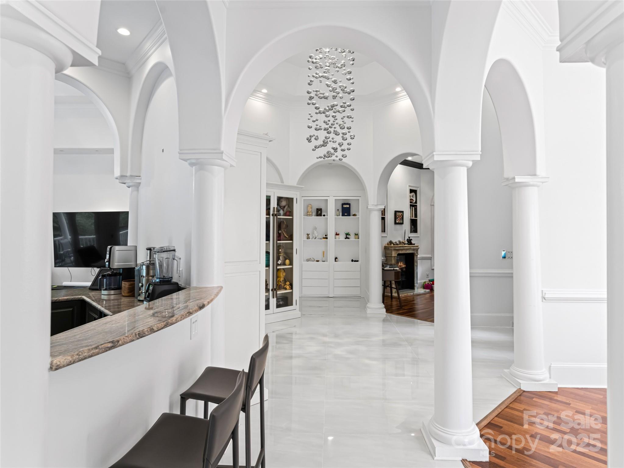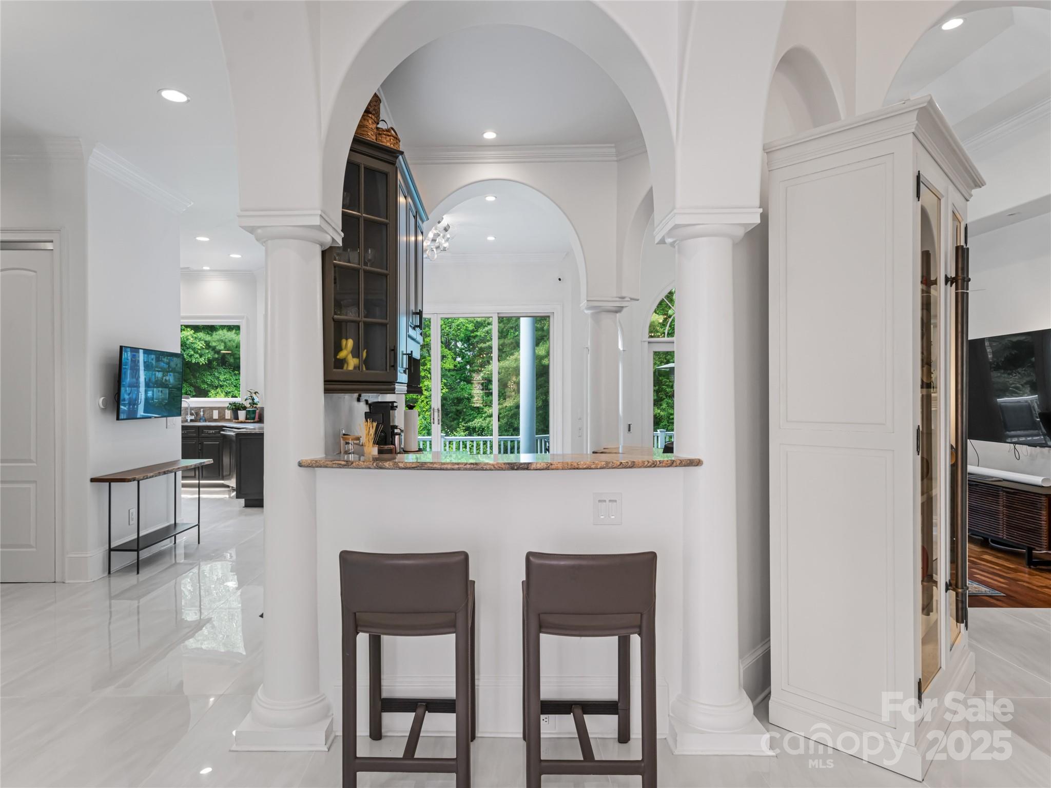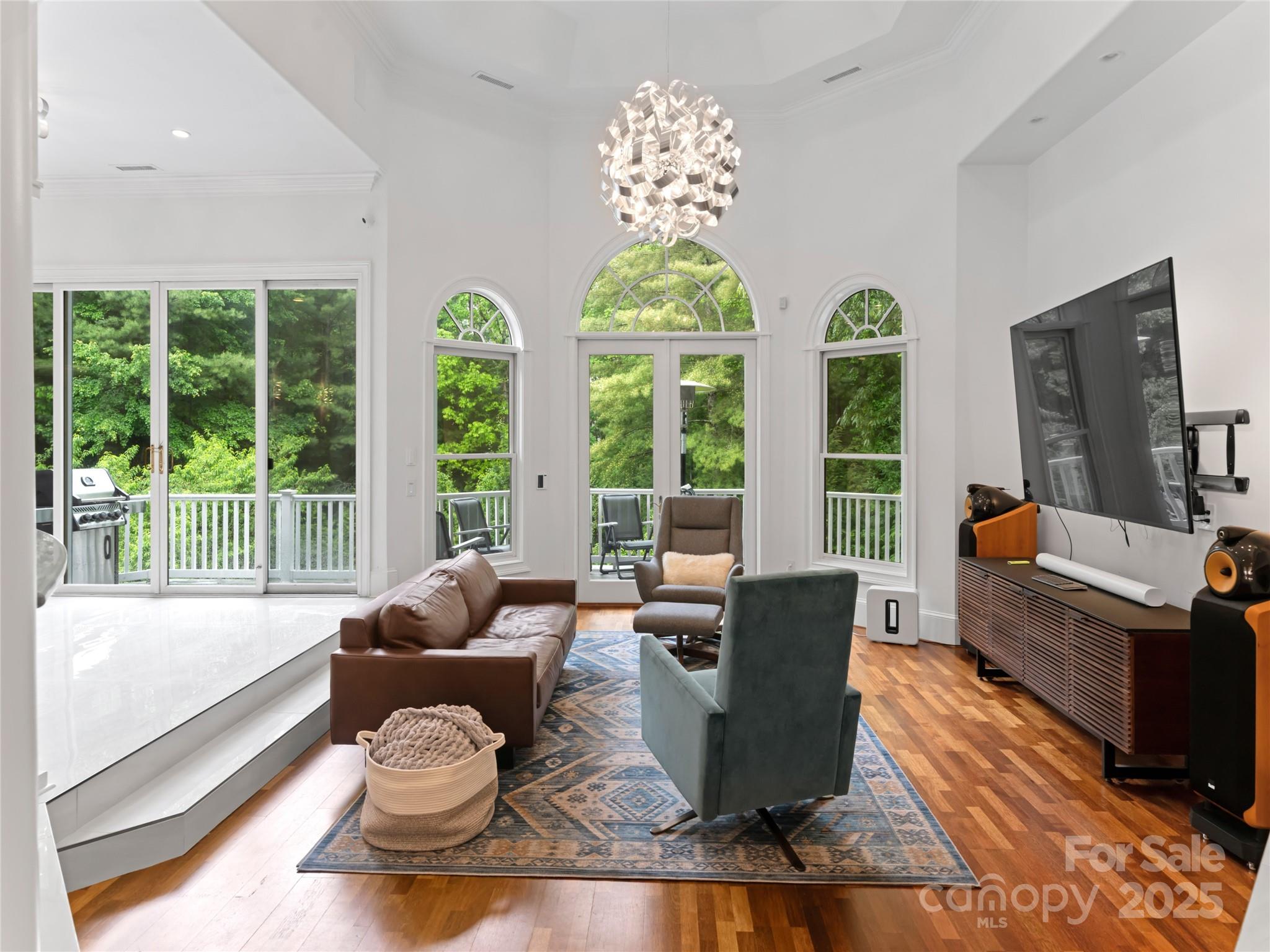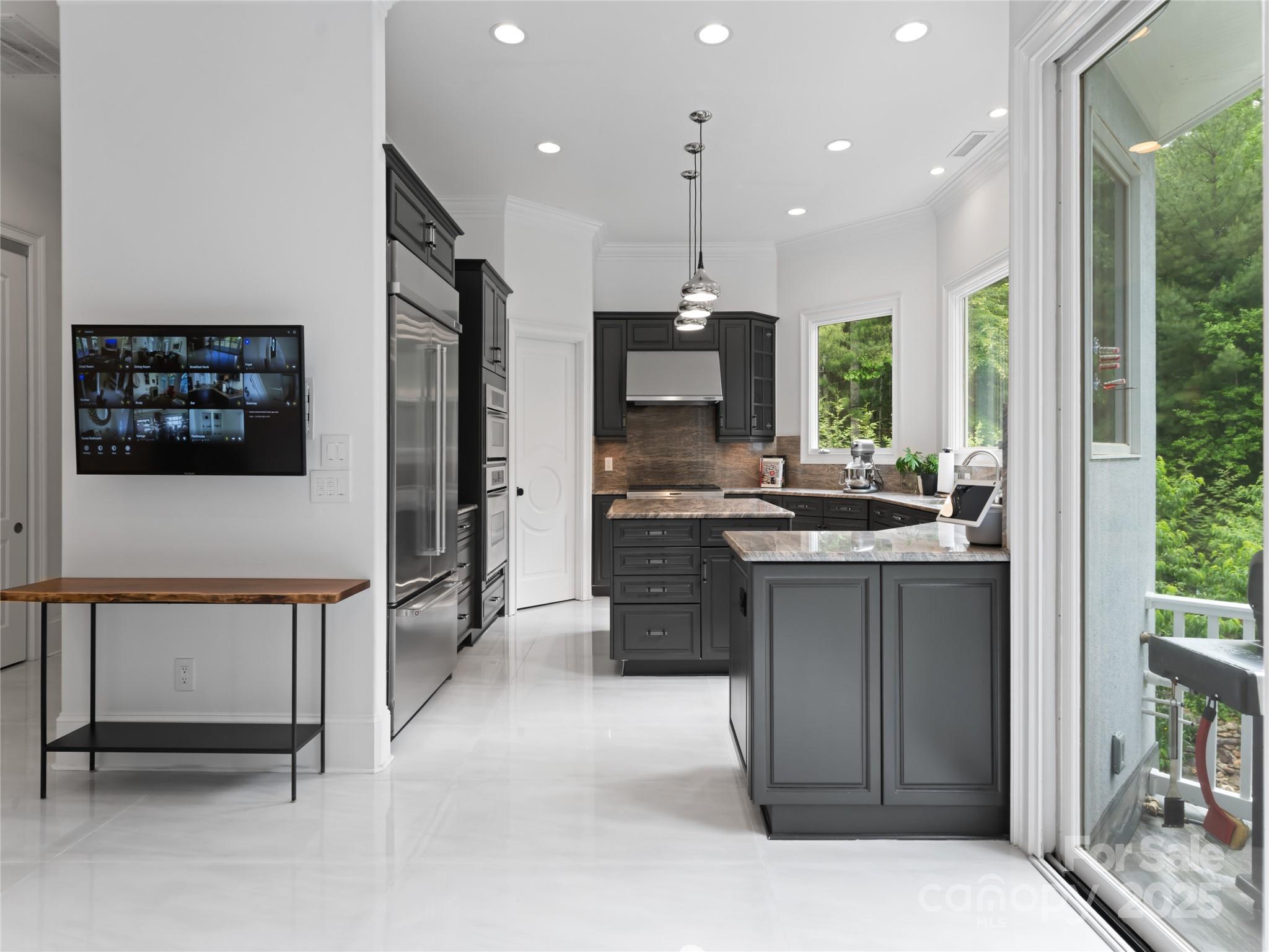 Welcome to this impeccably renovated contemporary estate in Biltmore Forest. Sited on 1.18 landscaped acres and with an additional lot available for purchase for more privacy, the location is just minutes from downtown Asheville. Your senses will awaken the moment you enter the light-filled foyer that flows into multiple living areas, all featuring sophisticated finishes and radiant heated tile floors throughout. The chef's kitchen is a masterpiece of design, boasting custom cabinetry, granite surfaces, and premium appliances. The main-level owner's retreat is a sanctuary, hidden behind bookshelf doors with a spa-like ensuite featuring a Mr. Steam shower, soaking tub, and Valiryo body dryer. Smart-home automation seamlessly controls lighting, HVAC, security, and Sonance surround sound. The terrace level offers a soundproof media room and, playroom. Multiple guest ensuites each have their own private luxury bathroom. Schedule your showing and come check out all this home has to offer.