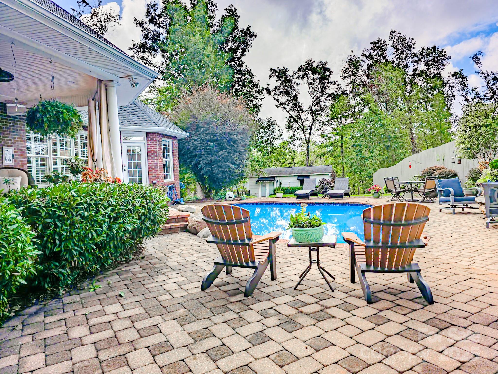 Welcome to this stunning 3 bedroom, 2.5 bath all brick home offering 3,211 Sq Ft. of elegant living space on 1.23 acres of professionally landscape grounds. This property provides the perfect blend of comfort, craftsmanship, and convenience, just minutes from uptown shopping, dining and only 20 minutes from the World Equestrian Center. Step inside to discover 13 Ft ceilings in the formal dining room and coffered ceiling in the living room that add a sense of grandeur and space. The home features oak wood flooring throughout the main living area and tile flooring in the kitchen, breakfast area and bathrooms. Plantation shutters accent windows in living room, dining room and breakfast area. A beautiful palladium window in the dining room fills the space with natural light. The spacious owners suite includes large walk-in closet and a luxurious owners bathroom with elegant tile floors and shower. The bonus room provides the perfect retreat for entertaining , ideal for billiard table or media space. Enjoy outdoor living at its finest on the large back porch overlooking a sparkling saltwater pool, fire pit and lush landscaping, complete with in-ground irrigation. The oversized garage includes a separate golf cart bay and professionally upgraded flooring. A large detached building offers endless possibilities, perfect for an art studio, workshop, or home gym. Don't miss your opportunity to own this beautifully maintained home that truly has it all- style, space, and location.