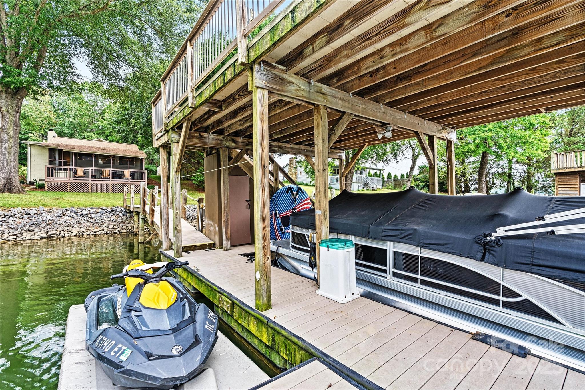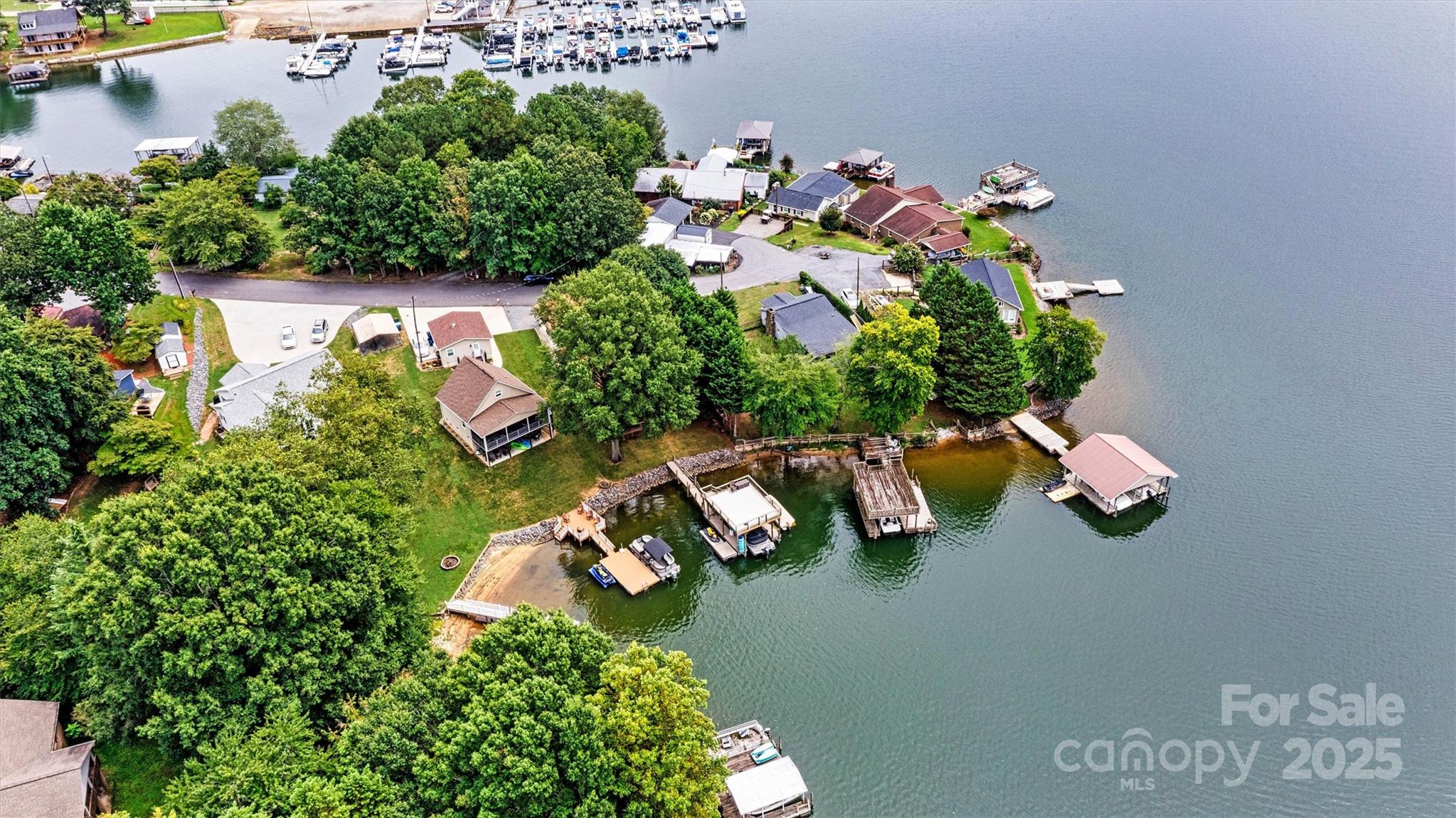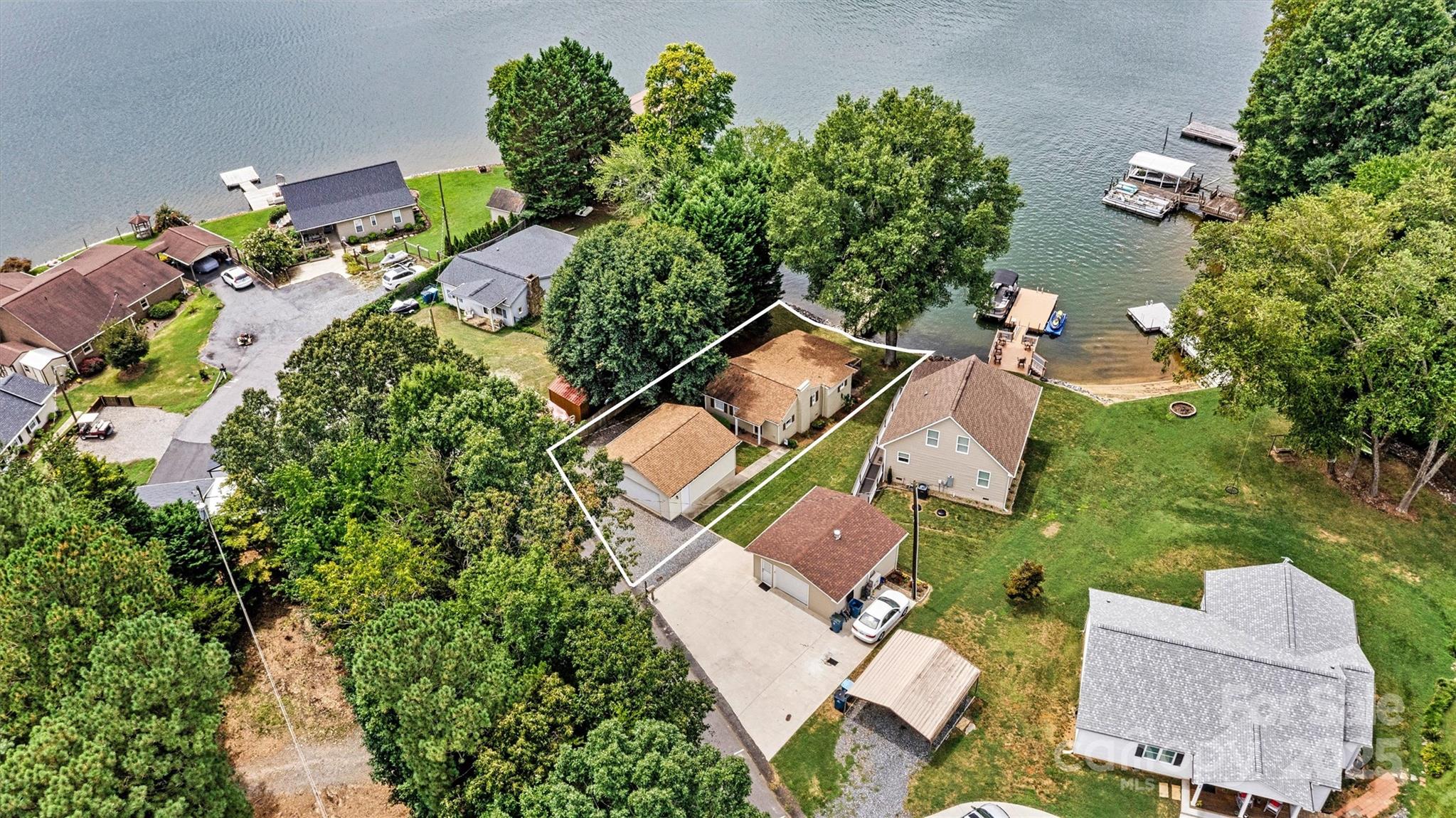 Welcome home to this turn-key, furnished, lakefront cabin on Lake Hickory. My biggest piece of advice to second home buyers is not to buy yourself too much home and land to upkeep and in turn another job. You want a place to go relax and enjoy not a constant chore. This compact home and lot is exactly that vision and with recent renovations including a newer roof, heat pump, brand new permitted septic system, and fresh paint this home is ready for the long haul.The home has a small kitchen but large dining area with fireplace, lower level den spills out onto the screened porch to take in the views. An unusual feature for a property at this price point and size is a large 2 car garage for all your lake toy and boat storage needs. The main attraction though is the 2 story dock with boat and jet ski lifts that convey. With a party deck on top this is a great place to take in the main channel views or use the gate to jump into the deep water for thrills. To replace this dock and lifts would easily be $100,000 today.