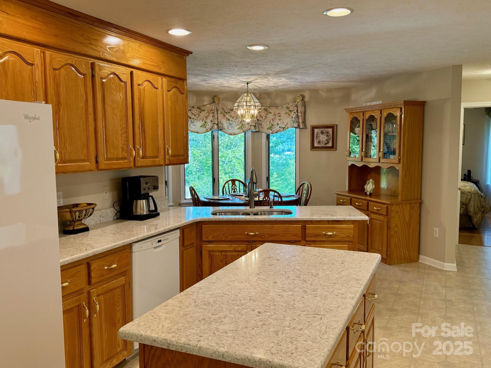 Beautifully maintained ranch home with mountain views and seasonal long range views on a large yard surrounded by mature trees and blooming gardens to enjoy each year from a private porch. Located in the highly desirable historic Town of Webster just minutes from Sylva and Western Carolina University and a short drive to Waynesville, this home has been meticulously cared for by the original owner and features updated countertops in the kitchen, as well as the main bath, a large family room with vaulted ceiling and fireplace, living rm, formal dining , 3 bedrooms and 2 full size bathrooms, hardwood flooring, as well as an epoxy coated oversized two-car garage with storage room and attic space above. This MUST SEE home won’t last!