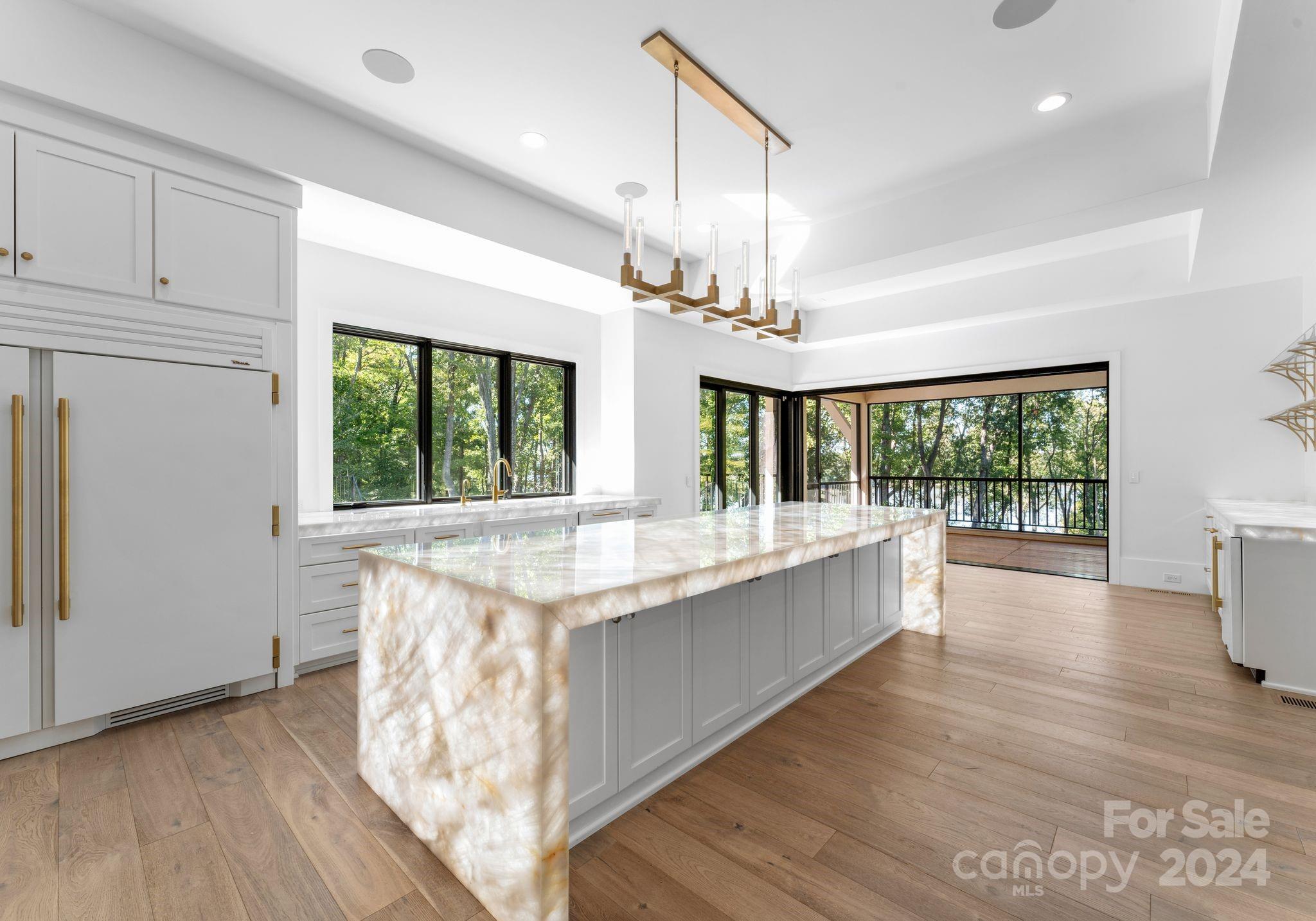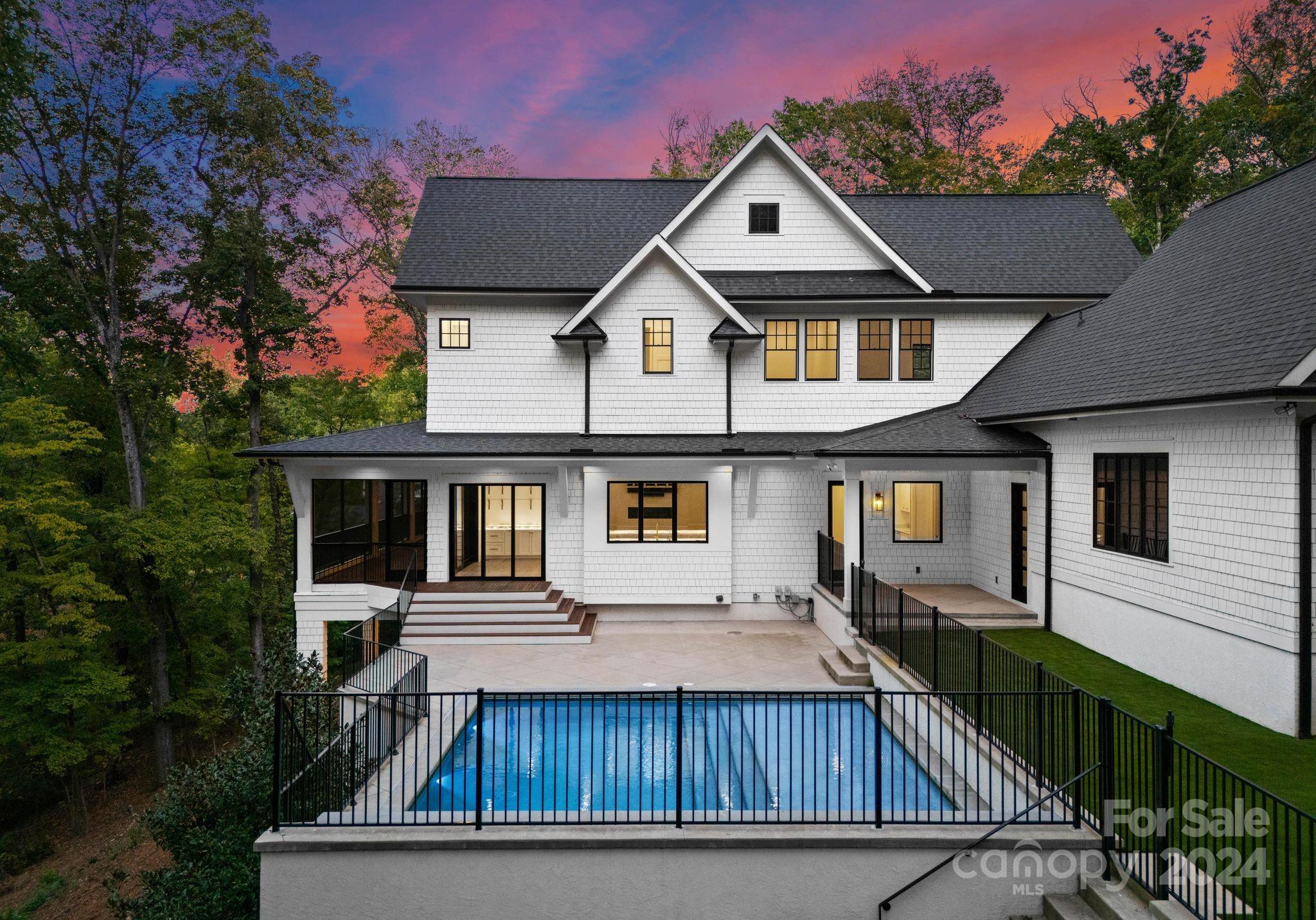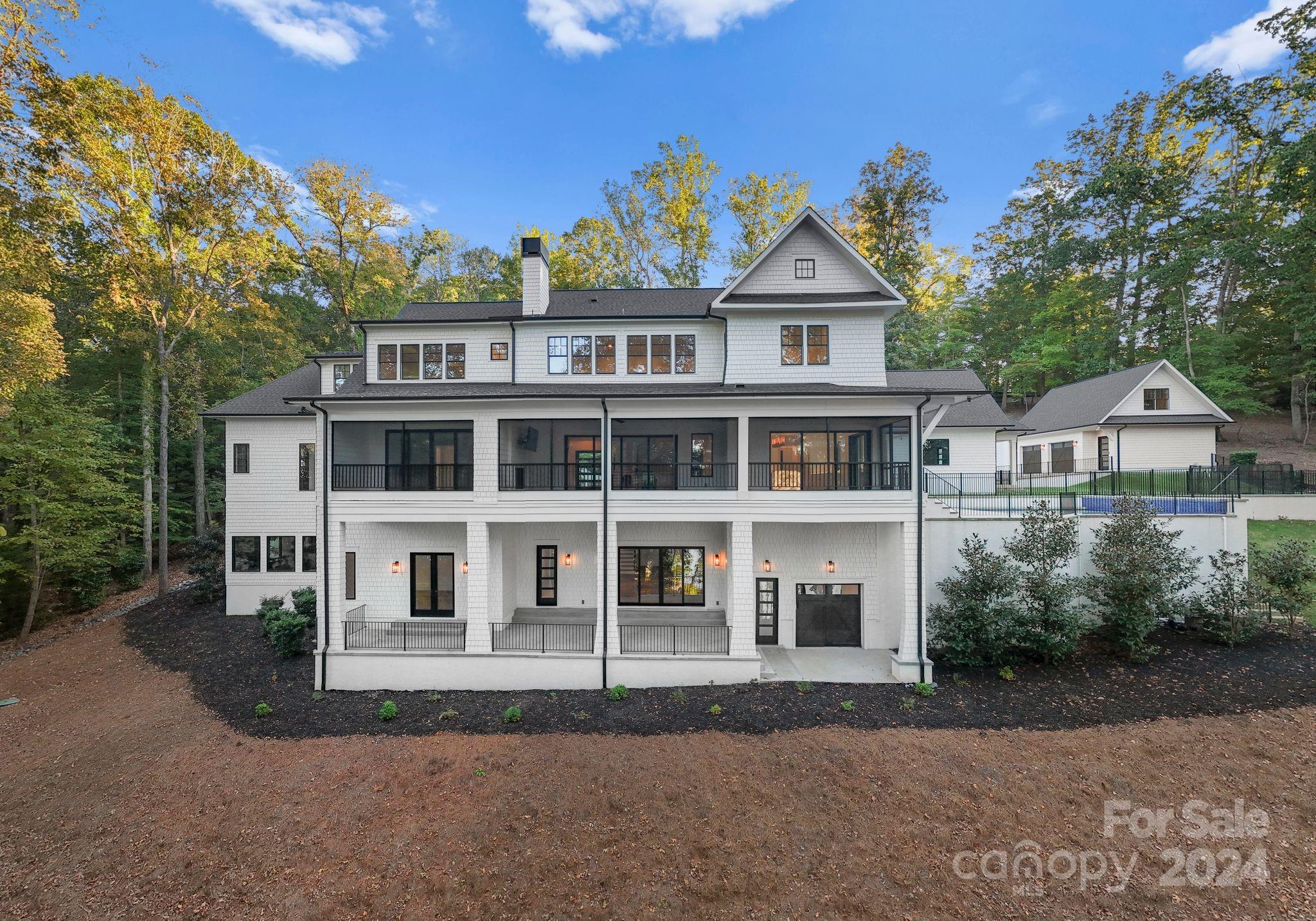 Private, gated modern estate on Lake Wylie situated on 3.9 acres. Meticulously designed home with luxury details throughout. Pivoting front door, open floor plan & water views from almost every room. Retractable doors in the great room & kitchen open to the lakeside screened balcony for entertaining. The gourmet kitchen is spectacular with the backlit cristillita quartzite countertops & entertaining bar. The oversized primary suite features a fireplace & walkout balcony with retractable doors. The spa like bathroom has a soaking tub, double entry shower doors, backlit countertops, and recently installed custom closets and lighting. Additional features include: Scullery,4 BR on the upper level with a recreational room,bonus room & 2nd laundry room: lower level has an oversized great room, bonus/flex rooms, home gym, theater room and a lakeside garage Outside features: pool off the kitchen, in-ground trampoline & multiple entertaining areas. Renderings available for a new private pier.