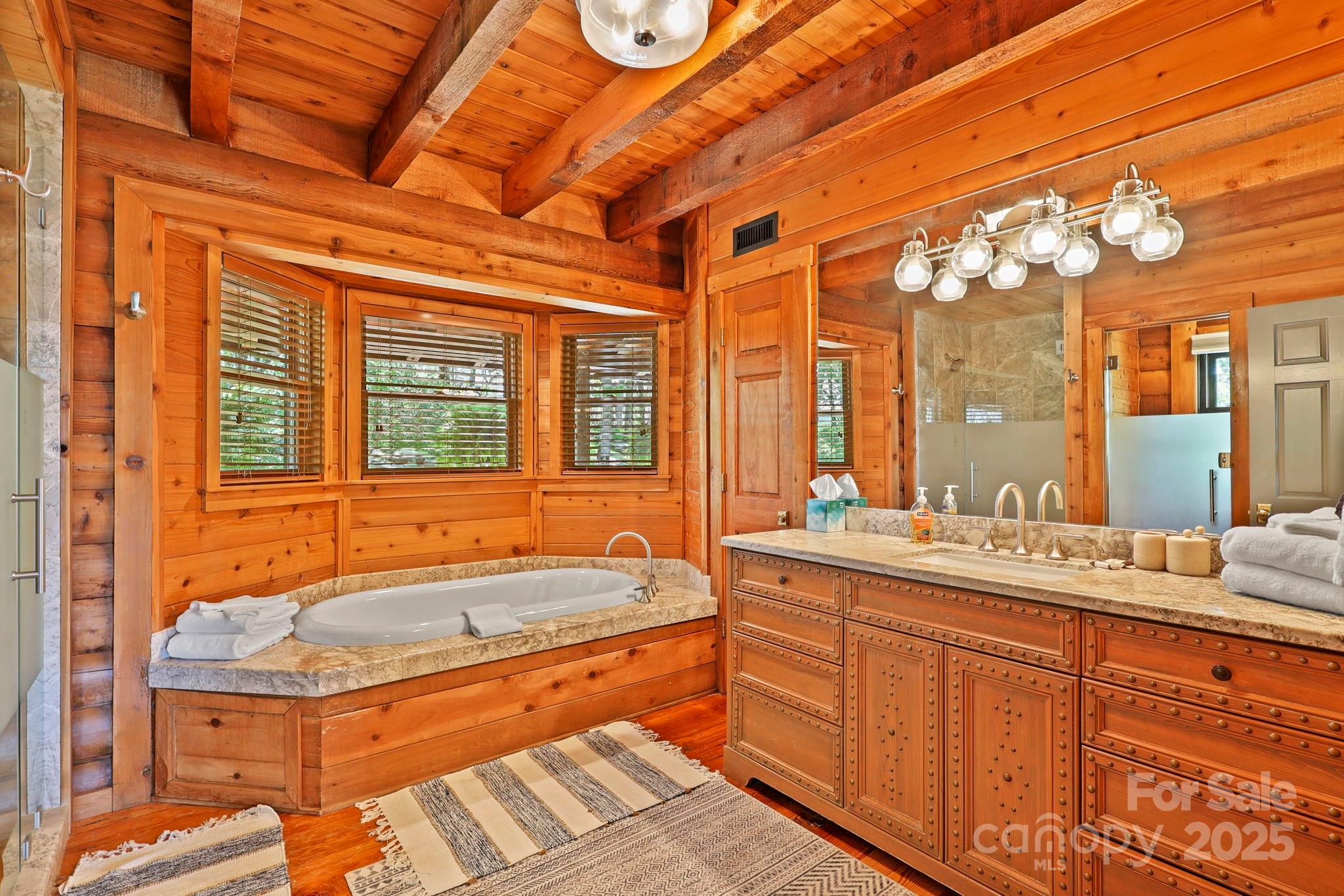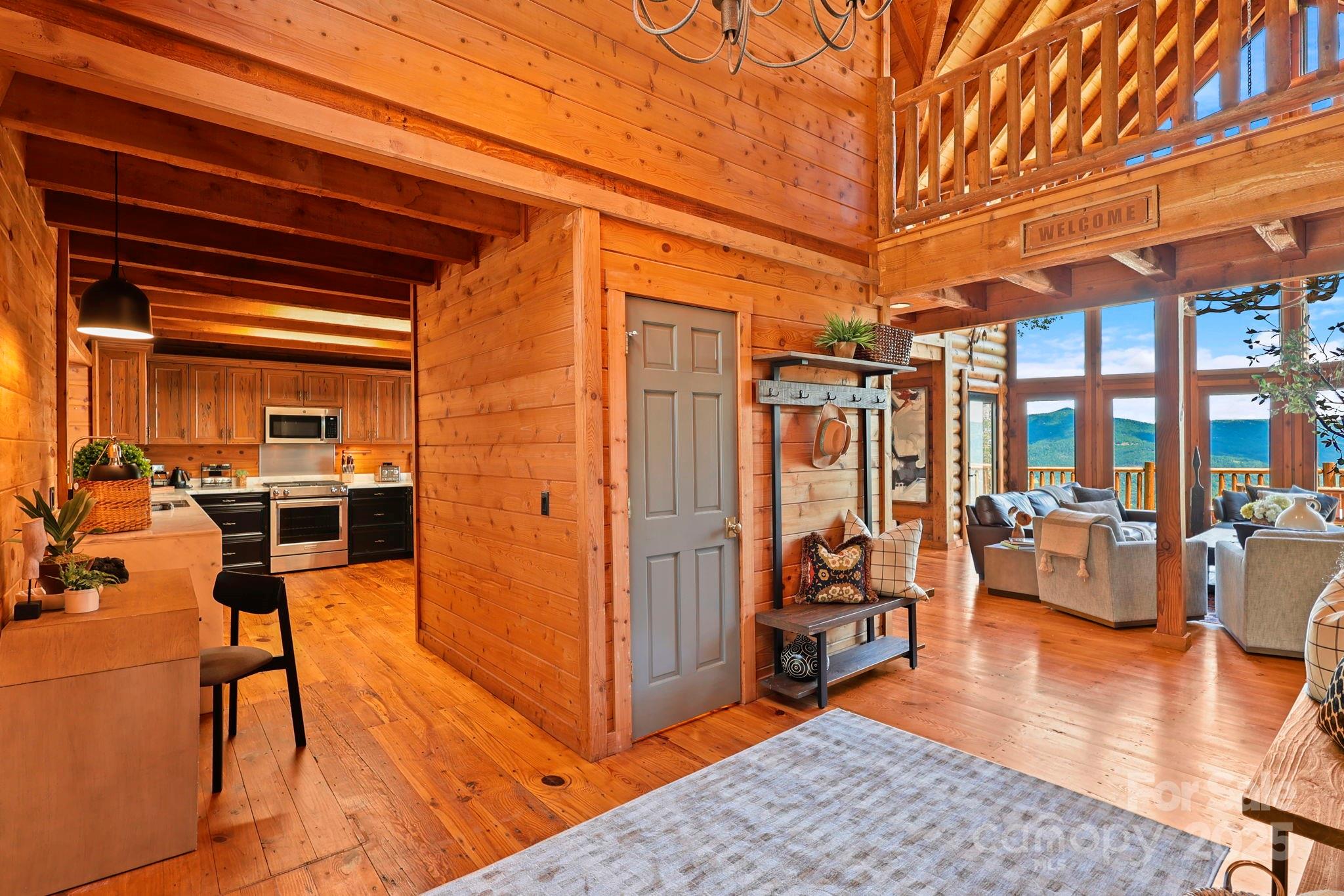 Tucked into the mountains just minutes from Banner Elk, this exceptional custom log home offers the ultimate blend of rustic luxury, privacy, & sweeping long-range views. Offered fully furnished, the home welcomes you with wide plank heart of pine floors, soaring cathedral ceilings, & a dramatic stone fireplace framed by floor-to-ceiling windows to take in the breathtaking views! The kitchen is a dream—custom cabinetry, marble countertops, & open flow into the dining area. The spacious main-level primary suite features sliding doors to balcony, a jetted tub, tiled shower & walk-in closet. Upstairs, 2 vaulted suites & a loft capture the long range views. Walk-out lower level offers a bonus suite & a heated/cooled game room (800+sf not in HLA), plus detached garage. Outdoor living with expansive decks, stone patio, & firepit. Includes 3 additional buildable L/R view lots. Whether you're seeking a mountain retreat or investment, this one checks every box. See docs for seller improvements.