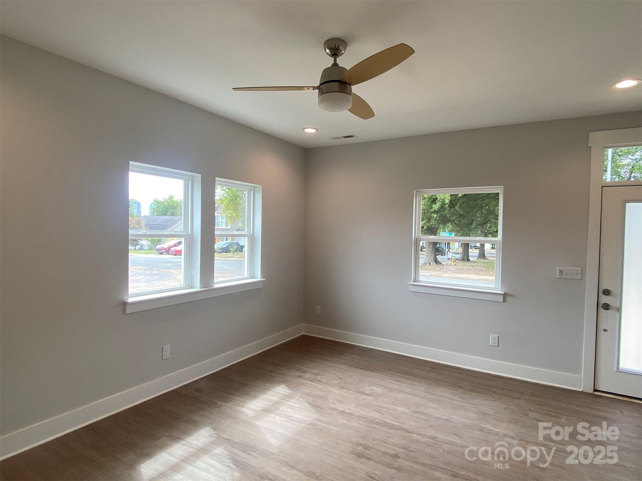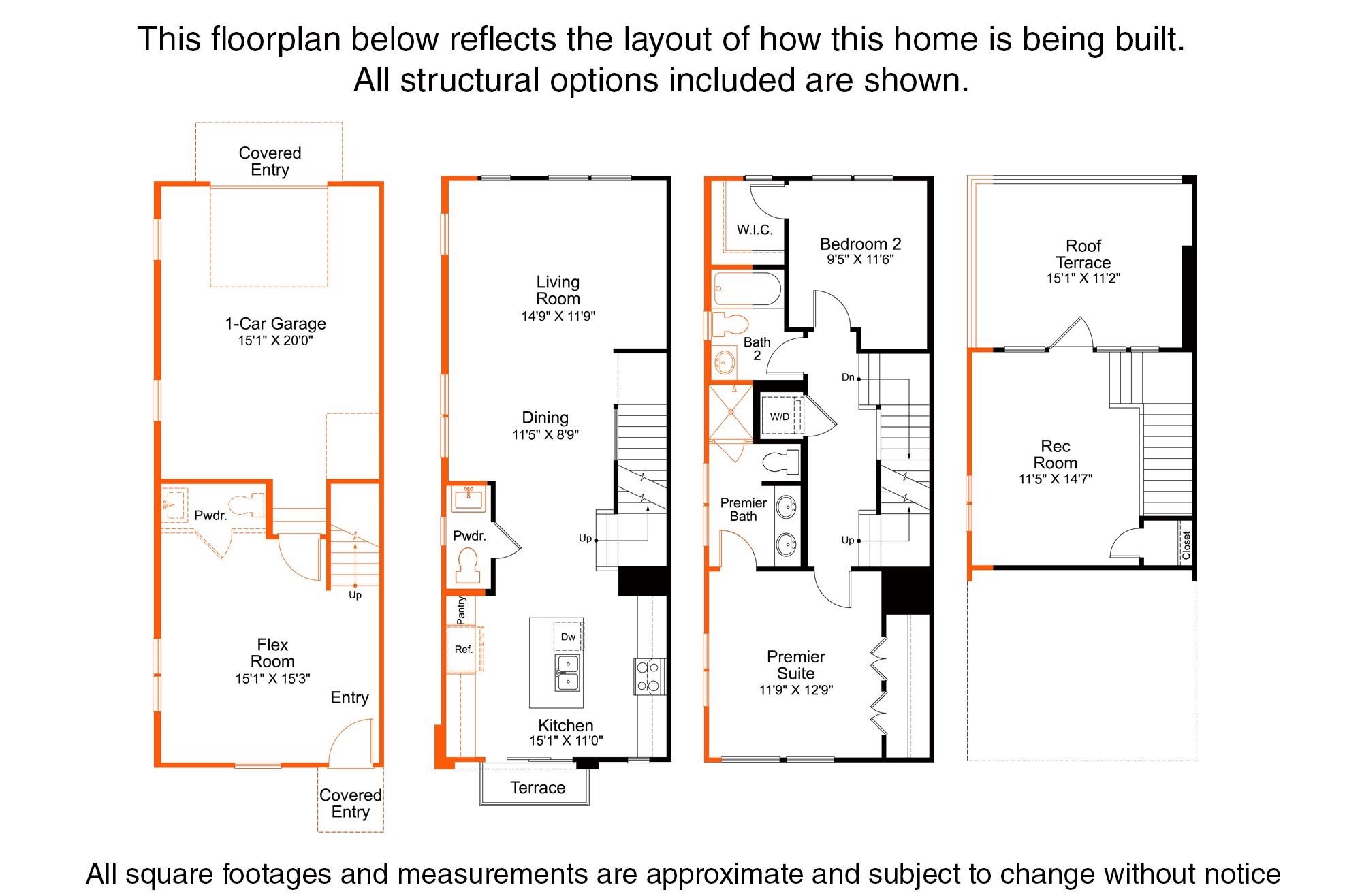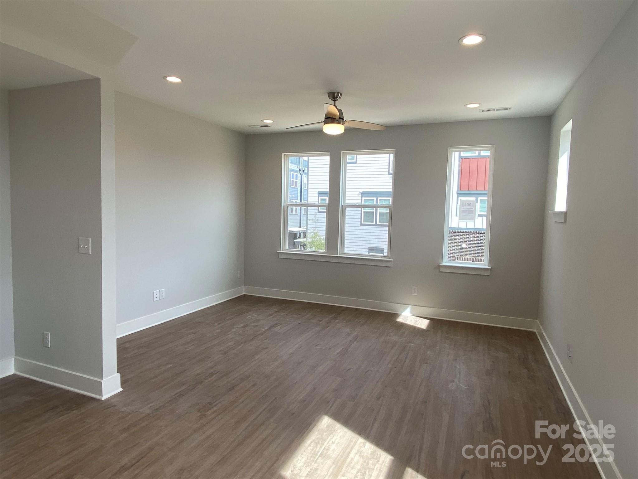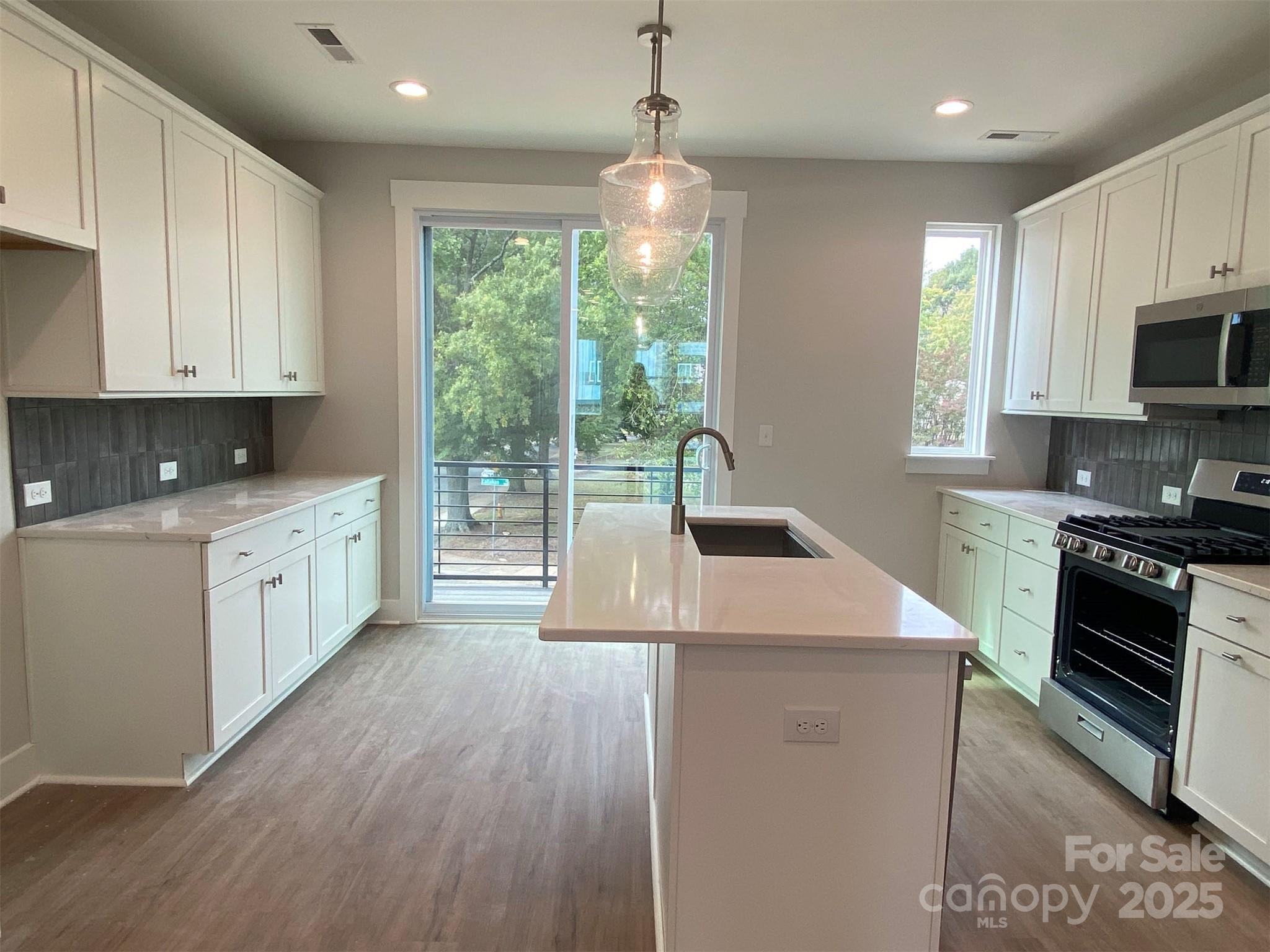 Enjoy Location & Versatility in this 4-story townhome, featuring a top floor Rec room and rooftop terrace, plus first floor Flex room with powder! Walk across the street to Camp North End, and you'll be minutes from Uptown. The open layout of the 2nd floor makes gatherings a breeze. Kitchen features 42" cabinets w/ quartz counters, backsplash, under-cabinet lights, trash pullout, pantry cabinet, & GE SS app w/ gas range, plus large undermount stainless sink. 3rd floor has a laundry closet plus secondary hall bath quartz counters and tiled floor. The Premier Suite includes en-suite bath with quartz counters, tiled floor, and large tiled shower with semi-frameless glass & shampoo niche. Low maintenance LVP floors are throughout the first and second floors, plus third floor hallway, with oak treads on the stairs. 9' ceilings throughout; 1-car garage plus driveway. City views from front.