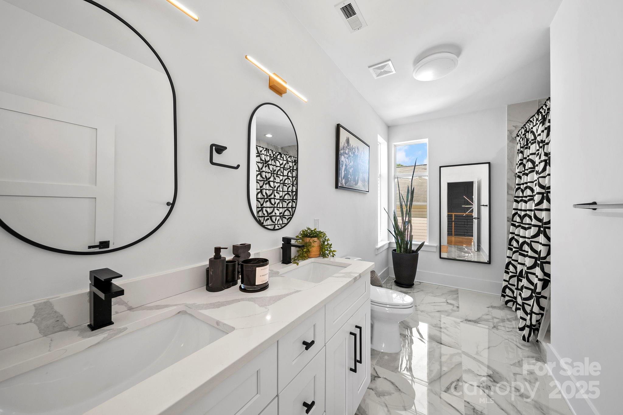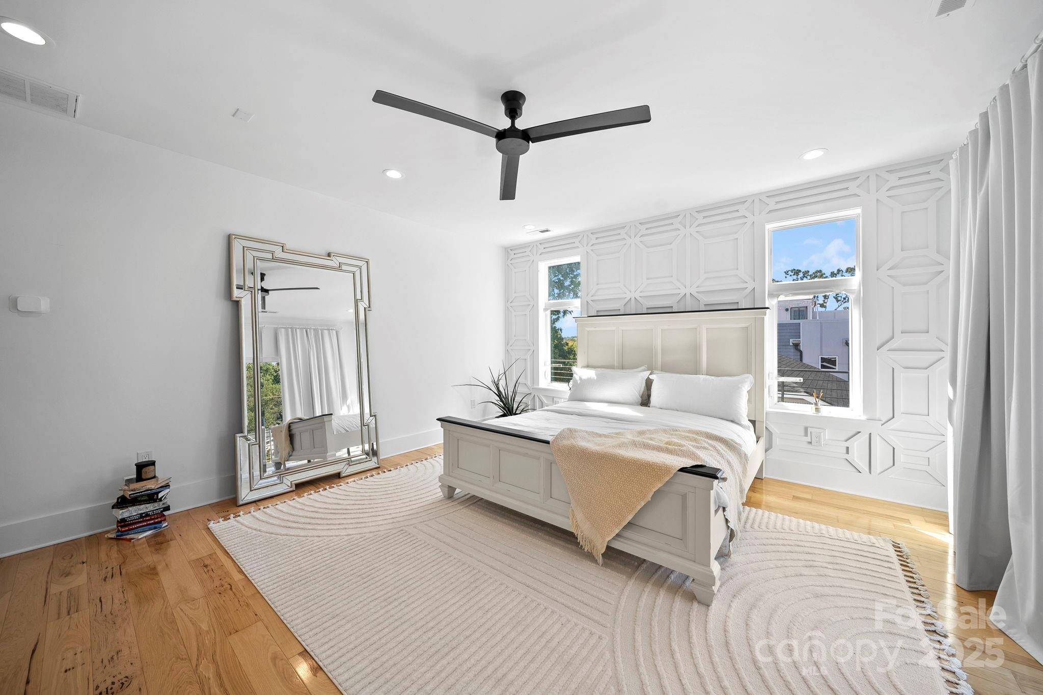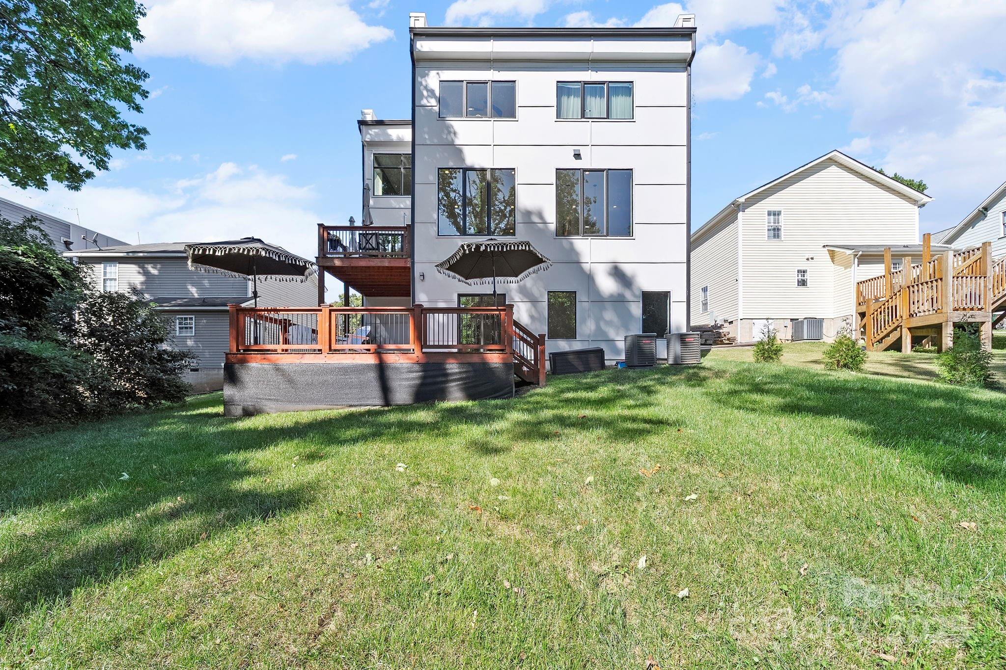 Urban Sophistication Meets Sleek Design! Discover the art of modern living in this architecturally stunning 3-bedroom, 3.5-bath home located in the heart of Center City. Every detail of this residence reflects a thoughtful balance of style and function, from the gourmet kitchen featuring a massive island and custom cabinetry to the extensive millwork that adds warmth and dimension throughout. The open-concept main level is framed by floor-to-ceiling windows, flooding the space with natural light and connecting seamlessly to multiple decks, each designed for effortless entertaining. The primary suite offers a serene retreat with its private balcony, spa-inspired bath, and walk-in closet. An inviting office provides a dedicated workspace, while the spacious basement includes a versatile wet room, ideal for fitness, recreation, or guest use. A two-car garage with soaring 20 foot ceilings adds both convenience and wow-factor. The laundry on the main level and a private backyard oasis round out this remarkable home - where modern architecture meets livable luxury.