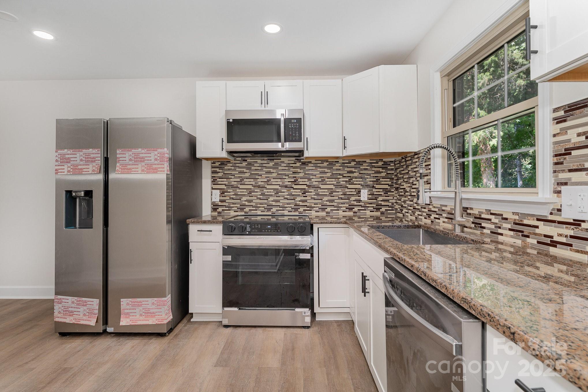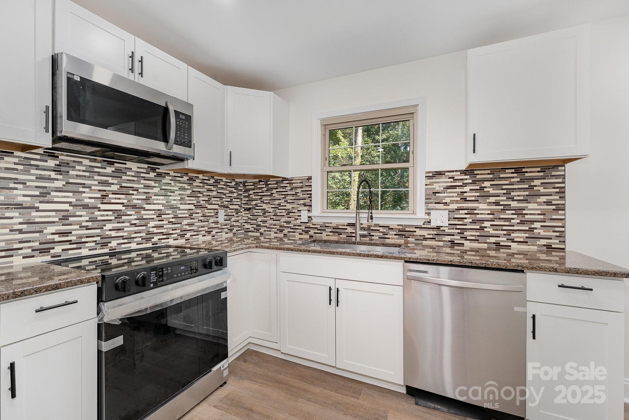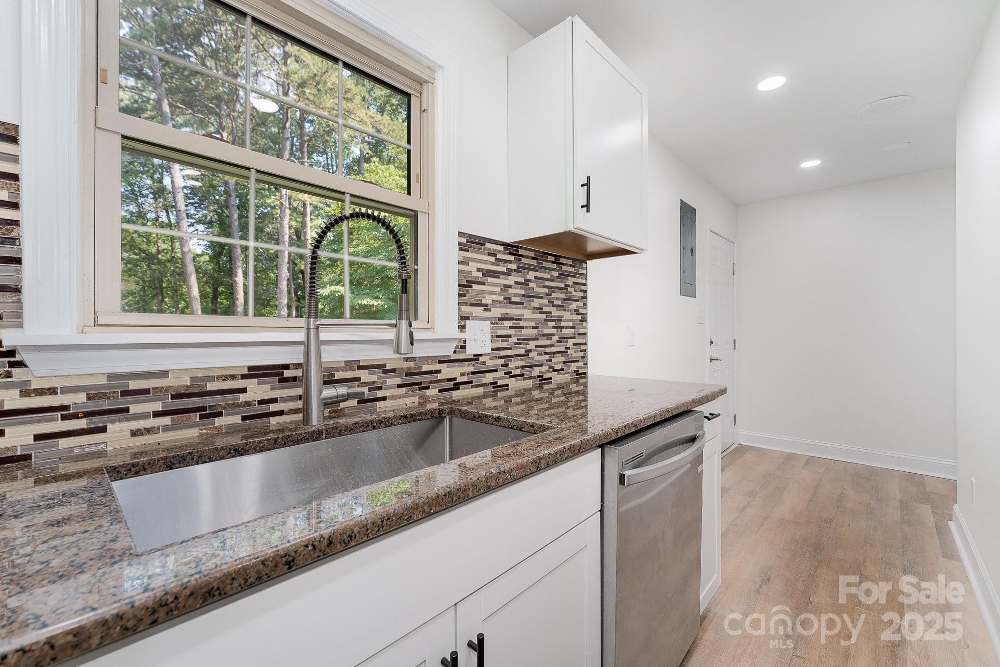 New Roof 2025! This beautifully renovated split-level home blends modern finishes with thoughtful design. Enjoy the all-new kitchen featuring granite countertops, stylish cabinetry, and stainless steel appliances. Both bathrooms offer elegant new vanities and custom tilework in the walk-in shower and tub. Updates continue throughout with LVP flooring, new doors, updated light fixtures, and sleek hardware. Upstairs you’ll find three spacious bedrooms and a full bath, while the lower level includes an open dining area, private office or flex space, a second full bath, laundry area (washer & dryer convey), and a stunning kitchen setup. Step outside to over an acre of privacy, combining landscaped charm with natural beauty. Shed in the backyard has water and electricity. Ideally located near I-85, downtown Salisbury, and local parks — this move-in ready home has it all!