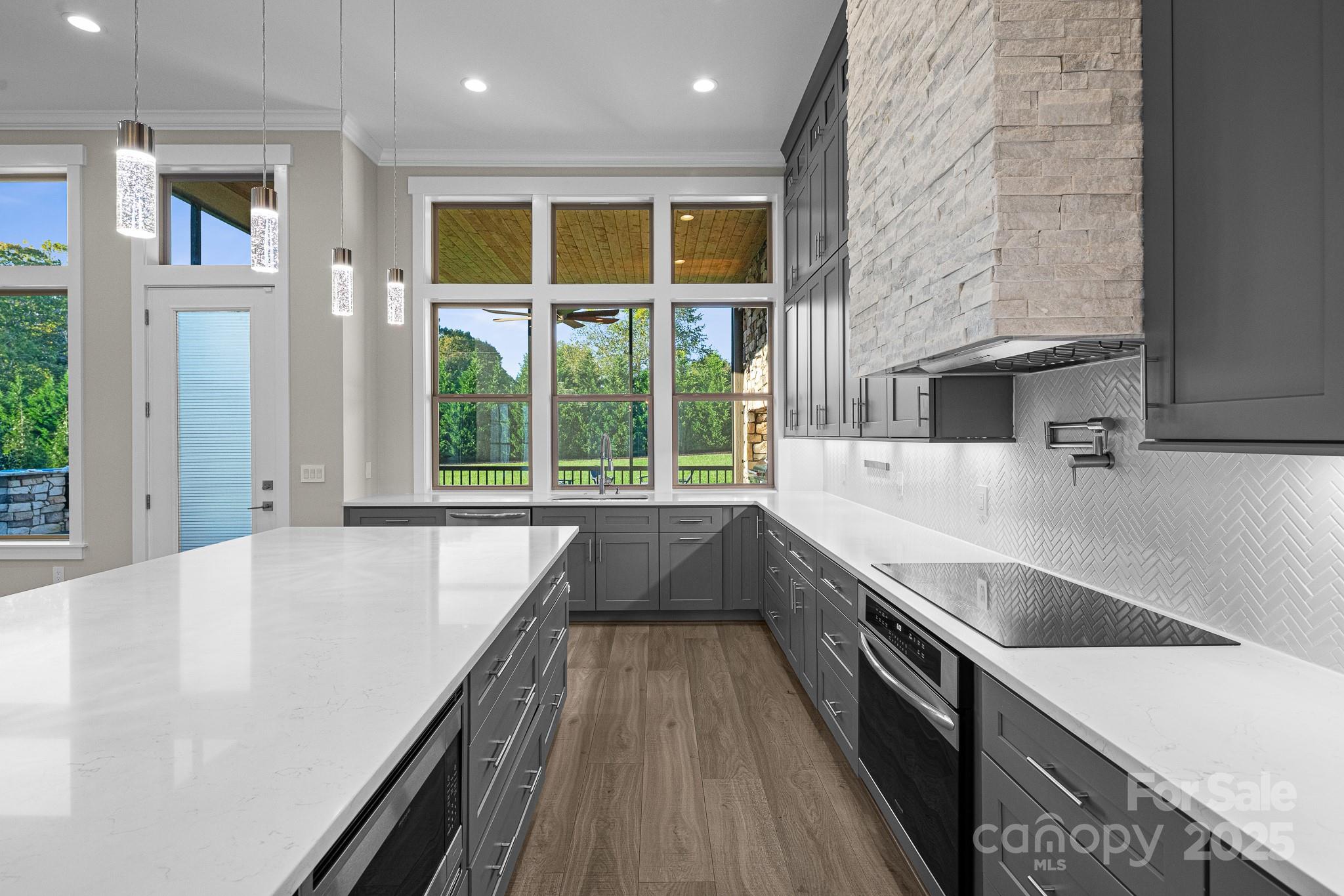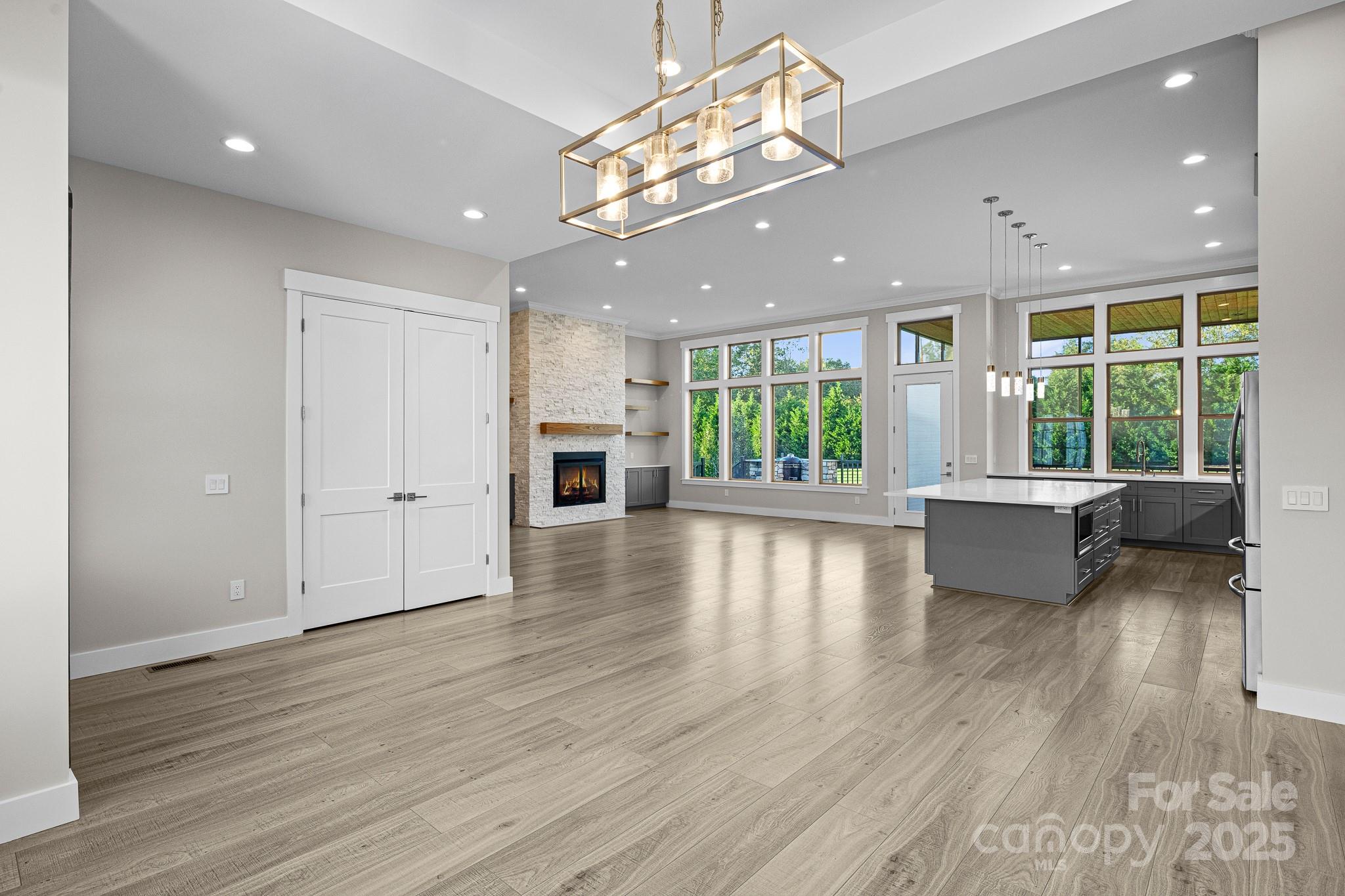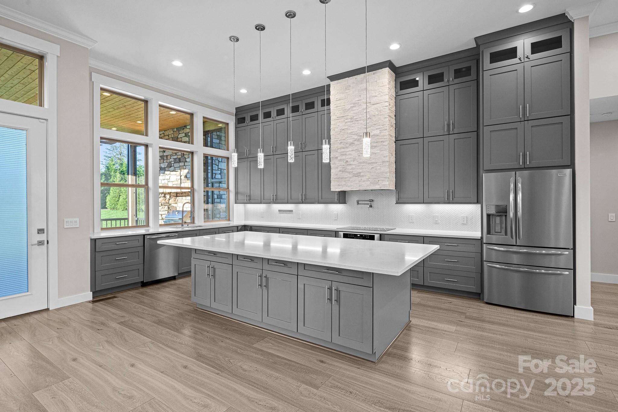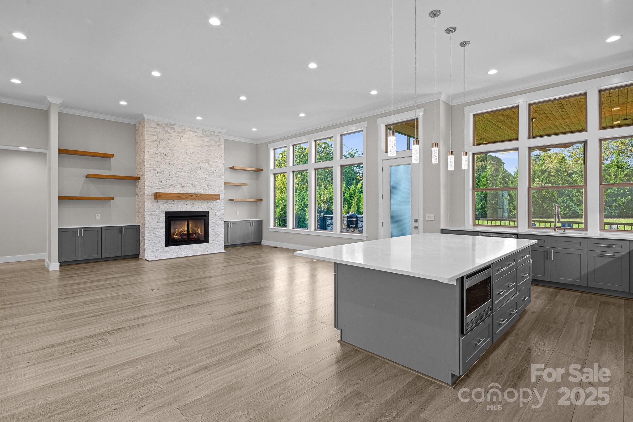 Don't miss out on a chance to own in this sought-after community! This captivating home with 4-bedroom, 2.5- bath 3 car garage residence in this exclusive neighborhood. Boasting a perfect blend of modern comfort and classic charm, this home offers a unique opportunity for buyers. The home is nestled in a gated community of Mills River Crossing. The subdivision provides the perfect foundation to create a polished life filled with comfort and convenience. Mills River Crossing prioritizes its residents and maintains a standard of excellence. Enjoy one-level living with high ceilings up to 12 FT high, with an open concept floor plan. The home also features a built out marble ledger floor to ceiling fireplace in the living room, and a stone grilling station on the rear deck, High-end Quartz countertops, a pantry, custom cabinetry, stainless steel "energy star" appliances, large walk-in closet with custom built-ins, high speed fiber optics, encapsulated crawl space with a dehumidifier, R-50 insulation, solid core doors, sound insulation in the walls, pot filler, 10' x 10' huge kitchen island, and a tankless water heater. Step outside into a big back yard with privacy trees and a fire fit area perfect for gathering friends or family. Conveniently located - just minutes from the Pisgah National Forest, airport, shopping, and eateries.