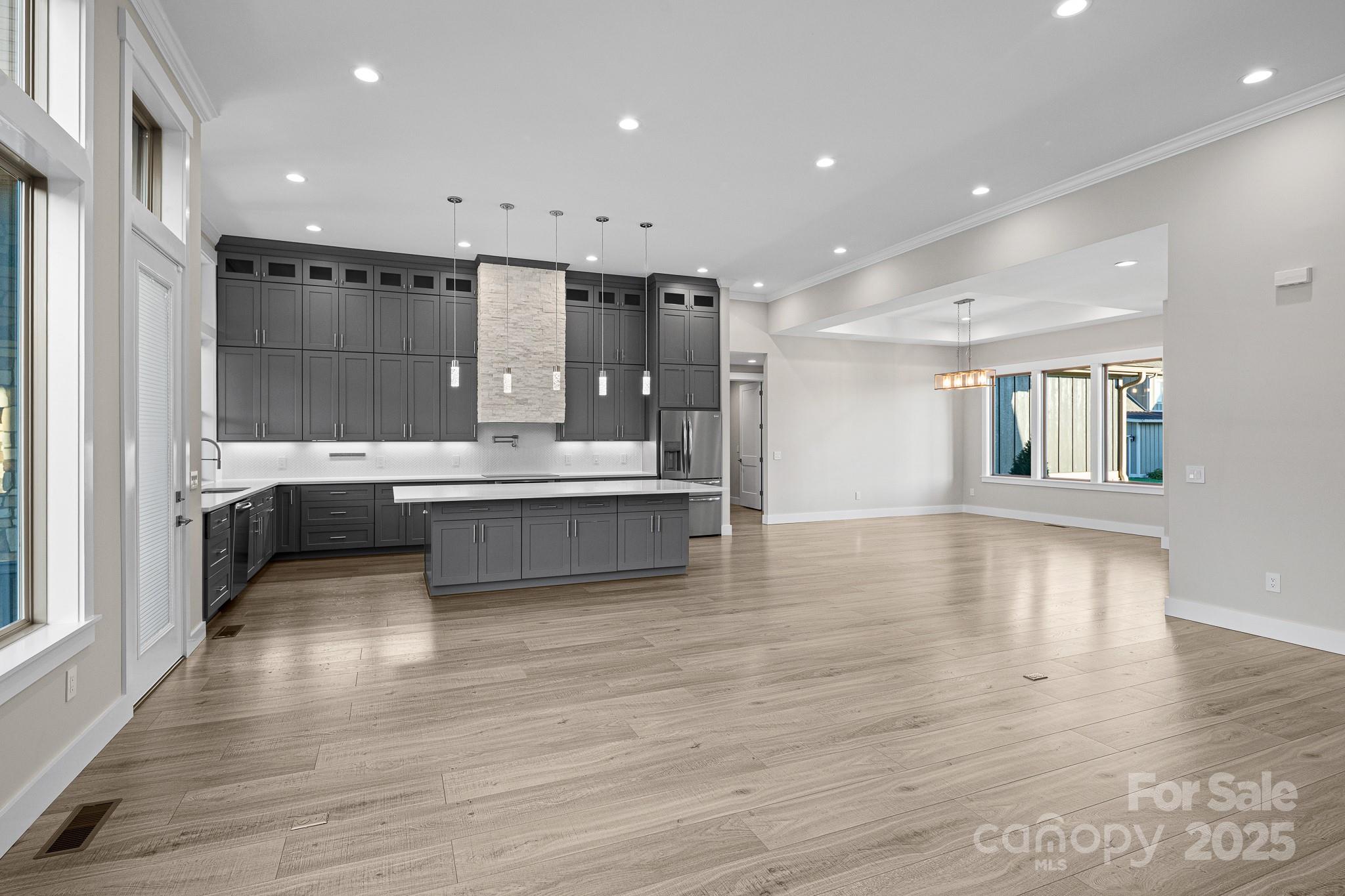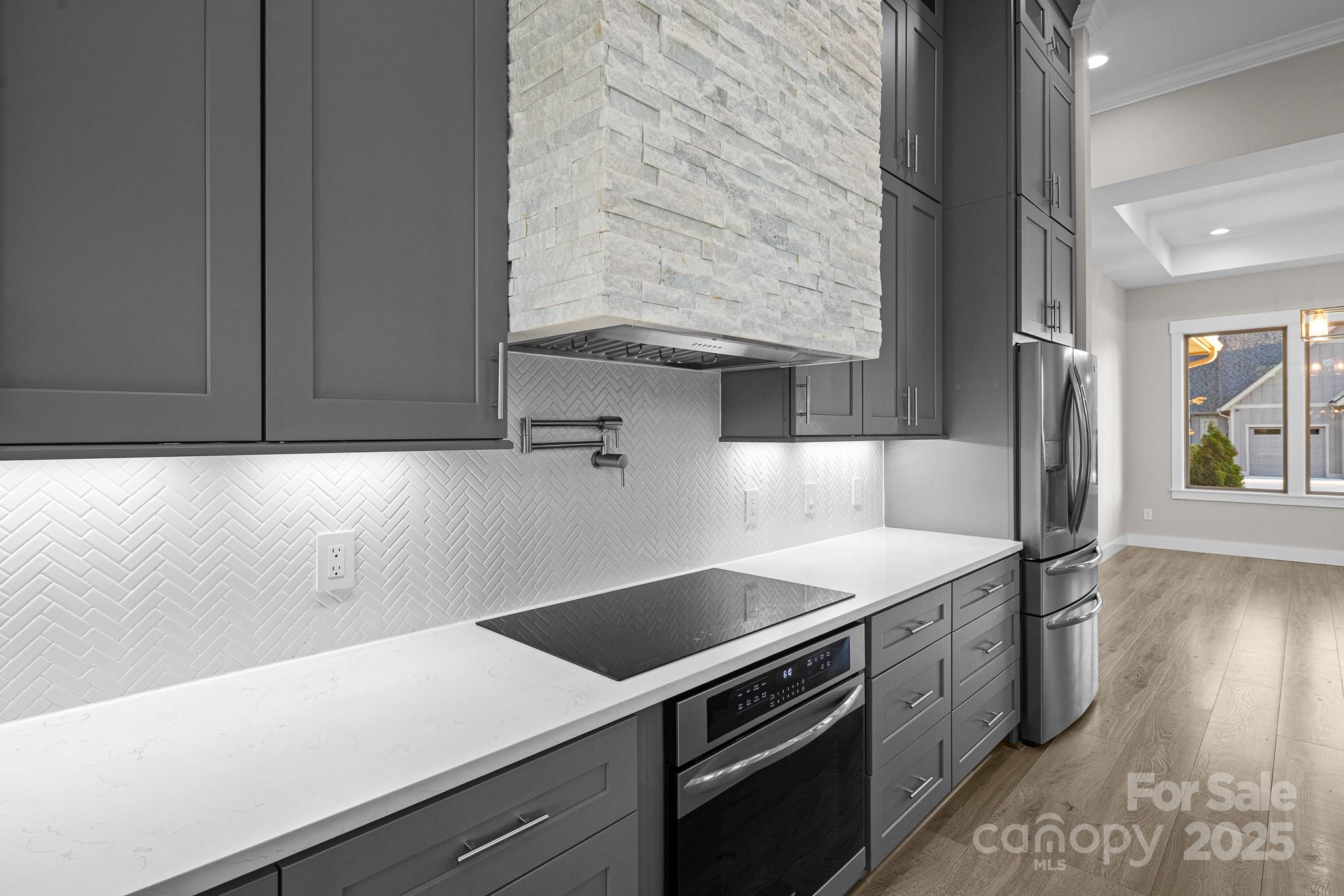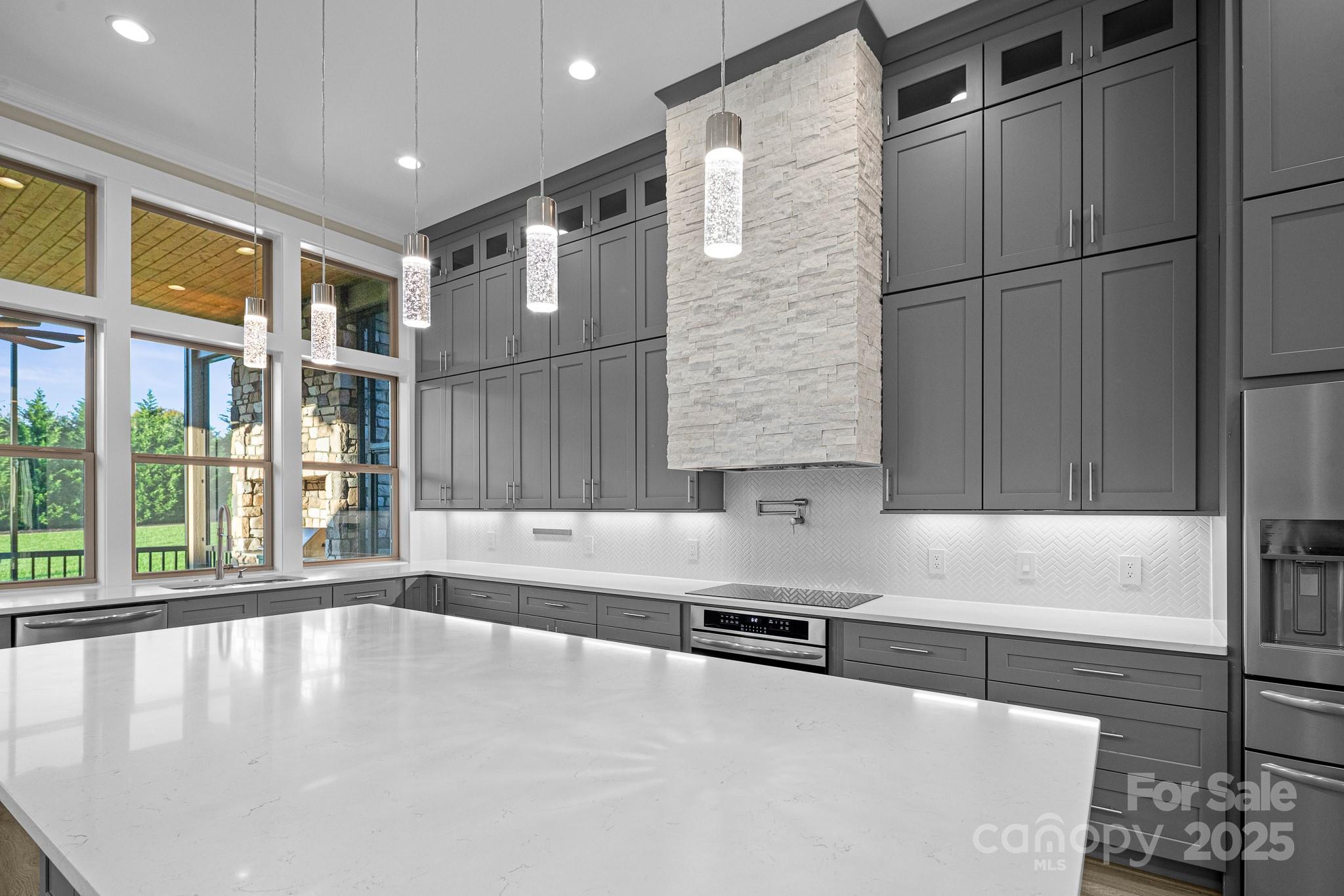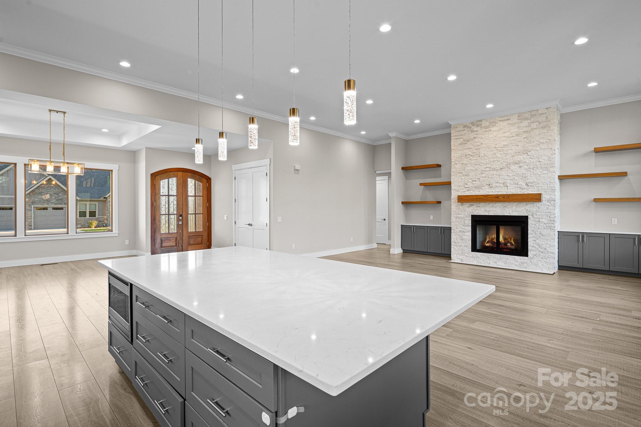 Don't miss out on a chance to own in this sought-after community! This captivating home with 4-bedroom, 2.5- bath 3 car garage residence in this exclusive neighborhood. Boasting a perfect blend of modern comfort and classic charm, this home offers a unique opportunity for buyers. The home is nestled in a gated community of Mills River Crossing. The subdivision provides the perfect foundation to create a polished life filled with comfort and convenience. Mills River Crossing prioritizes its residents and maintains a standard of excellence. Enjoy one-level living with high ceilings up to 12 FT high, with an open concept floor plan. The home also features a built out marble ledger floor to ceiling fireplace in the living room, and a stone grilling station on the rear deck, High-end Quartz countertops, a pantry, custom cabinetry, stainless steel "energy star" appliances, large walk-in closet with custom built-ins, high speed fiber optics, encapsulated crawl space with a dehumidifier, R-50 insulation, solid core doors, sound insulation in the walls, pot filler, 10' x 10' huge kitchen island, and a tankless water heater. Step outside into a big back yard with privacy trees and a fire fit area perfect for gathering friends or family. Conveniently located - just minutes from the Pisgah National Forest, airport, shopping, and eateries.