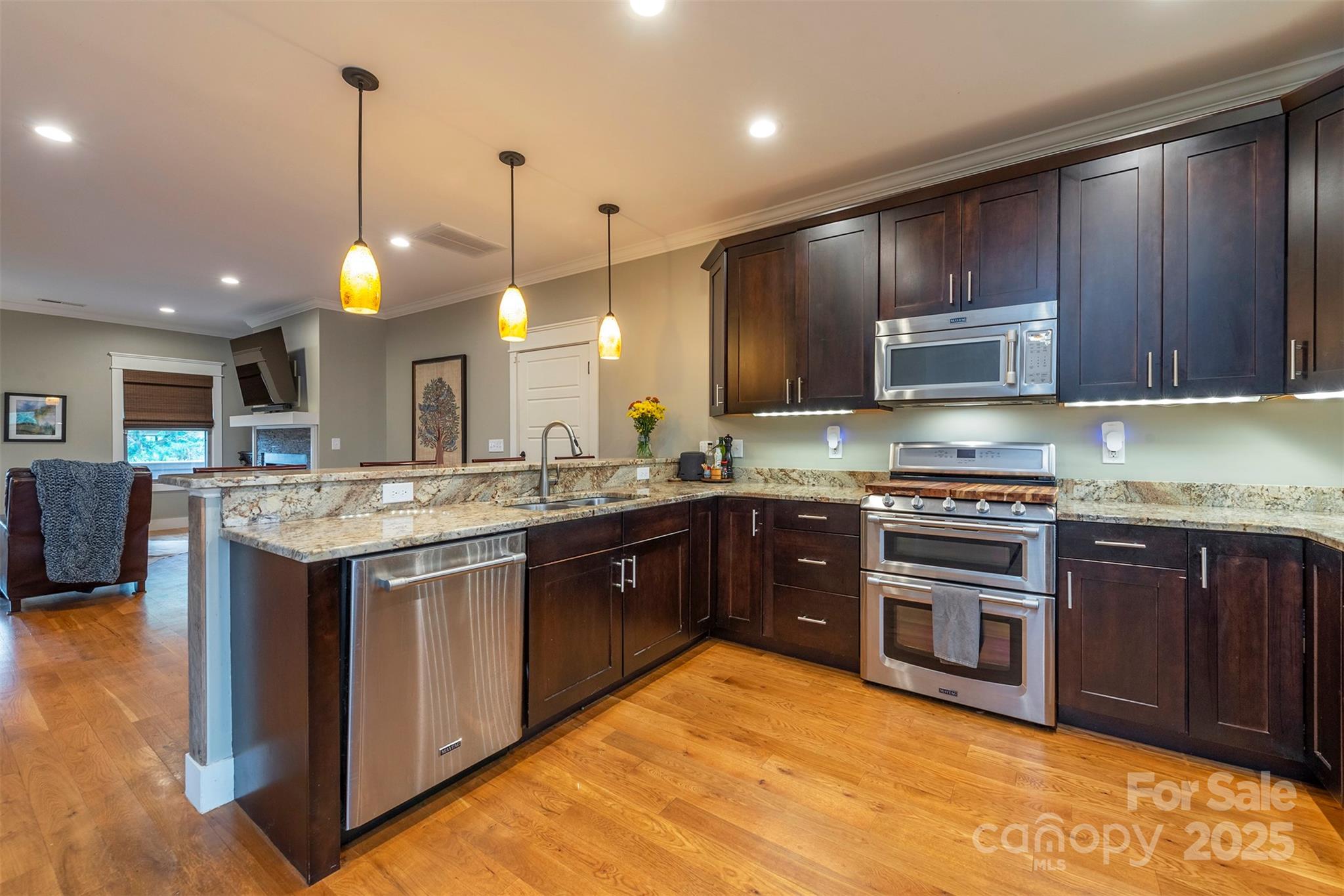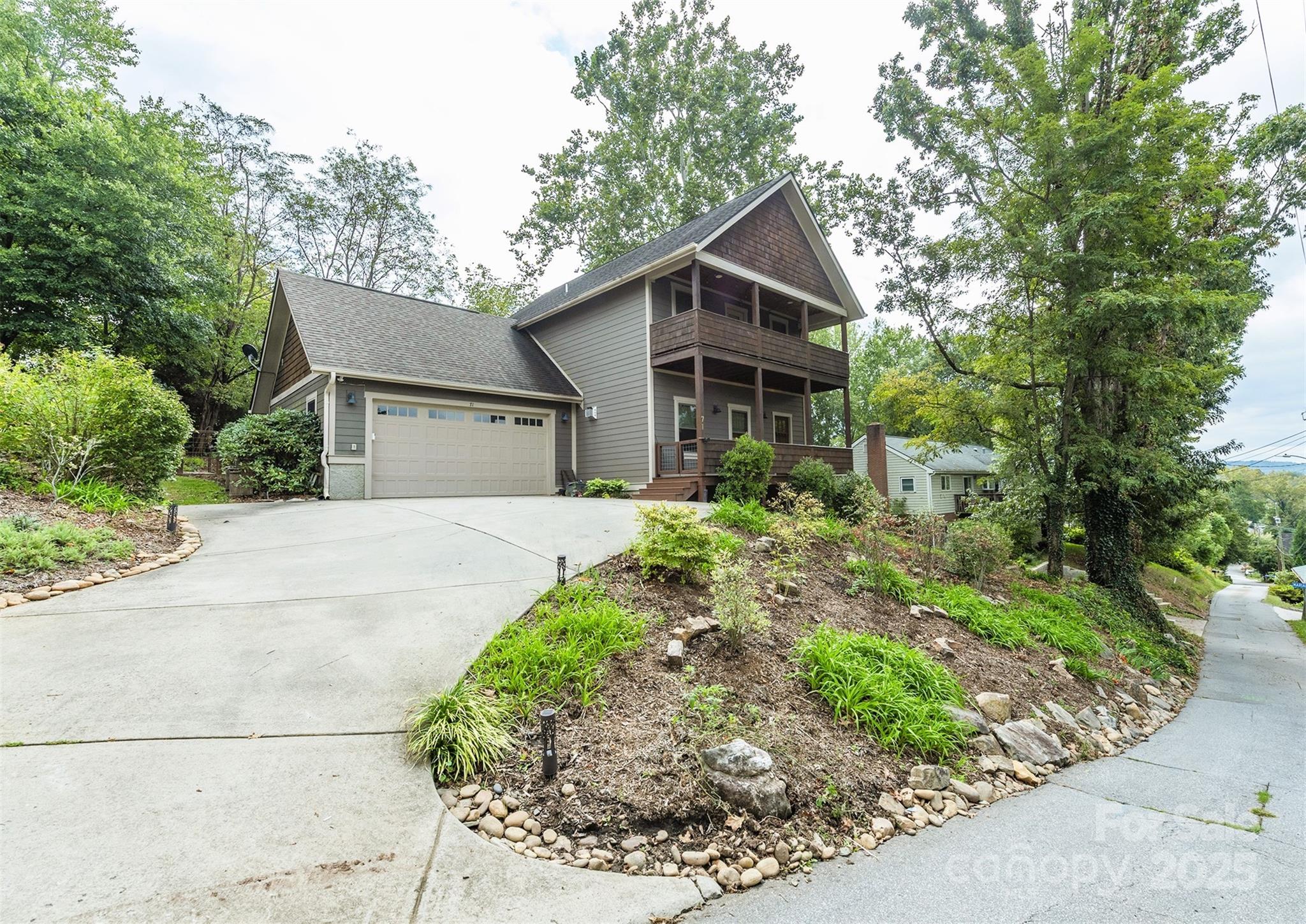 This is the jewel you've been waiting for! Don't let the zip code fool you. This charming home is in the heart of Asheville's historic Kenilworth community, an enchanting neighborhood known for its proximity to downtown Asheville. Step inside to thoughtful craftsmanship and comfortable living. A modern gas fireplace, perfect for cozy evenings, will keep you warm. The entire living area showcases hardwood flooring, and the open kitchen features granite countertops, beautiful cabinetry and a walk-in pantry with custom Elfa shelving and "hidden" extra storage. Flow effortlessly from the dining area through French doors to a spacious rear deck, seamlessly connecting indoor and outdoor living spaces. The fenced backyard is wonderfully-landscaped, and with its stone patio, is a perfect retreat for a quiet evening or entertaining. This area blends naturally with the side lawn, ideal for pets or play. Your private sanctuary, back inside, is the primary bedroom suite, featuring a well-appointed ensuite bathroom with copper sinks and gorgeous leathered granite, tiled shower and flooring, and a walk-in closet (also with a custom Elfa design). Enjoy the suite's own covered porch offering long-range mountain and city views. The upstairs also boasts an additional two bedrooms, full bath, and a full-sized stacked washer and dryer. Revel in the convenience of an attached, freshly-painted, two-car garage with tall ceilings. Kenilworth Park with its sports courts and field, walking path, playground and picnic spots is just down the road. Also, 71 McLain is just three homes away from the upscale, contemporary and intimate Beaucatcher Heights where you can delight in a leisurely stroll on its sidewalks. Each October, support the Kenilworth Artists Association's Studio Tour, a celebration of local creativity and neighborhood connection. Living in this desirable location, which perfectly balances an urban lifestyle with a mountain setting, will allow you to easily discover all of Asheville's restaurants, breweries, music venues, and cultural opportunities. Just minutes away, outdoor adventures are at your fingertips. Consider an annual pass to the Biltmore Estate just a couple of miles away. You're sure to love living here!