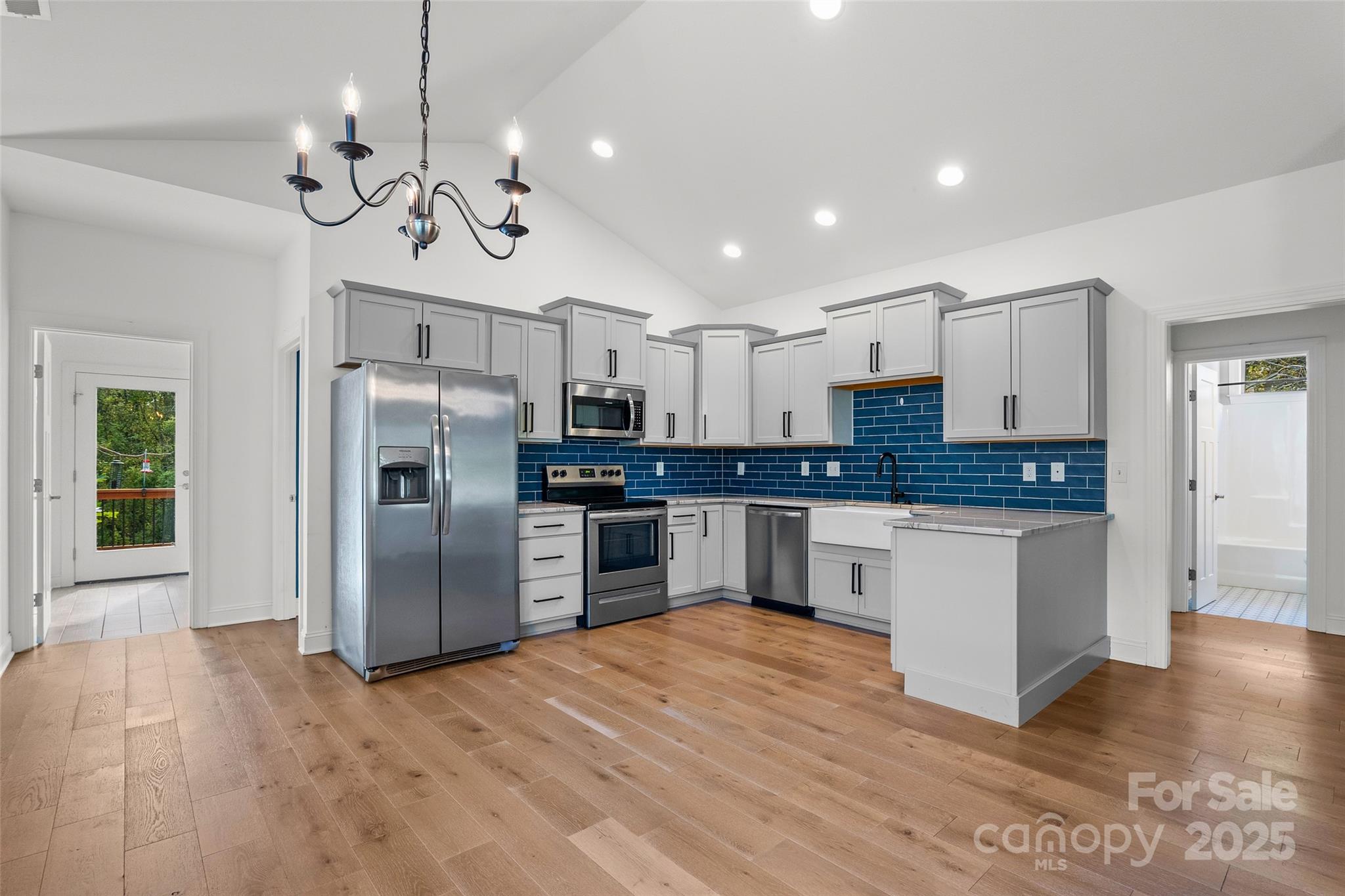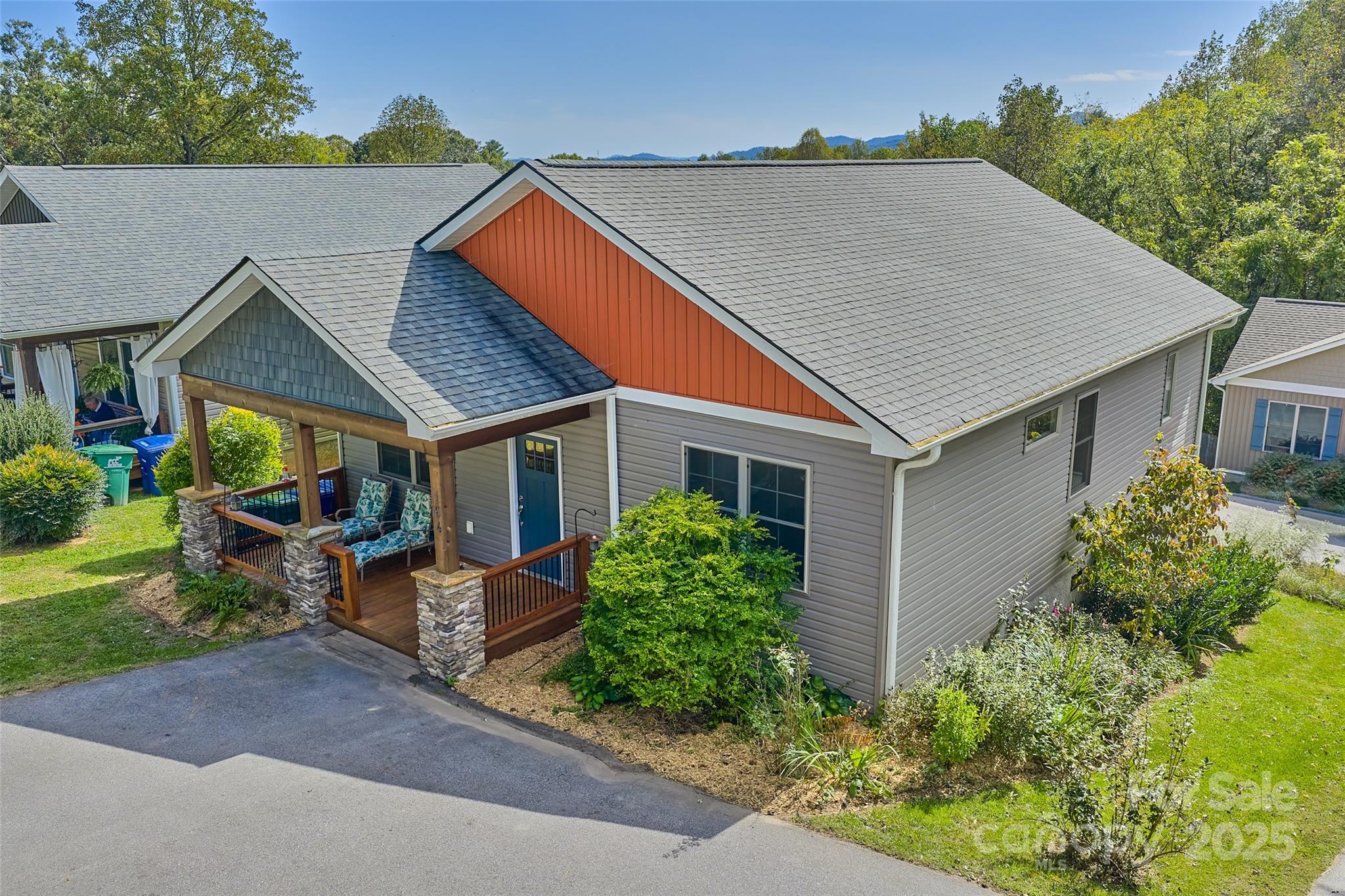 Amazing modern build is turn key & ready for you! Located just blocks outside the city limits this spacious home packs a huge punch at this price point! Beautiful open floorplan with vaulted ceilings gives you flexible living space with the gas fireplace as the centerpiece. Kitchen comes equipped with lots of cabinet space, tile backsplash, granite countertops and apron sink. Step into the large primary with vaulted ceilings and a gorgeous private bath with dual sinks, custom tiled shower and large walk in closet with adjustable shelving system. This house boasts larger than average guest rooms and another tastefully done guest bath off the main living area. You'll find an elevated back deck just through the laundry room for back yard hanging and grilling, or enjoy the large front deck for entertaining. Drive through parking area in the driveway makes it easy to come and go and there's an extra parking pad out back convenient to the EV charger on the back side of the home. Large basement with concrete floor offers lots of flexible storage/workshop/home gym options and has large French doors to accommodate bringing in and out larger items. No city taxes on this home but you're only 2.5 miles to Haywood Road, 5 miles to downtown Asheville and 8.5 miles to the Biltmore House!!