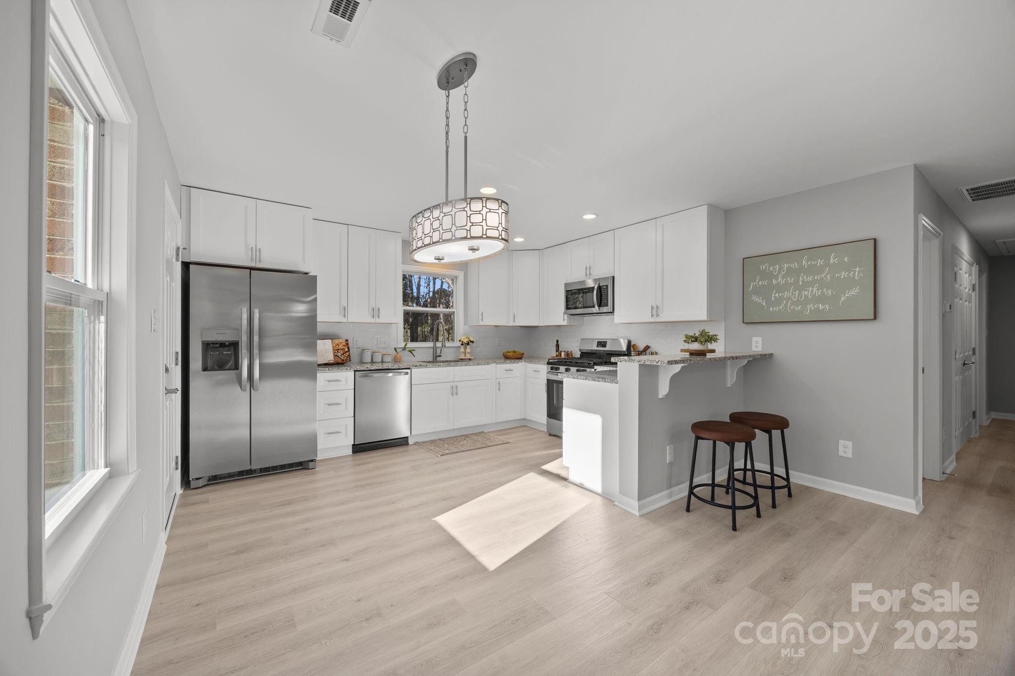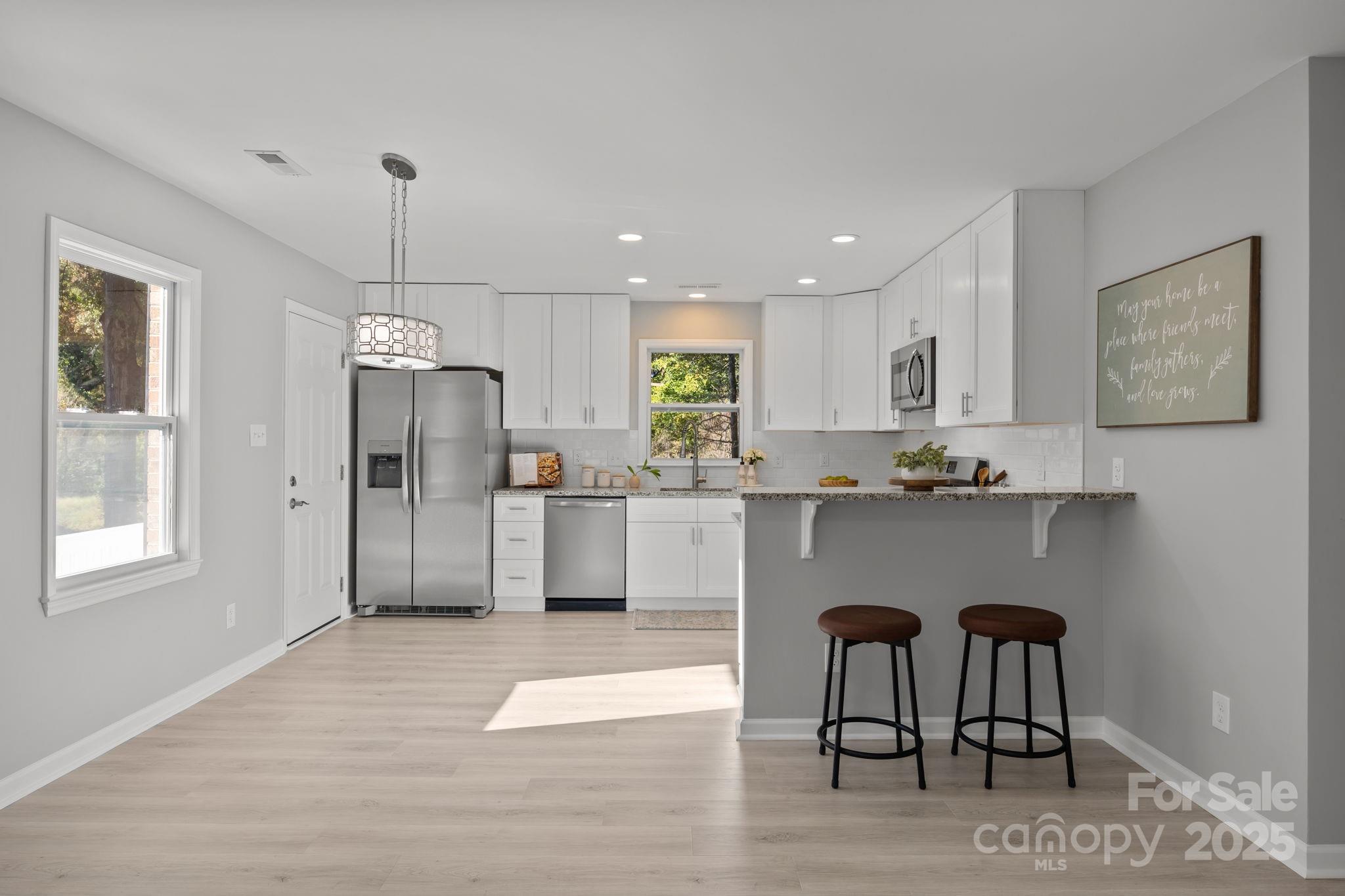***TWO PRIMARY SUITES-MULTIGENERATIONAL LIVING WITH INTERIOR AND EXTERIOR BASEMENT ACCESS*** This fully renovated 5-bedroom, 3.5-bathroom home offers the perfect blend of modern upgrades, flexible living space, and unbeatable location—just 1.5 miles from the heart of Downtown Kannapolis! Inside, you'll find a spacious and open floor plan with neutral finishes throughout, ready for your personal touch. The main level includes a beautifully appointed kitchen with gas range, stylish cabinetry, and modern lighting. A large living area flows seamlessly into the dining space, making it ideal for entertaining. This home features two primary suites—one on the main floor and another in the fully finished basement—perfect for multigenerational living or a spacious guest suite. The basement also includes a flex room, additional bedroom, and recreation area that can be used as a game room, playroom, office or additional living space. No detail was overlooked in this top-to-bottom renovation: new plumbing, electrical, windows, and new insulation and framing in the basement ensure peace of mind and long-term value. The home is also equipped with two new HVAC units, a new roof, a tankless water heater, and a gas dryer hookup for added efficiency. Enjoy the outdoors in your fenced backyard, complete with a large paver patio, grill pad, and covered front porch. Located close to local shops, restaurants, the historic Gem Theatre, Cannon Ballers Stadium, and charming ice cream shops and bakeries, this home offers the best of convenience and community charm. Truly move-in ready—schedule your showing today!
