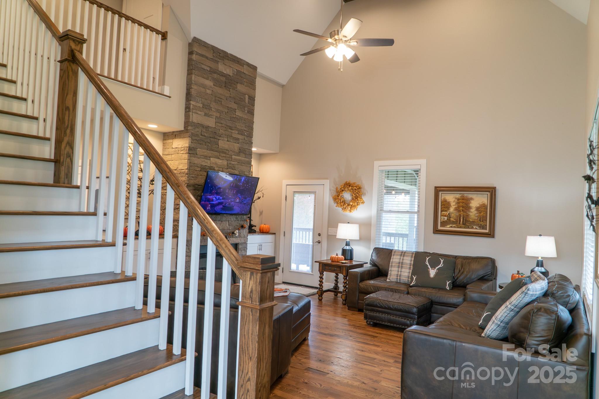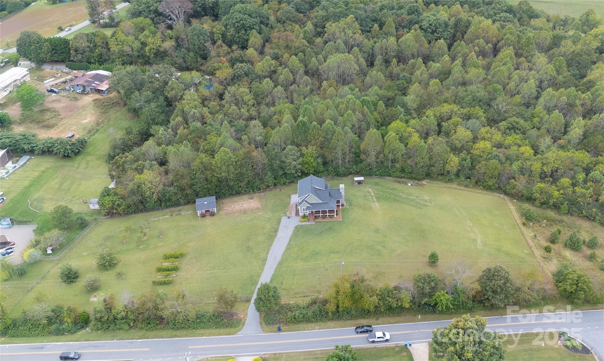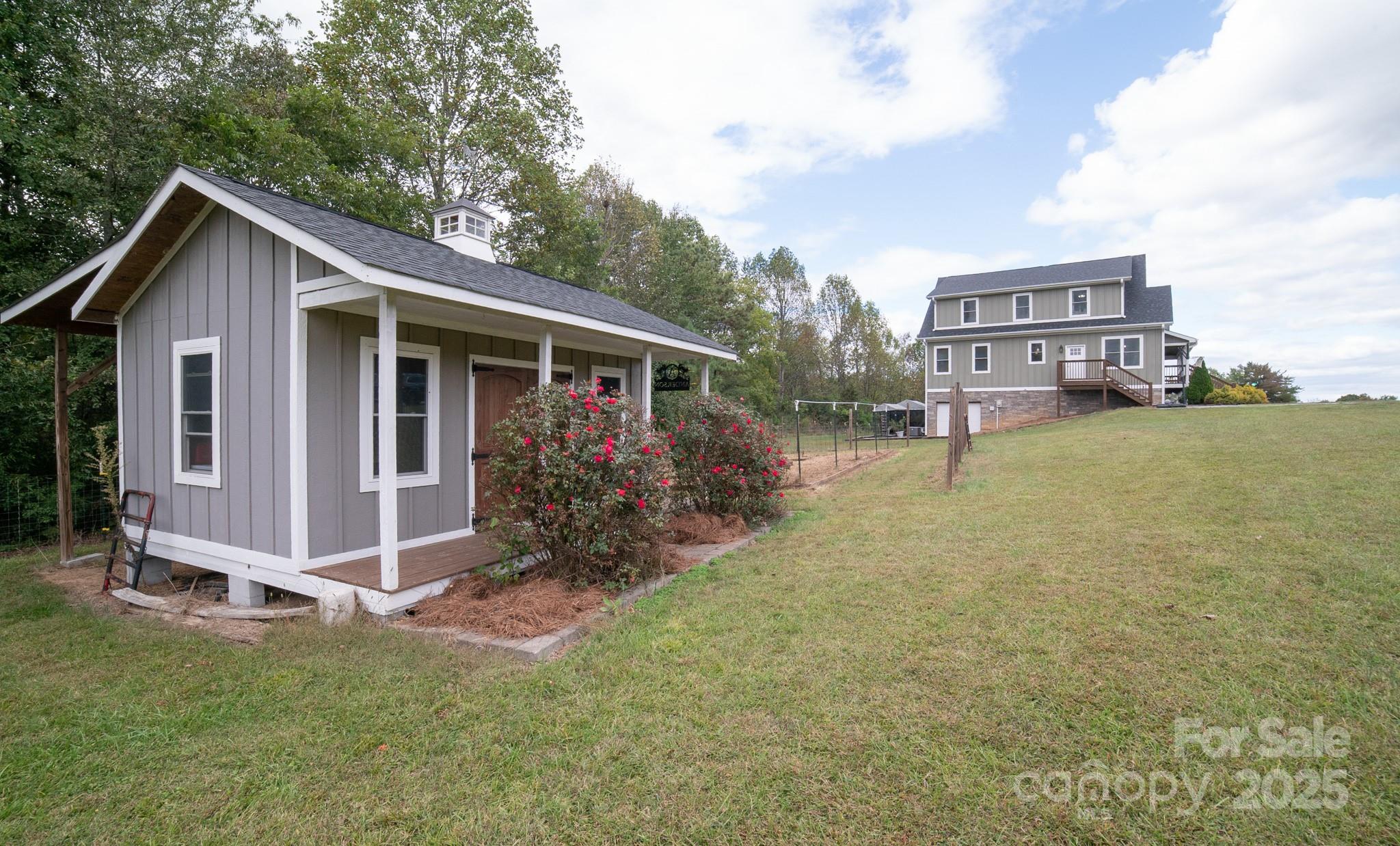 Escape to Your Private Paradise nestled on a sprawling 7.97-acre estate. This beautifully maintained 3-bedroom, 3-bath home offers the perfect blend of comfort, privacy, and natural beauty. Step inside to find a spacious open-concept living area with vaulted ceilings, hardwood floors, and abundant natural light. The gourmet kitchen features granite countertops, and stainless steel appliances—ideal for entertaining or quiet family dinners. Each bedroom has en-suite bathrooms, with primary being on the main floor. Plenty of room in basement including a game room, work room and walk out to back yard. Outside, enjoy panoramic views from your wrap around porch, with beautiful outdoor fireplace which is double sided to have a great outdoor fire. Half of the property is fenced with garden shed, and wood shed, garden with small orchard of peach, cherry, apple, pear and chestnut trees. Blueberries, blackberries and 5 different varieties of muscadine grapes. The other half of property is mature trees for plenty of privacy. The possibilities are endless to explore and enjoy a simply peaceful escape from city life.