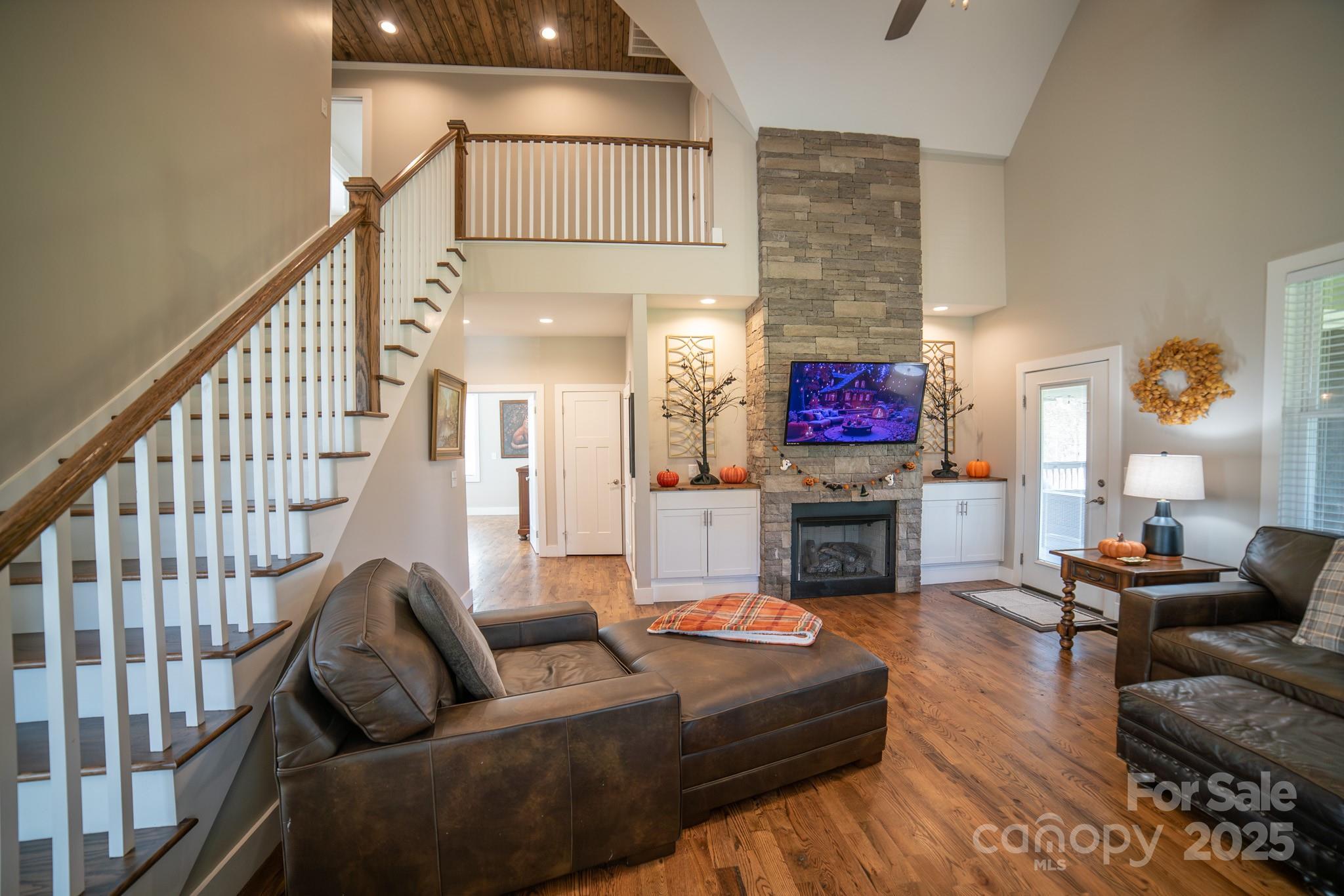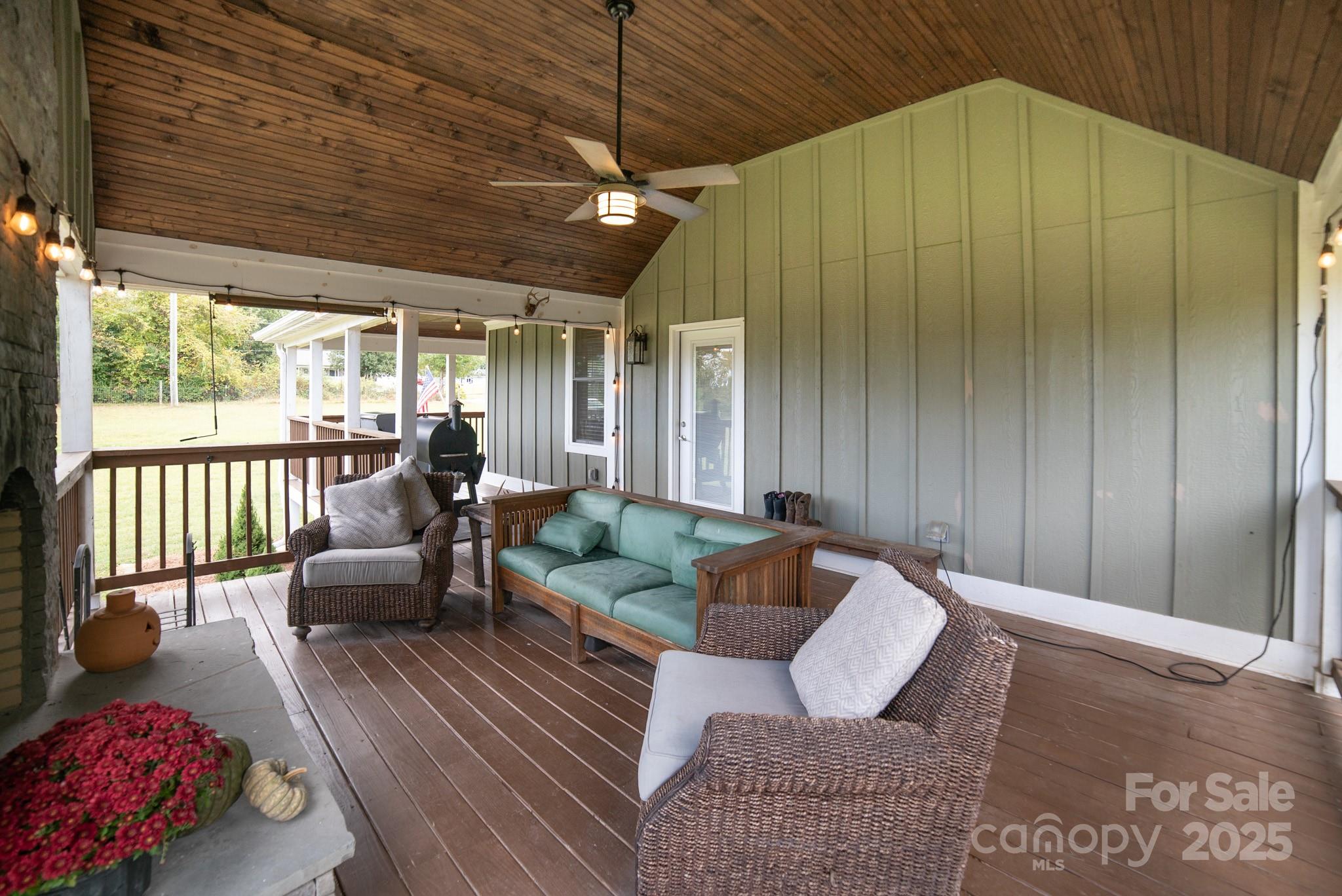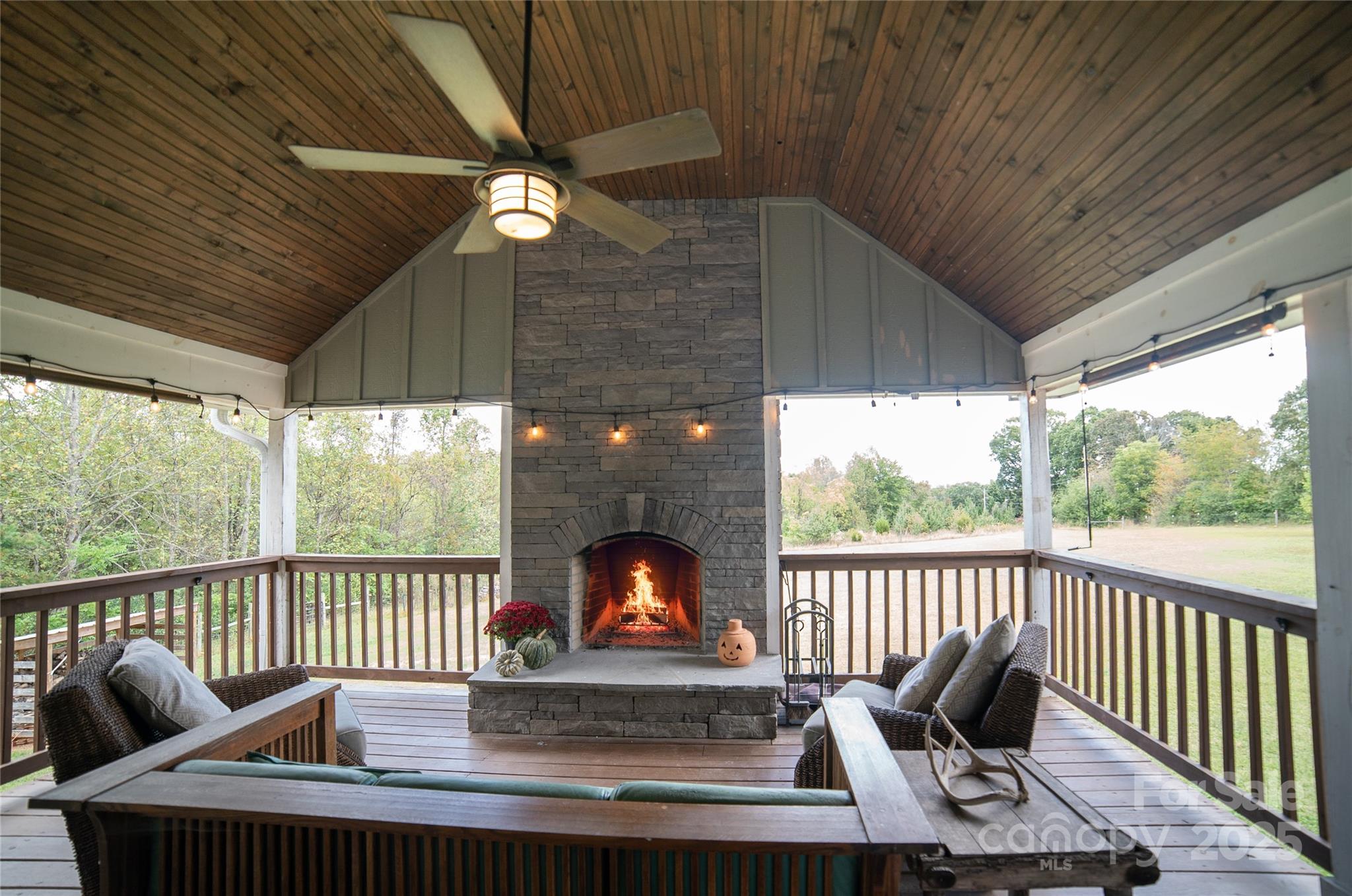 Escape to Your Private Paradise nestled on a sprawling 7.97-acre estate. This beautifully maintained 3-bedroom, 3-bath home offers the perfect blend of comfort, privacy, and natural beauty. Step inside to find a spacious open-concept living area with vaulted ceilings, hardwood floors, and abundant natural light. The gourmet kitchen features granite countertops, and stainless steel appliances—ideal for entertaining or quiet family dinners. Each bedroom has en-suite bathrooms, with primary being on the main floor. Plenty of room in basement including a game room, work room and walk out to back yard. Outside, enjoy panoramic views from your wrap around porch, with beautiful outdoor fireplace which is double sided to have a great outdoor fire. Half of the property is fenced with garden shed, and wood shed, garden with small orchard of peach, cherry, apple, pear and chestnut trees. Blueberries, blackberries and 5 different varieties of muscadine grapes. The other half of property is mature trees for plenty of privacy. The possibilities are endless to explore and enjoy a simply peaceful escape from city life.