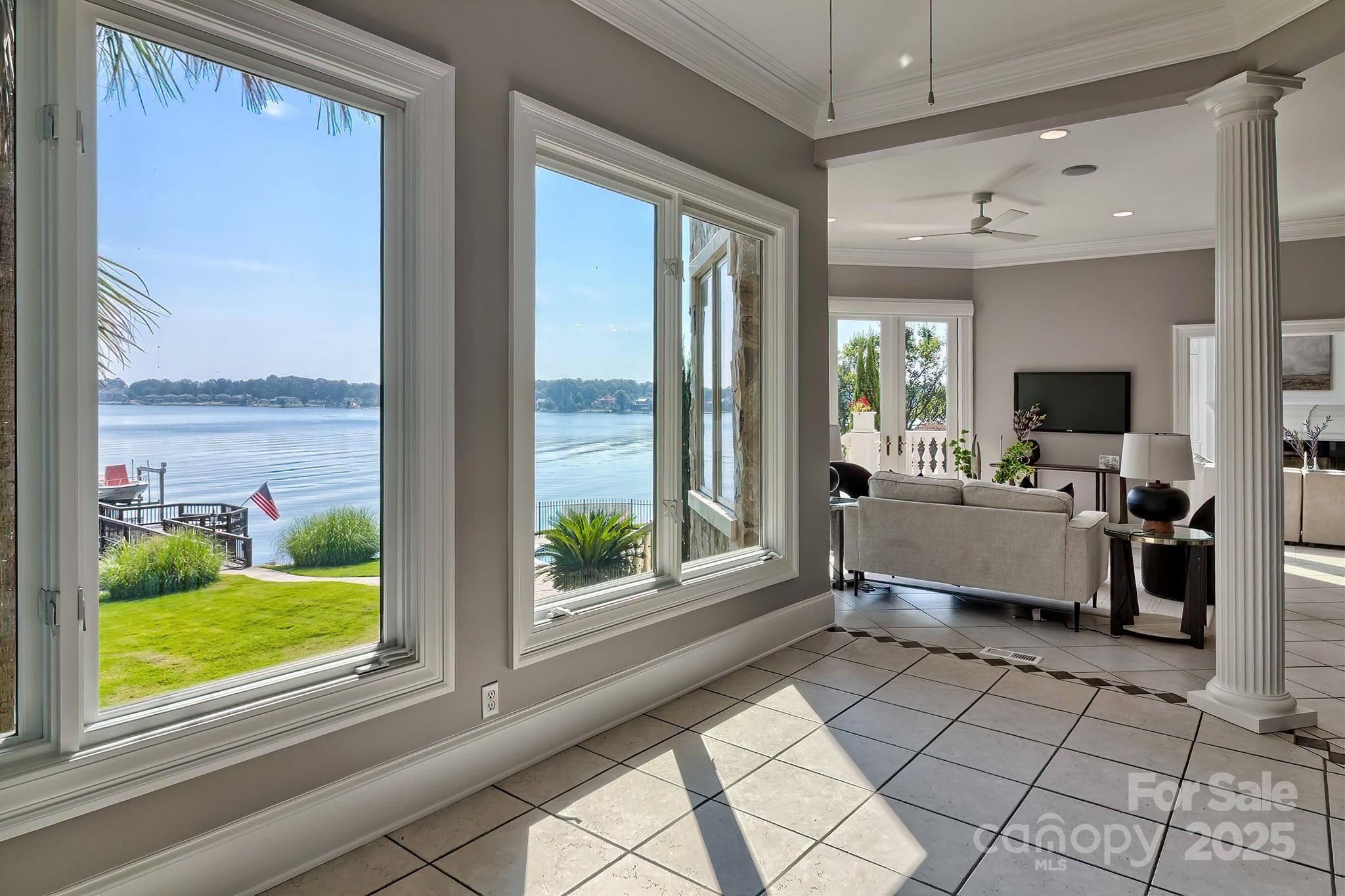 Perched on the most coveted lot in the prestigious gated community of Spence Plantation, this one-of-a-kind waterfront estate offers a lifestyle of unrivaled privacy, exclusivity, and luxury. Constructed entirely of premium natural stone and spanning over 6,700 sq ft across 3.5 meticulously designed levels, this architectural masterpiece commands attention with panoramic, unobstructed lake views from every room and over a MILLION DOLLARS in upgrades. Your private resort awaits; Every day feels like an opulent vacation—set on 215 ft of prime shoreline with breathtaking, oceanesque views. Float in the saltwater pool, unwind in the hot tub spa or sauna, or walk out on your updated dock with convenient boat lift, all from the comfort of your own backyard. Tucked at the end of a quiet cul-de-sac, the home is surrounded by lush, mature, professional landscaped grounds that offers unmatched seclusion. A custom brick-laid driveway flanked by majestic live oaks leads to an estate that feels worlds away-yet is just minutes from everything! Inside, 20' soaring ceilings, 12” crown molding, & wall-to-wall water views elevate the elegance. The recently updated gourmet chef’s kitchen features a built-in SubZero fridge, Dacor gas cooktop & double ovens, extensive cabinetry, & a massive walk-in pantry. There is no shortage of cabinetry or countertop space. The luxurious primary suite is a private sanctuary with stunning lake views, French doors opening to the terrace, custom mechanical blackout shades, and a completely remodeled primary en suite featuring dual walk-in closets, dual vanities, custom spa shower, and an oversized jetted soaking tub. Designed for both relaxed living & grand entertaining, the home includes a theater, fitness room, two additional kitchenettes (one on every level), and spacious secondary bedrooms. Every detail has been thoughtfully curated—from renovated baths to abundant storage. This is more than a home- it’s a statement. A sanctuary. A once-in-a-lifetime opportunity to own the most iconic property in the neighborhood, and perhaps on the lake. Come home to the pinnacle of lakefront living. You’ll never want, or need to, leave. Agent related to seller