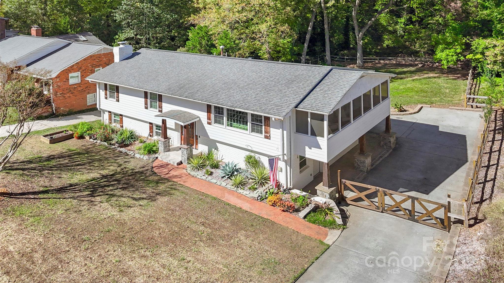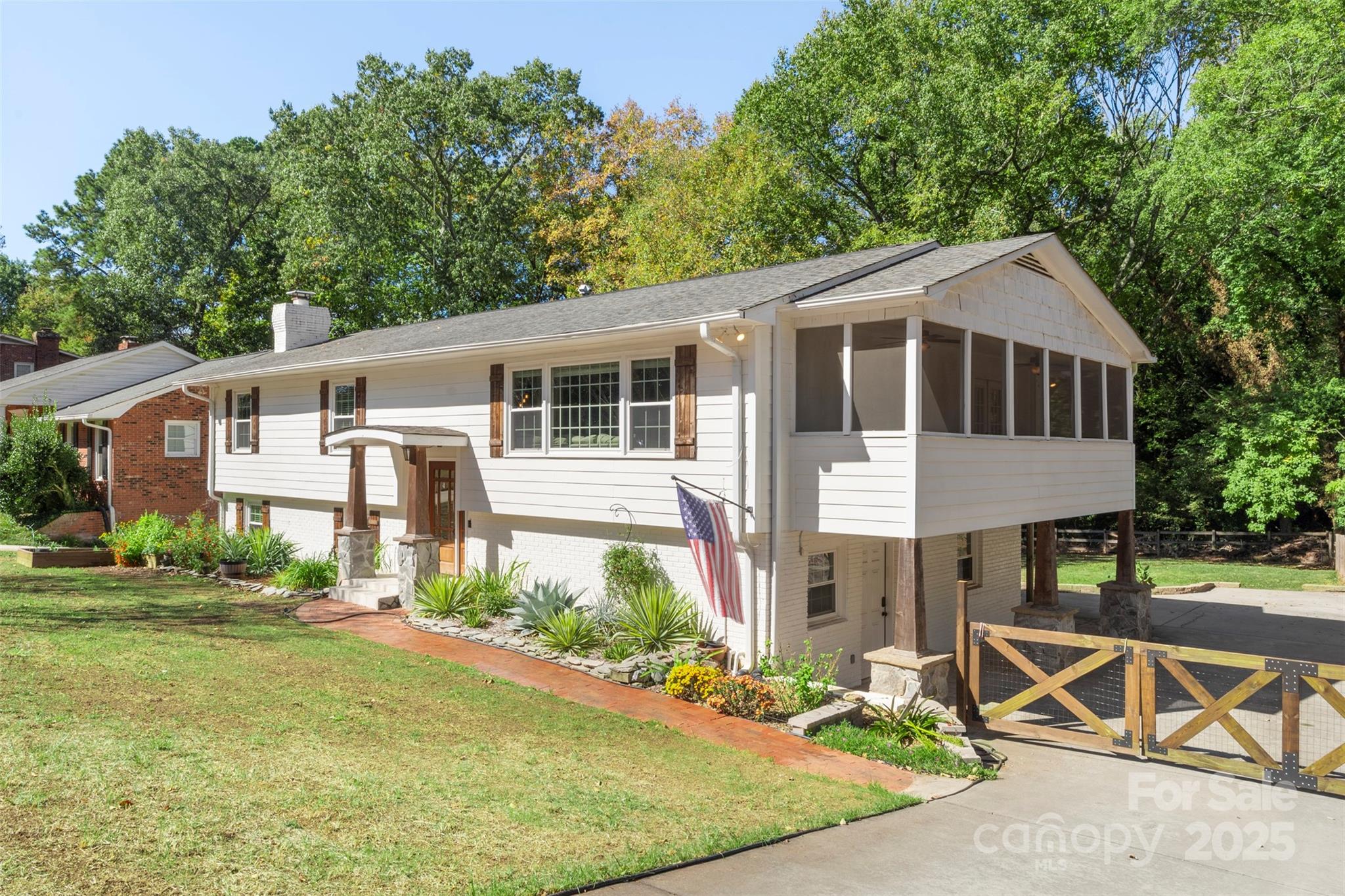 Nestled on 0.34 acres in South Charlotte, this spacious home offers versatility in a serene residential setting with multiple indoor and outdoor spaces to enjoy. The upper level features an open floor plan, connecting the expansive living room to an updated kitchen complete with an oversized island perfect for entertaining. Hardwood floors run throughout the main level which also includes three bedrooms and two full bathrooms. Just off the living room and kitchen is a covered, screened-in side porch, perfect for enjoying morning coffee. The primary suite encompasses an updated walk-in closet featuring a brand new closet system and a walk-in spa like shower. The lower-level functions as a walk out basement and includes two bedrooms, one full bathroom, a storage room, laundry room, bonus room and secondary living area. The backyard site improvements include a covered deck, oversized patio with a firepit and a fully fenced in backyard that offers privacy and space for play, gardening and/or gatherings.