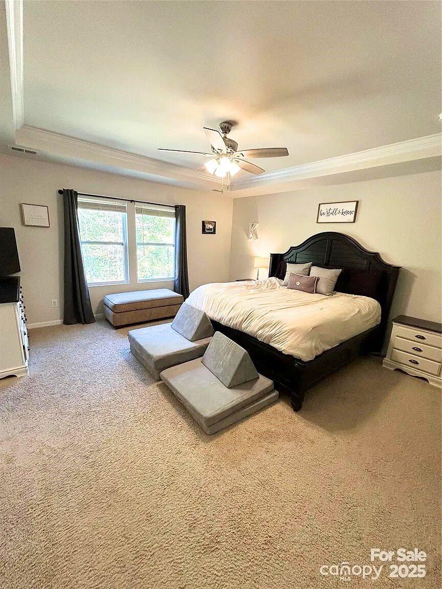 Welcome home! Tucked away w/ privacy on a cul-de-sac street & access to nature trails. Fenced in backyard backs up to woods w/ hot tub spa under large rear covered porch w/ extended patio. Open floor plan provides gorgeous gourmet kitchen w/ huge island breakfast bar granite countertops & smart appliances overlooking family room w/ cozy gas fireplace. Mudroom w/ drop zone & oversized pantry. Huge loft area & in-law suite perfect for guests/multigenerational living. Spacious primary suite w/ tray ceiling chandelier oversized walk-in closets. Crown molding throughout & large secondary bedrooms. Large laundry room with ample storage. Modern light fixtures & updated flooring throughout w/ whole home air purification system. Community features neighborhood pool clubhouse playground & area for sports & planned activities! Zoned for highly sought after school district. Minutes to Bypass & I-485, Uptown Charlotte, Airport & everything you need close by! Schedule your showing today!
