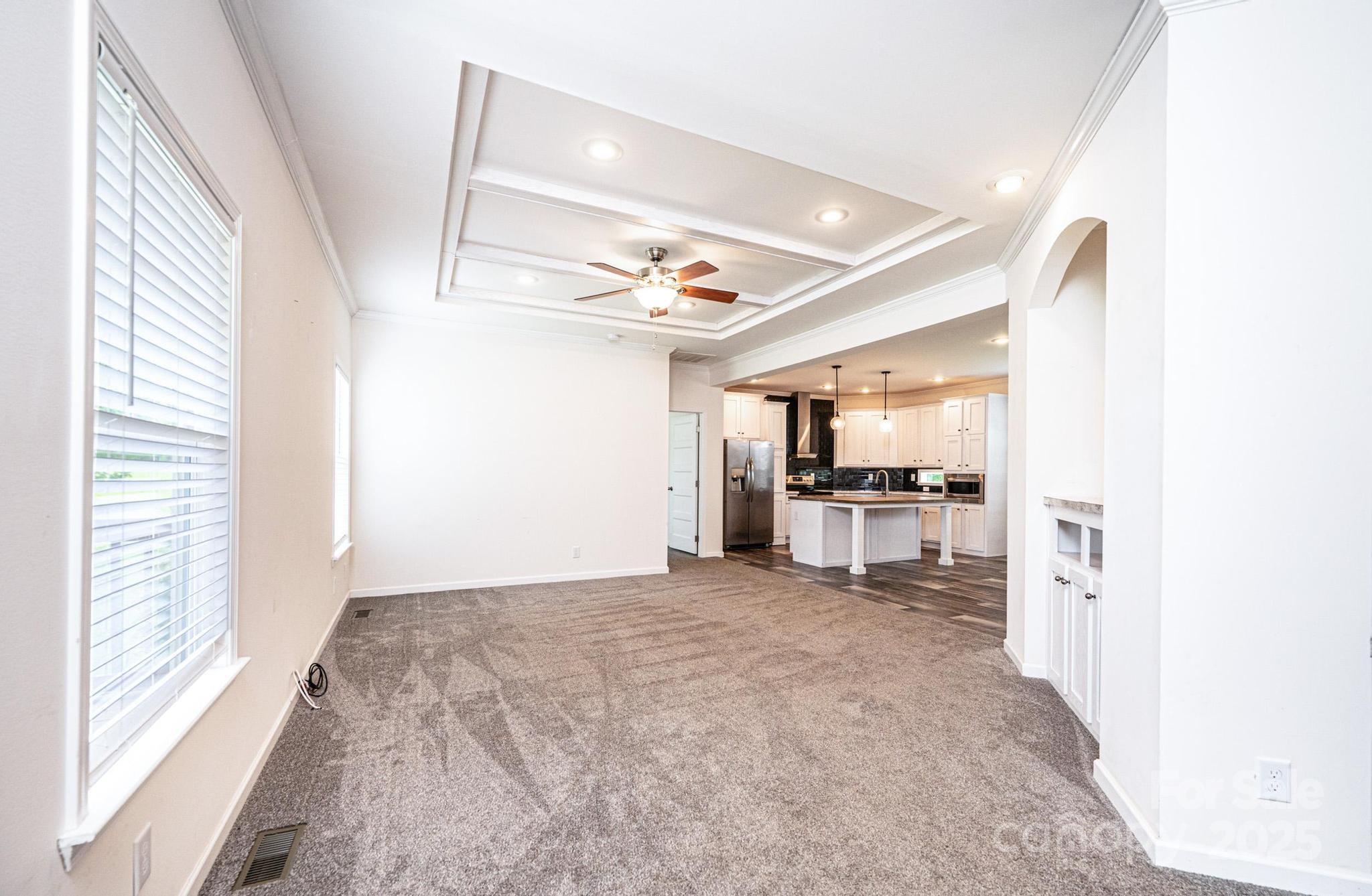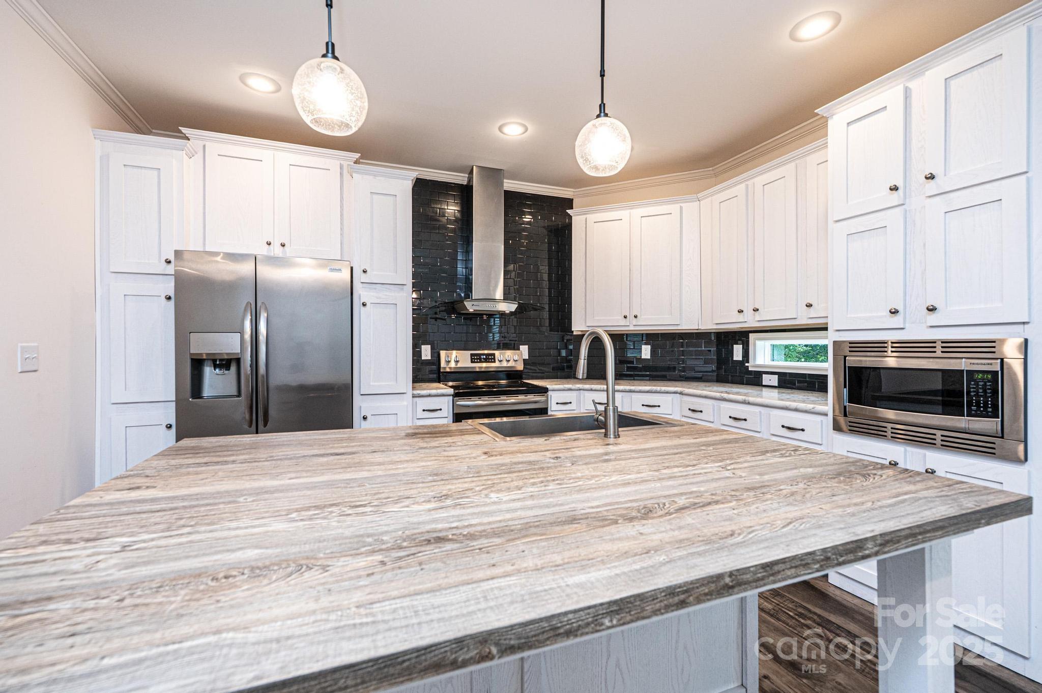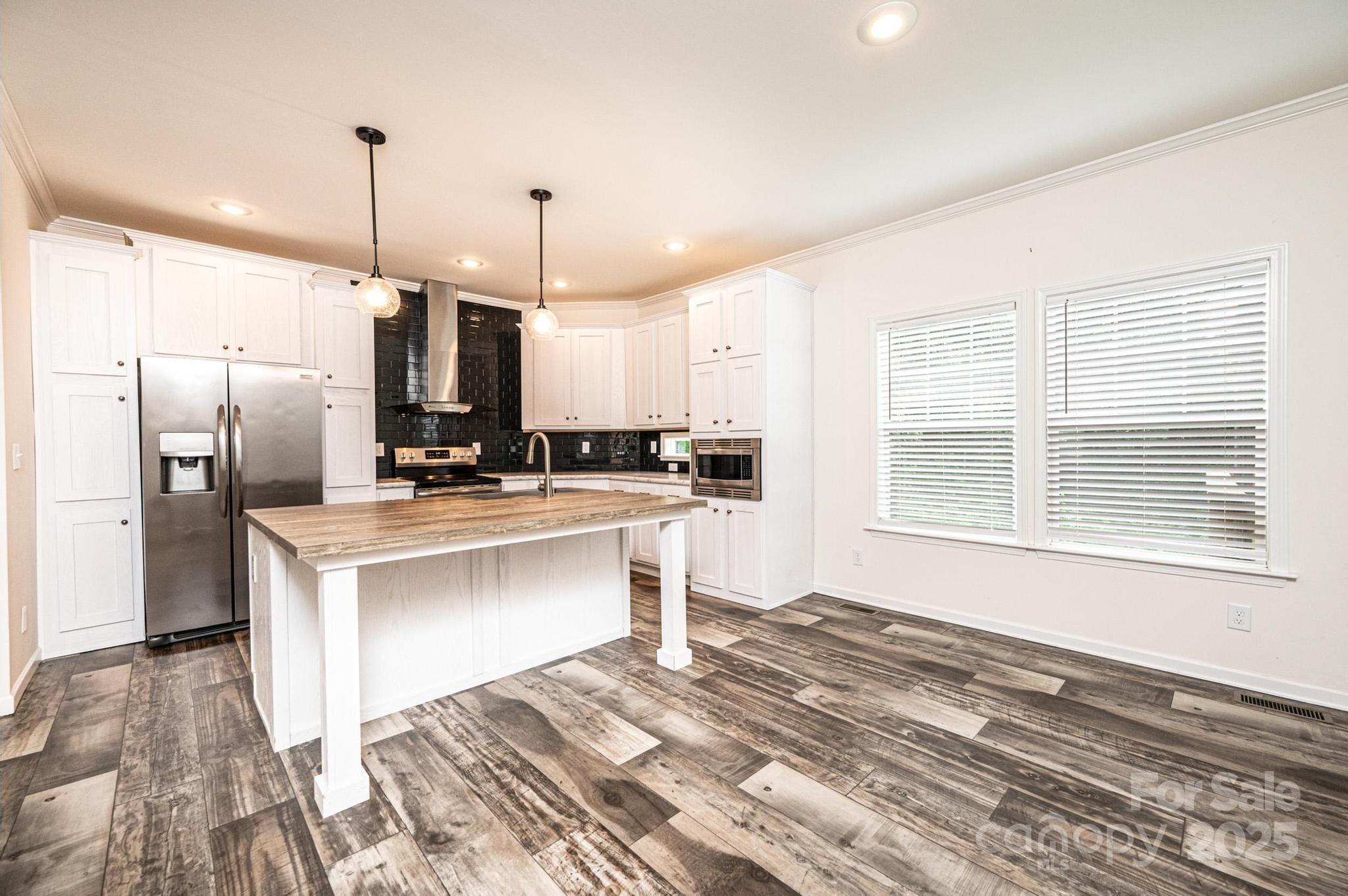 Are you searching for a property that's up to date, move-in ready, & priced under $300K? Look no further! This spacious 3BR/2BA ranch built in 2021 offers 1,560 sq ft of living space on a generous 0.77-acre lot at the end of a quiet dead-end street. You'll appreciate the open-concept layout, featuring a LR w/a stylish coffered ceiling & a built-in entertainment niche, which seamlessly flows into the kitchen & dining area. The beautiful kitchen is equipped w/white cabinets, stainless steel appliances & a large center island w/seating area. A separate laundry room is conveniently located off the kitchen. The split bedroom plan provides a private primary bedroom suite on one side of the house, complete w/a luxurious primary bathroom offering two sink/vanity areas, a large walk-in shower, & a soaking tub. The 2 additional BRs, each w/a walk-in closet, and a full bathroom are on the other side of the house. Outdoor features include a covered front porch, a rear deck, & a storage building. Gravel driveway encroaches some onto the lot to the right of the driveway.