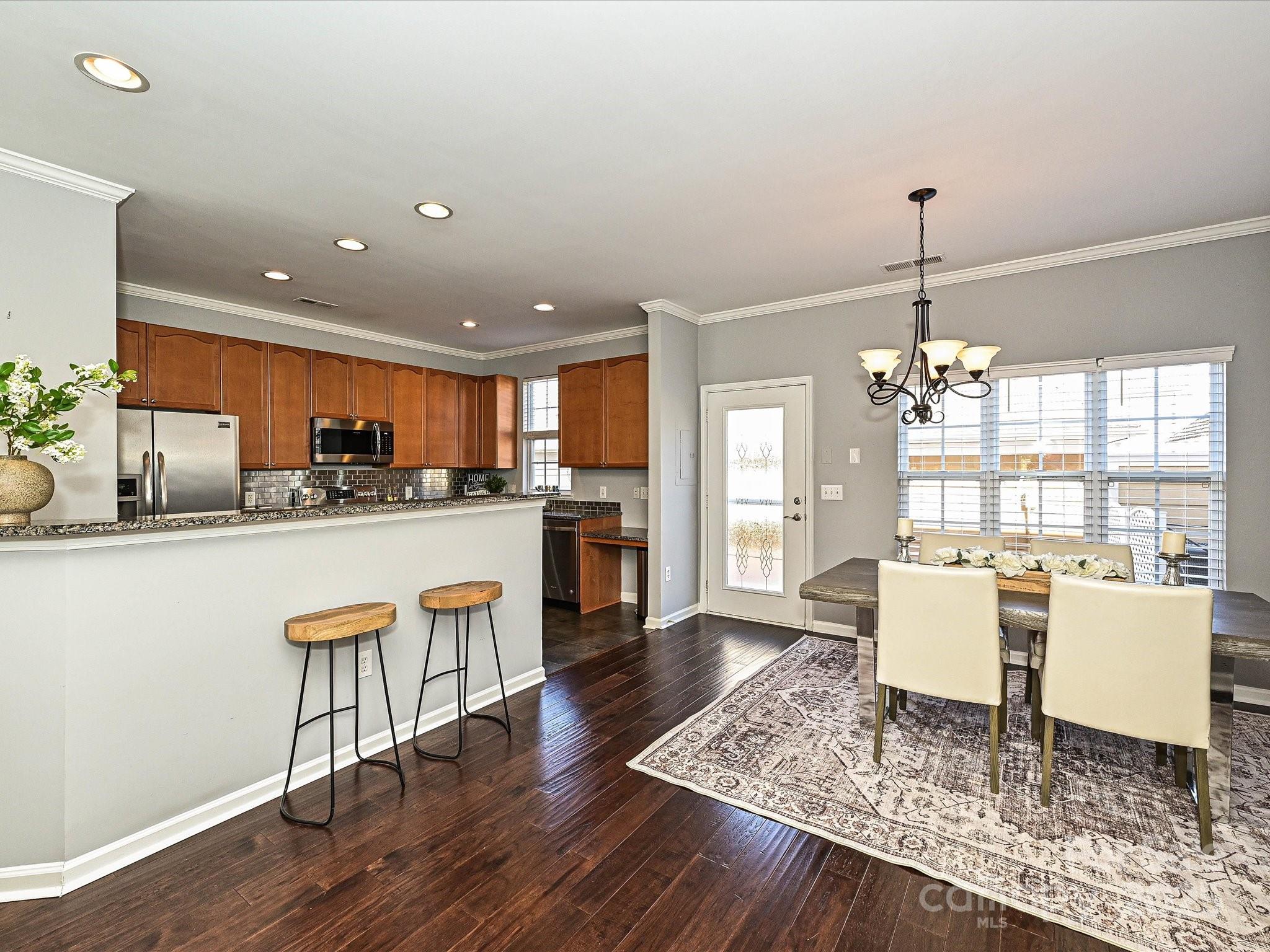 Welcome to The Park at Davidson- a highly desirable community known for its walkable lifestyle, mature green spaces, and proximity to downtown Davidson. This beautifully maintained 3 bedroom, 2.5 bath townhome offers both comfort and convenience, highlighted by a rare two-car garage- a feature not commonly found in this neighborhood. Step inside to an open and inviting layout that’s ideal for everyday living or entertaining. The main level greets you with warm hardwood floors and a bright living area, spacious kitchen with stainless-steel appliances, granite countertops, an extended breakfast bar, plus a built in desk area. The adjoining dining space opens to an oversized private patio, perfect for grilling, gardening, or relaxing outdoors. Upstairs, the primary suite offers a peaceful retreat with a walk-in closet and en-suite bath featuring dual sinks, granite counters, and a step in shower. Two additional bedrooms share a well-appointed hall bath, and the conveniently located laundry room makes daily routines effortless. Outside, a large green space in the front courtyard creates a picturesque view and a true sense of community. Enjoy sidewalks, tree-lined streets, and easy access to the best of Davidson. From your doorstep, you can stroll to local shopping and dining, or take a walk to downtown Davidson. With its well-maintained exterior, expanded patio, rare 2-car garage, sought after schools and easy access to I-77, this property stands out as a rare opportunity to own a true Davidson gem!
