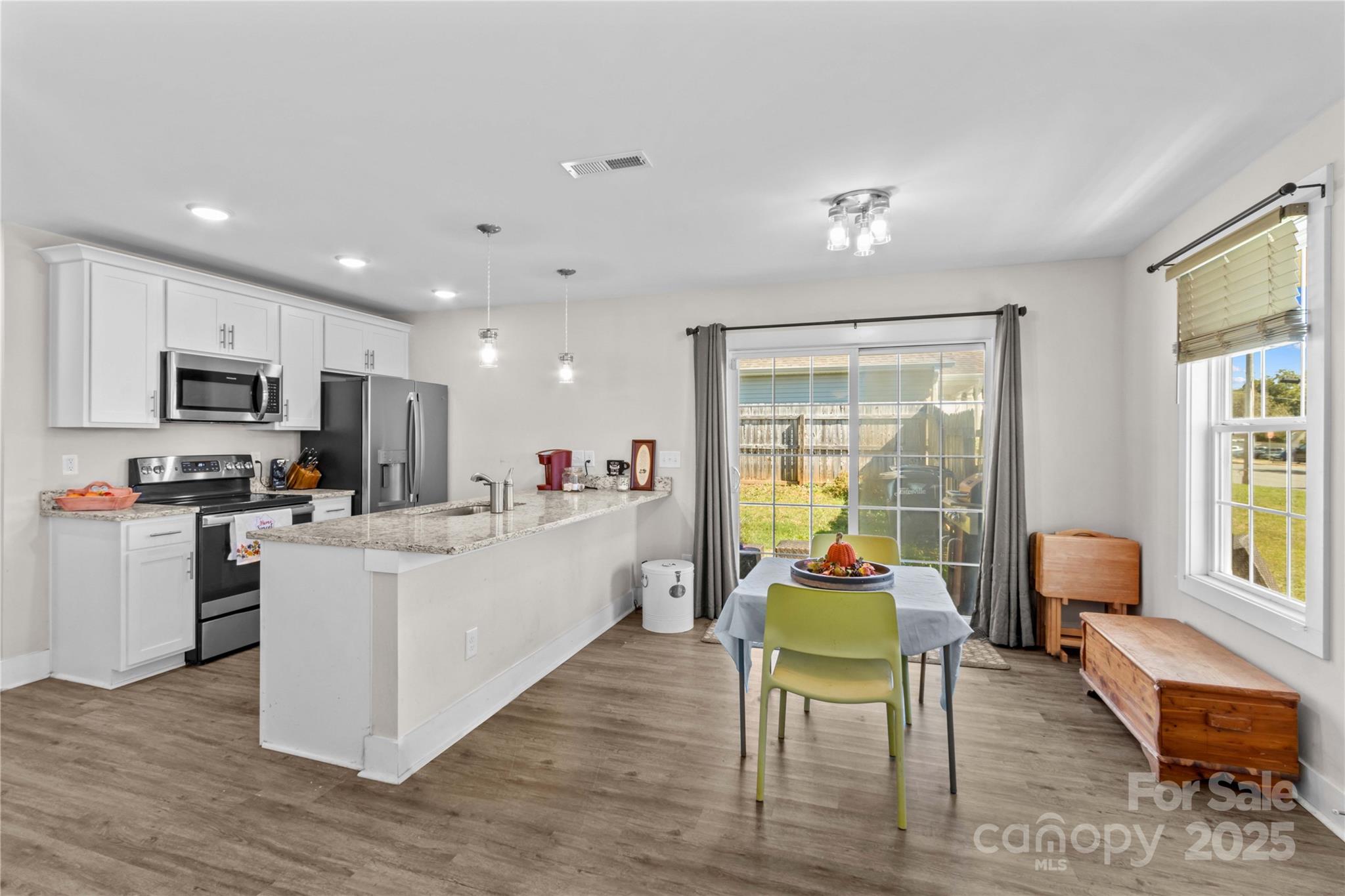 This charming and meticulously cared-for home features 3 bedrooms and 2 full baths, along with a fully fenced side and backyard that’s perfect for pets, play, or outdoor gatherings. Inside, you’ll find open, spacious living areas designed for entertaining. The kitchen shines with granite countertops, recessed lighting, matching appliances, and a cozy eat-in breakfast bar. The primary suite offers comfort and style with granite countertops and a generous closet.Enjoy your private, fenced outdoor space ideal for relaxing evenings or weekend cookouts. Conveniently located near shopping, dining, award-winning schools, medical centers, and I-77 and I-40, this home combines comfort, convenience, and charm all in one!