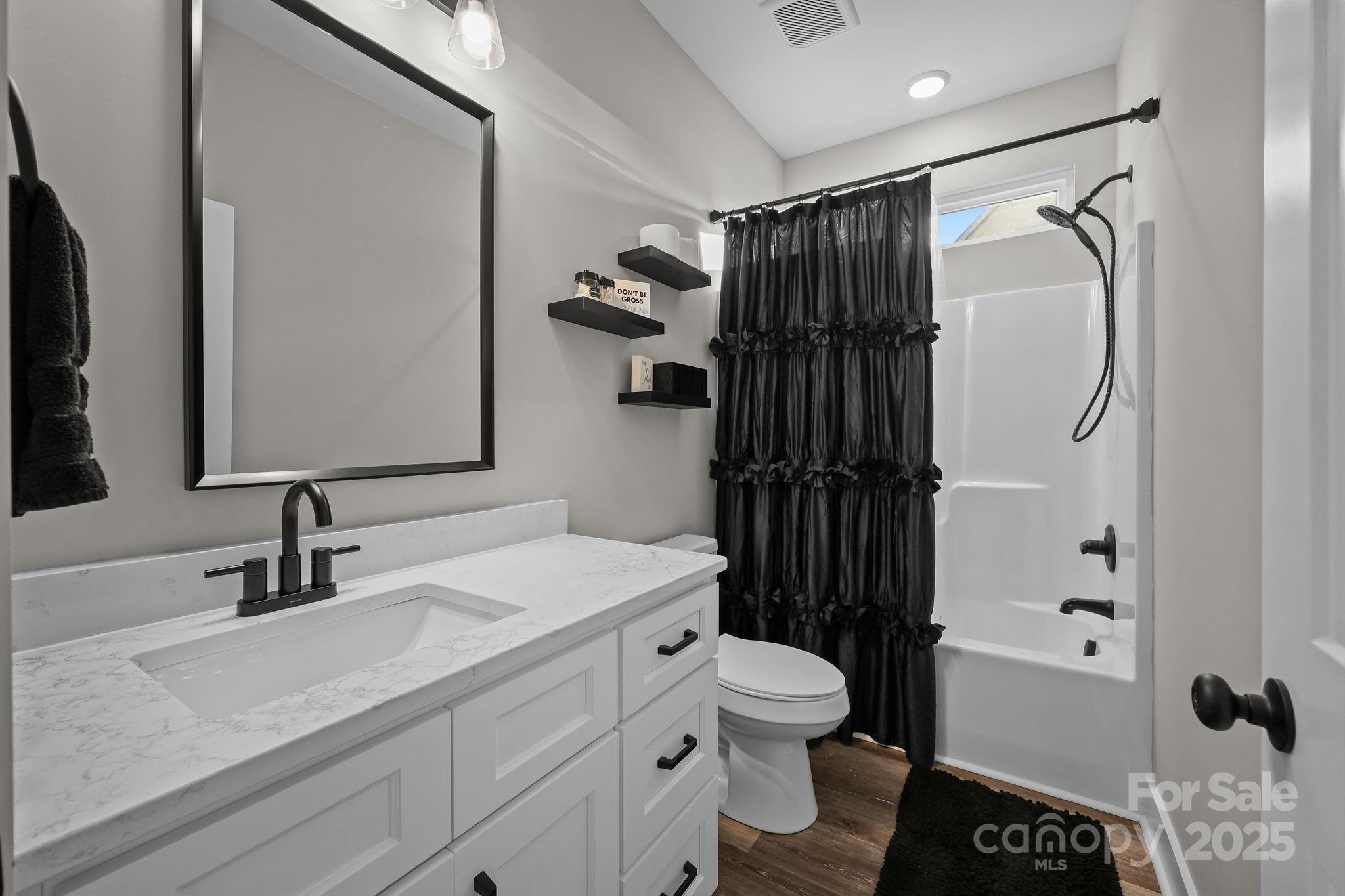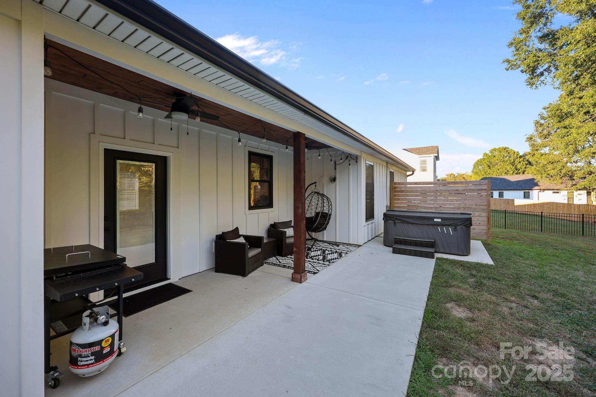 Gorgeous Modern Farmhouse in Hawthorne Commons! Welcome home to this stunning newer ranch-style home in the highly desirable Hawthorne Commons subdivision — a fully built-out community where opportunities like this are rare! The open-concept living area is the heart of the home, featuring a beautiful electric fireplace framed by a custom shiplap accent wall that adds warmth and modern farmhouse character. The kitchen is a showstopper with custom cabinetry, quartz countertops, farmhouse sink, vented hood, island, and classic subway tile backsplash. Luxury vinyl plank flooring flows throughout—no carpet! The spacious primary suite includes an accent wall, relaxing garden tub, quartz double-sink vanity, tile shower, and walk-in closet with upgraded built-ins. Enjoy everyday convenience with a drop zone off the two-car garage and a laundry room complete with cabinetry and a quartz folding counter. Step outside to a covered back porch overlooking the large fenced-in backyard, perfect for relaxing or entertaining. Beautifully designed and full of thoughtful upgrades — come see this one before it’s gone!