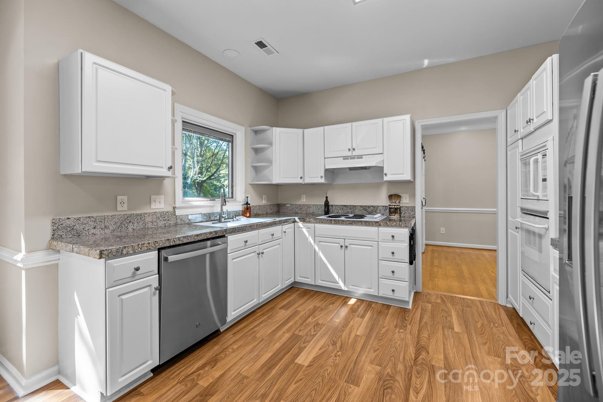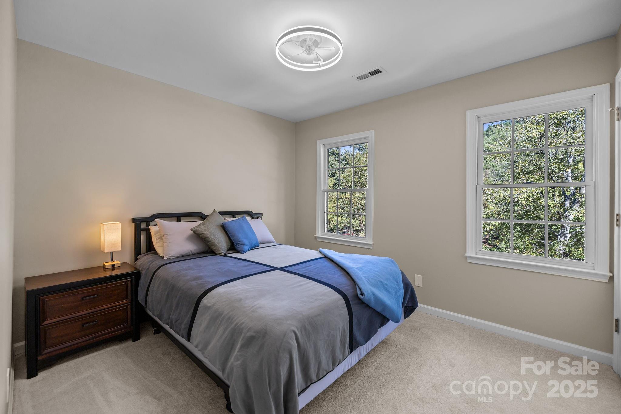 Welcome to this beautifully maintained 4-bedroom, 2.5-bathroom home situated on a generous corner lot in highly sought-after South Charlotte. Just minutes from Uptown, SouthPark, and Ballantyne, this location offers unbeatable access to top shopping, dining, and highly rated schools. Inside, you'll find fresh interior and exterior paint, brand-new carpet, updated flooring, and newly installed light fixtures and ceiling fans, making this home move-in ready. The main level features a functional and inviting layout with a living room, dining room, bright breakfast nook, home office, and a dedicated laundry room. Upstairs, enjoy four spacious bedrooms, including a large primary suite with a walk-in closet. One of the secondary bedrooms is oversized, offering the perfect space for a bonus room, playroom, or flex area to suit your lifestyle. The private backyard offers a peaceful retreat with natural shade from the afternoon sun, ideal for relaxing or entertaining outdoors. In the evening enjoy the beauty of the installed landscape lighting. The attached garage includes tons of extra storage and built-in shelving, providing practical solutions for organization and space. With its flexible layout, thoughtful updates, and prime Charlotte location, this home is a rare opportunity you won’t want to miss.
