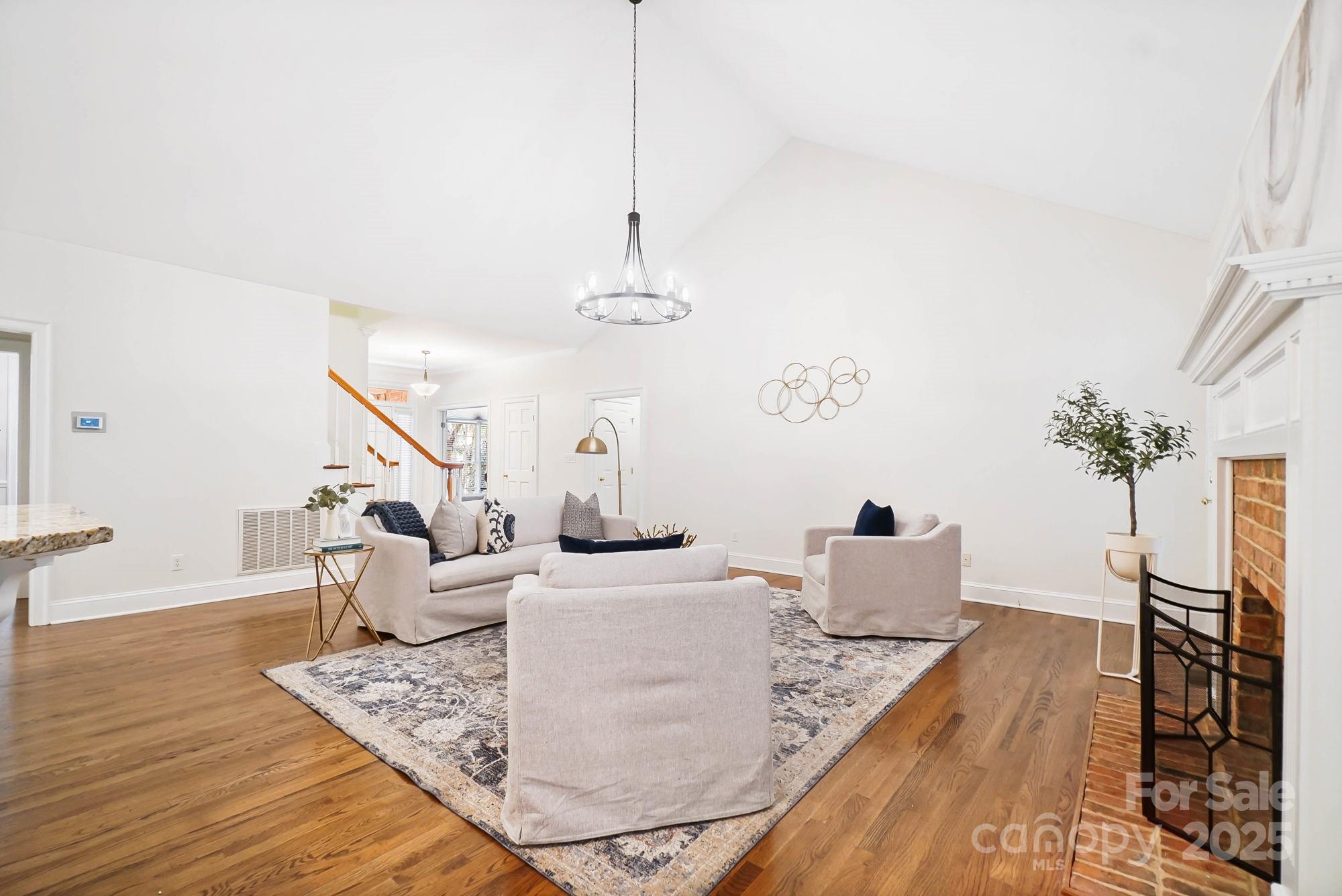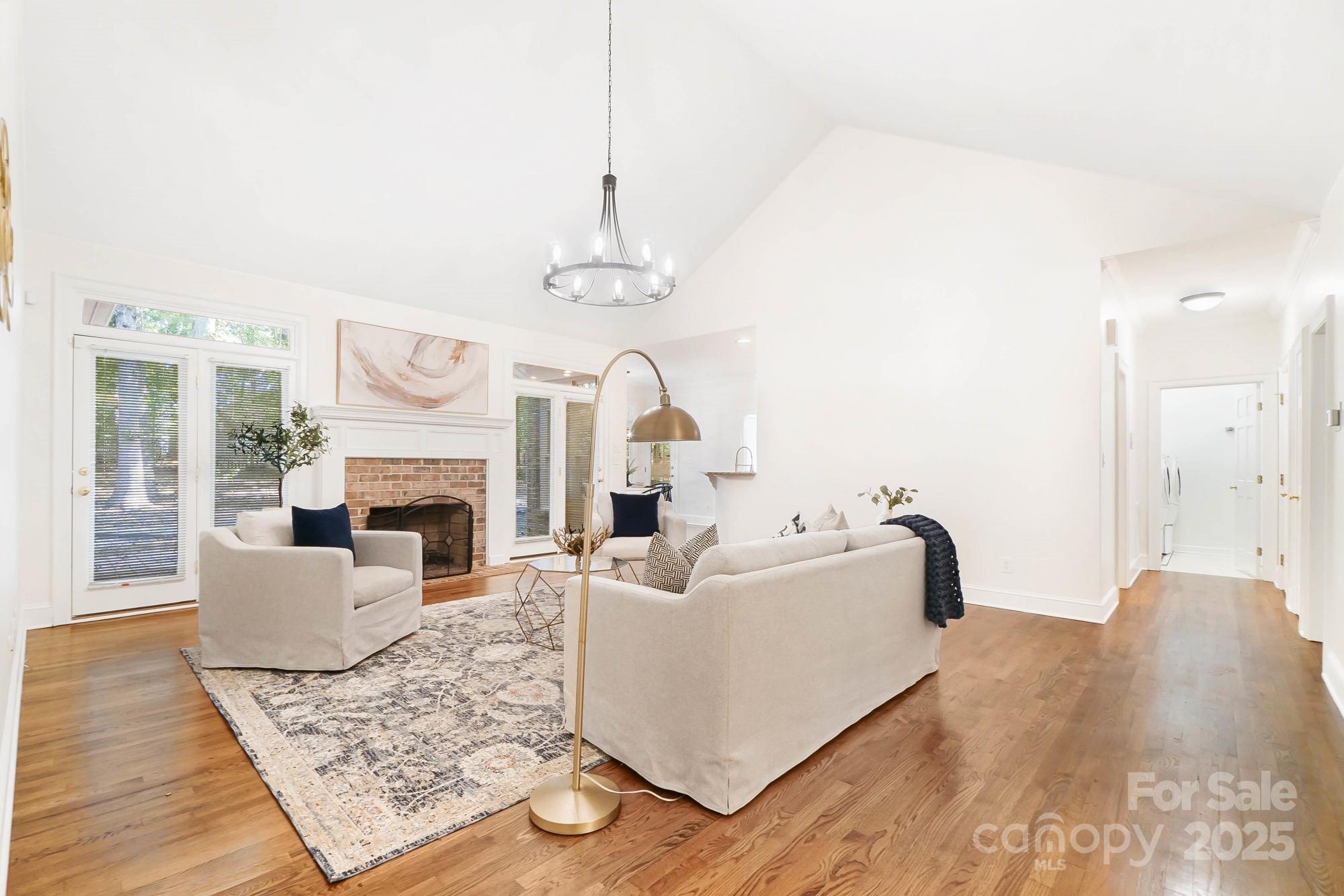 Welcome to this spacious, freshly painted 1.5-story brick home in Providence Hills! The main floor features a primary bedroom with two walk-in closets and a bathroom with a shower, tub, and dual vanities. Also on the main level are two additional bedrooms, a full bathroom, and a convenient half bath. Enjoy site-finished hardwood floors, recently professionally buffed, throughout the main level. The kitchen, complete with a new stainless steel refrigerator, living room, dining room, study, and laundry room are all situated on the main floor for easy living. Upstairs, you’ll find a spacious flex room, another bedroom, and a full bath ideal for guests, a playroom, or a home office. With abundant closets and storage throughout, staying organized is effortless. Relax on the enclosed porch with your morning coffee, or gather around the fire pit in the evening for cozy outdoor enjoyment. Enjoy the amenities this subdivision has to offer, including a clubhouse, outdoor pool, tennis and pickleball courts, and playground.