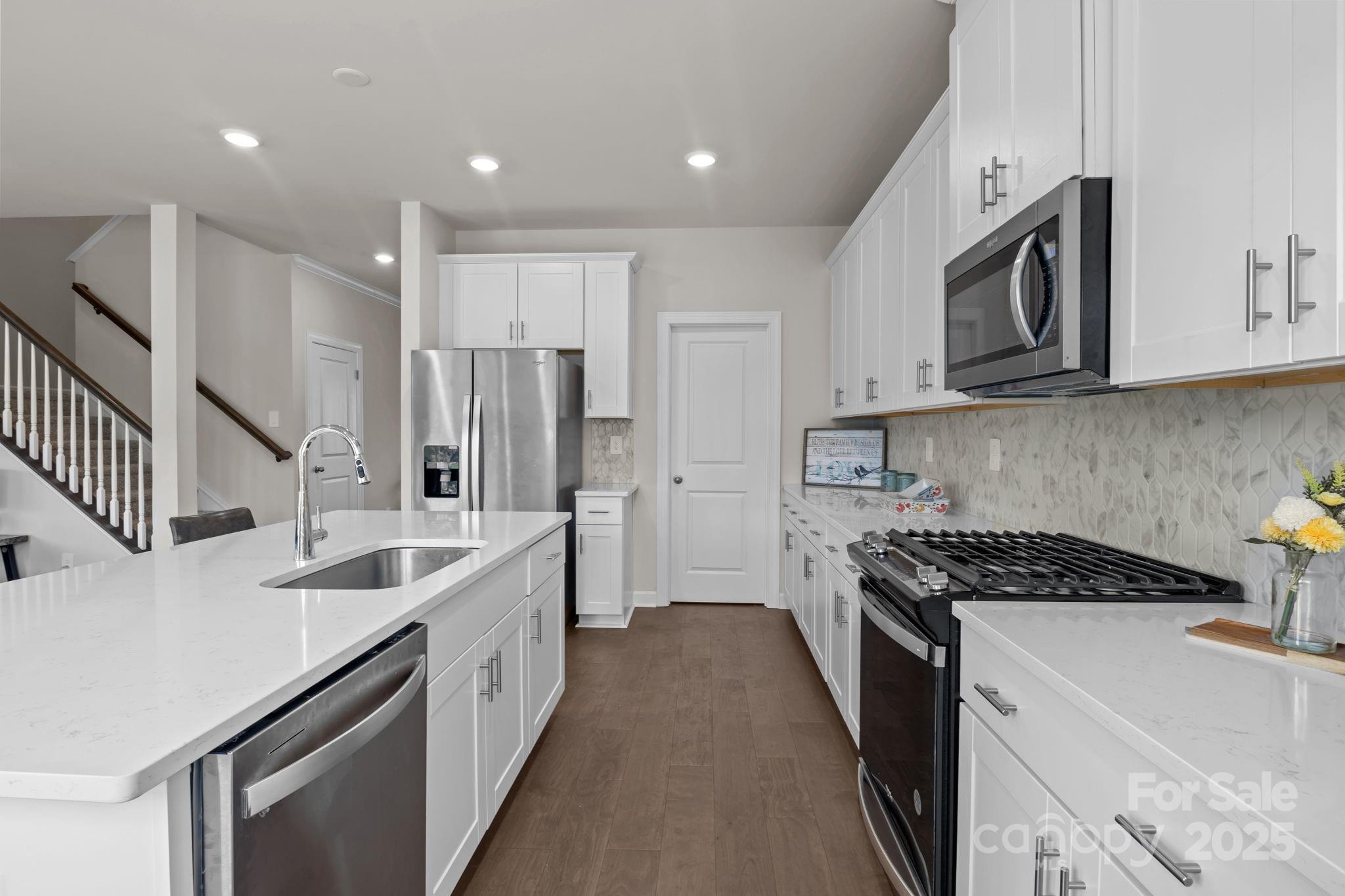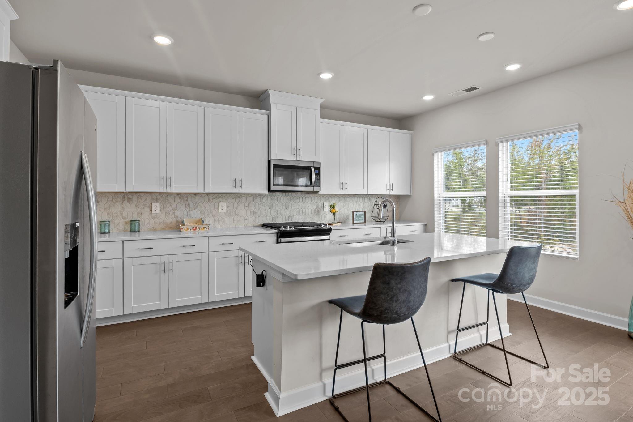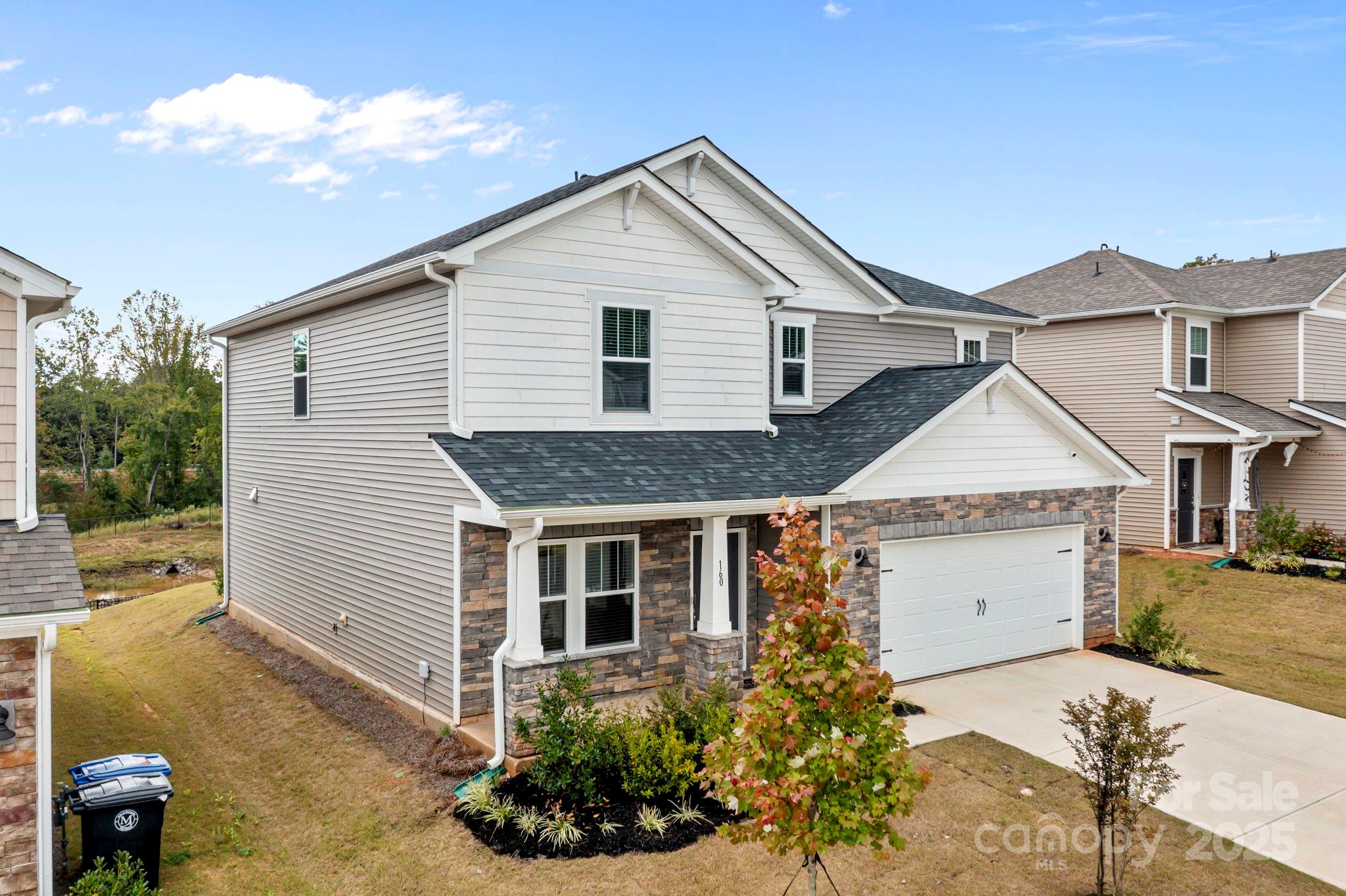 Beautiful 2024 like new energy-efficient home in desirable Shepherds Landing! Beautiful front landscaping and covered front porch welcome you into the home. Main level features a flex space for a formal living room or study. The large kitchen has plenty of cabinet storage, walk-in pantry, large countertop prep areas, gas range and fantastic island. There is room for casual dining and/or a more formal dining set-up. The kitchen/dining opens to the family room and a wall of windows creates a bright and open living environment. Sliding glass doors open to the patio. Off the attached two-car garage is a drop zone and half bathroom. Upstairs, the loft separates the secondary bedrooms from the primary suite and can serve as a second den, tv room, study or playroom. Primary suite includes double vanity, large walk-in closet and laundry room conveniently located in the suite. Shepherds Landing is a new community in Mooresville, close to shopping, dining and recreation around Lake Norman. This home is located very near the community resort style pool and cabana. Please remove shoes when touring the home!