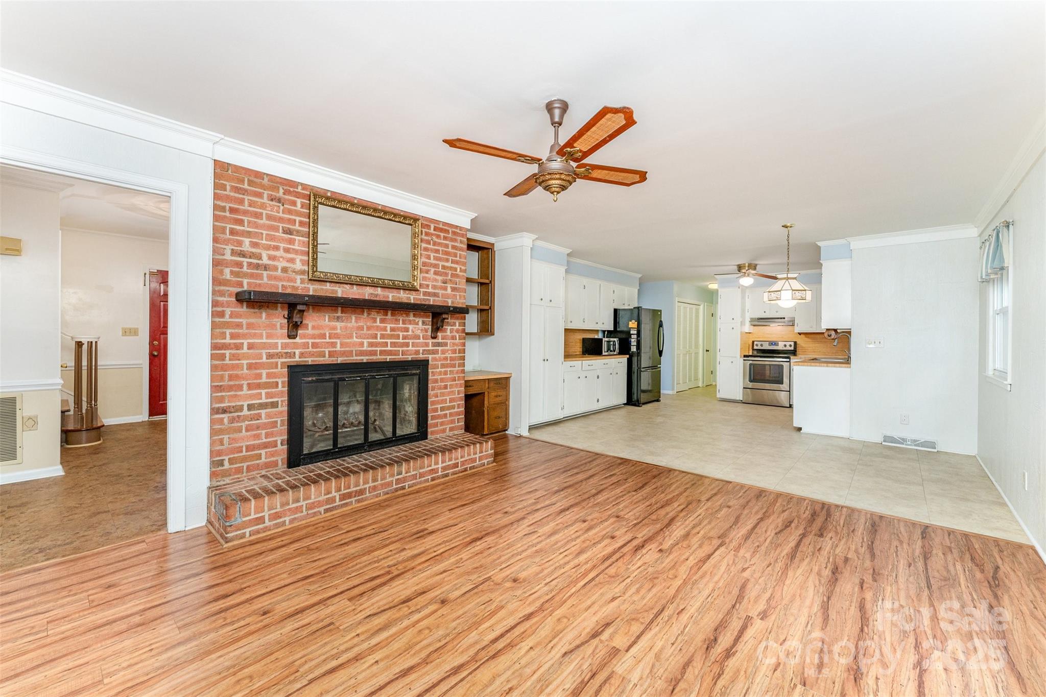 Welcome to this beautiful 4 bedroom, 2.5 bath home nestled on just under an acre of lush, landscaped property with no HOA. The expansive yard features a sturdy retaining wall and provides endless opportunities for gardening, play, or simply enjoying the peaceful setting. Inside, the popcorn ceilings have been removed and the ceilings freshly painted, giving the home a brighter feel. The kitchen flows seamlessly into the breakfast area and cozy den, making it perfect for everyday living and casual gatherings. A large great room with a charming bay window fills the space with natural light, offering an ideal spot for relaxing or entertaining guests. Throughout the home, you'll find a thoughtful mix of bedroom sizes to suit every need. Two generous bedrooms, including the primary, provide plenty of space for rest and unwinding, while the additional bedrooms are perfect for a home office, children's or guest room, or creative space. A walk-in attic offers convenient storage for all your seasonal needs. This home perfectly blends comfort, functionality, and outdoor beauty, ready for its next chapter.