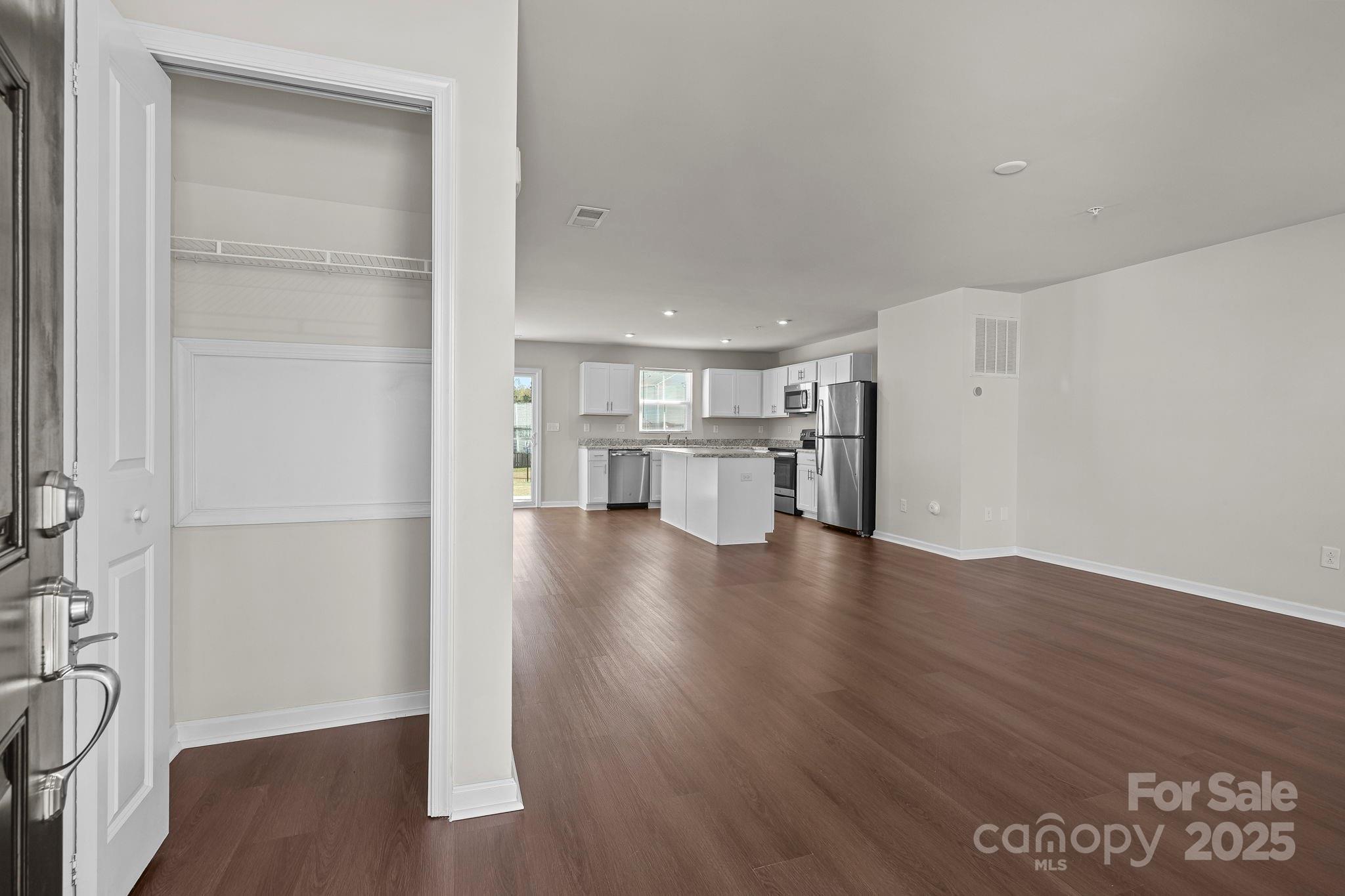 Welcome to this beautifully maintained 4-bedroom, 2.5-bath home featuring fresh interior paint and brand new flooring on the main level. Step into a bright and open floorplan that offers both comfort and flexibility, including a versatile flex room on the first floor. Upstairs, you’ll find all four generously sized bedrooms, each with ample closet space. The primary suite offers a private retreat with an ensuite bathroom. For added convenience, the laundry room is also located on the second floor—right where you need it most. As a bonus, this home is equipped with a built-in fire sprinkler system, offering an extra layer of safety and peace of mind. This move-in ready home offers the perfect blend of style and function, and comes complete with a washer, dryer, and refrigerator to make settling in a breeze. Don’t miss your chance to make it yours! Located in the Pendleton neighborhood with easy access to Hwy 49 and Hwy 3 (Branchview Dr) and Hwy 601. Newly amended CCRs for Pendleton state no rental properties. For details, please review amended CCRs. Water runoff grate in back corner of property