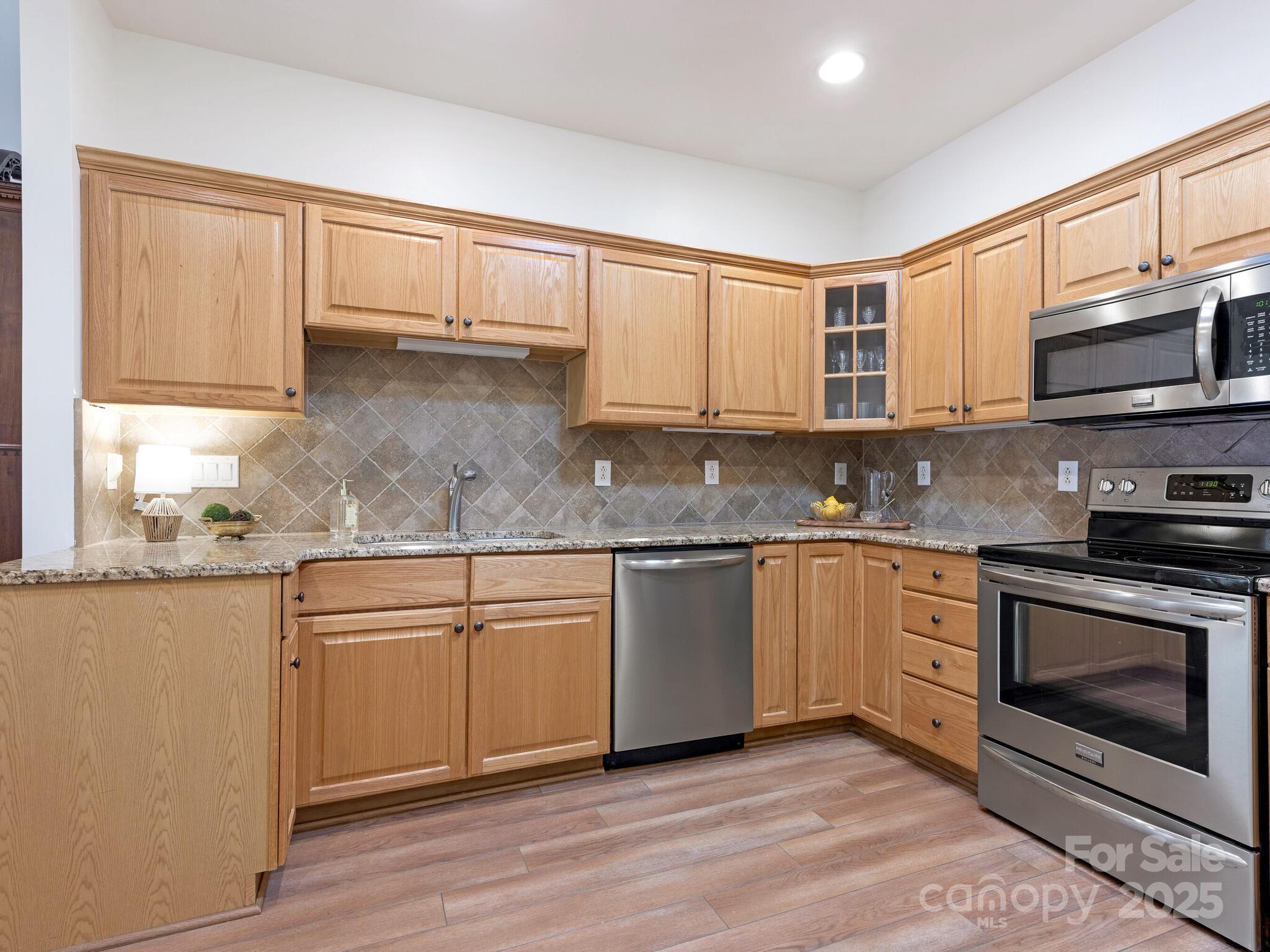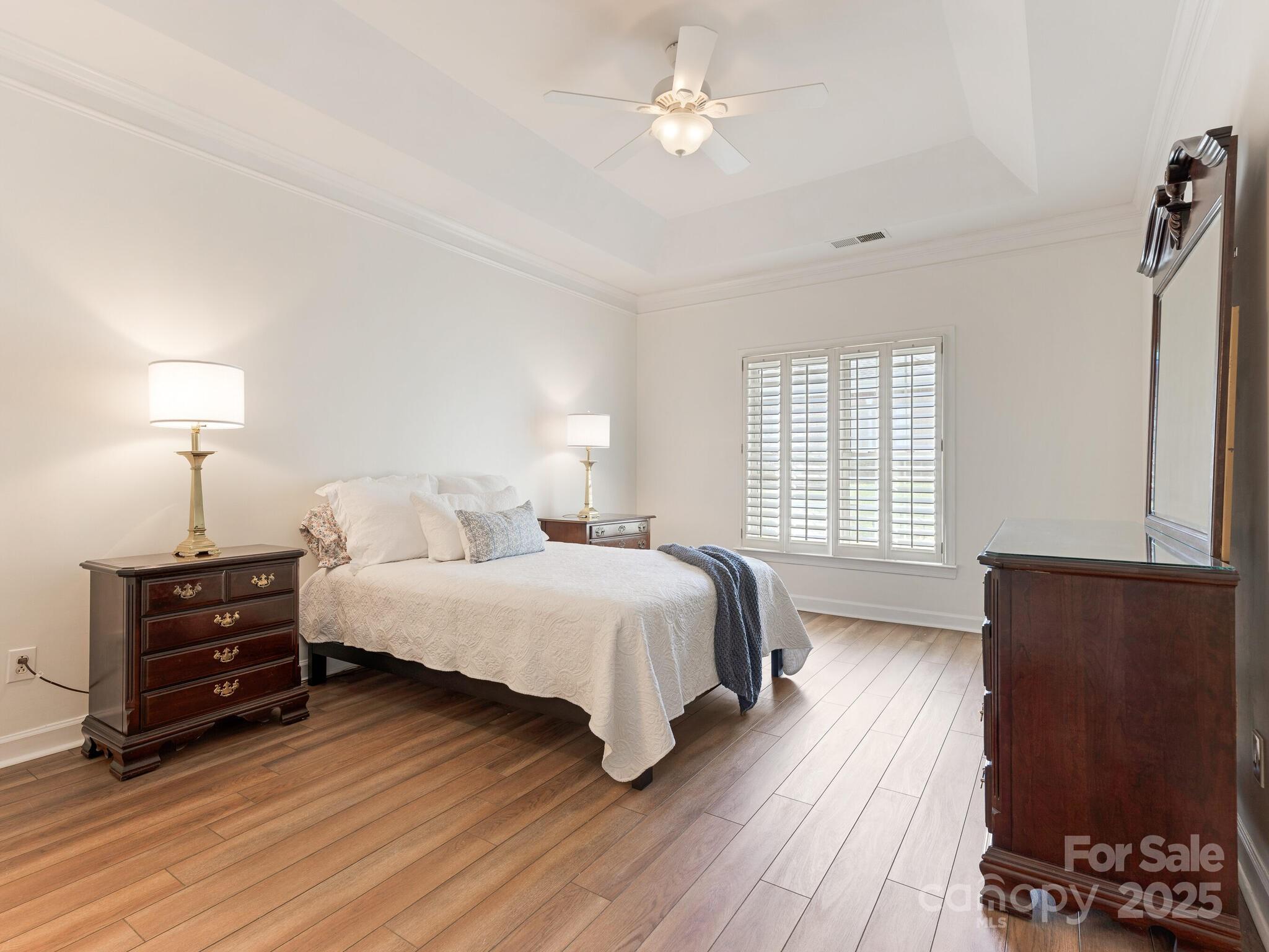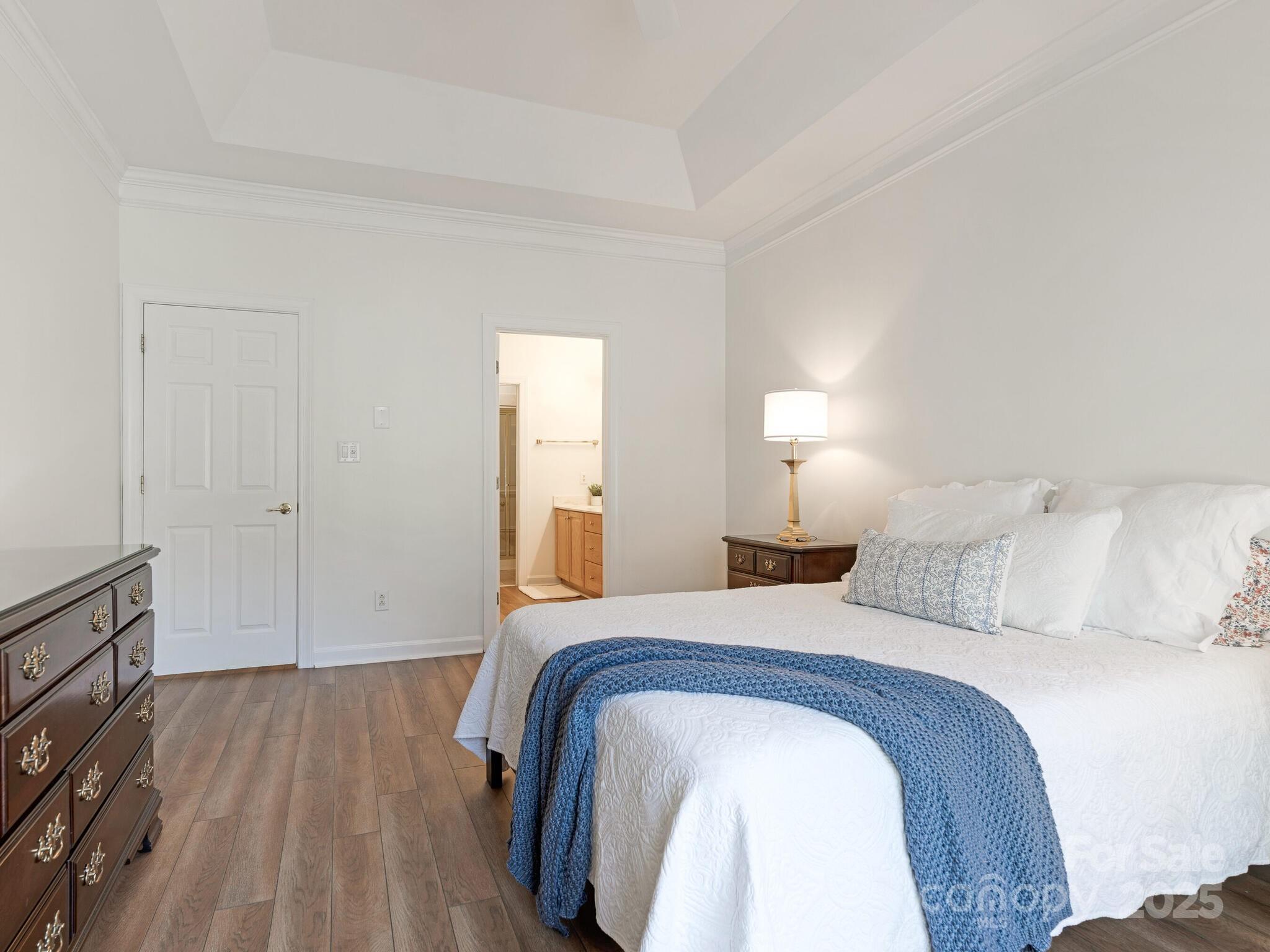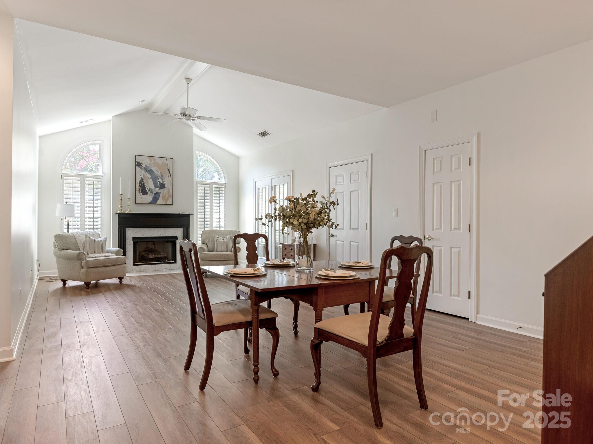 Welcome to one-level living in South Charlotte! Come on back and take a look! We are back on market and ready to sell! This beautifully maintained home in the Villages of Troon offers an open floor plan with cathedral ceilings, custom fireplace surround, and fresh paint throughout. No carpet—new luxury vinyl plank flooring throughout! The spacious kitchen features granite counters, stone backsplash, stainless appliances, recessed lighting, skylight, built-in desk, and pantry. Both bedrooms are en-suites with walk-in closets. The primary bath has dual vanities and a shower enclosure with bench; the second bath offers a soaking tub. Enjoy a sunroom with new flooring and serene pond views. Oversized 2-car garage with custom storage. HVAC and furnace (2013) with Morris-Jenkins Platinum Warranty, water heater (2011). Community includes clubhouse and pool. HOA covers exterior termite, water, base internet. Ideally located near Stonecrest, Blakeney, and Ballantyne! We are back on market-NO FAULT of buyers or sellers. Just didn't work out. No inspections were performed, no financing was initiated.
