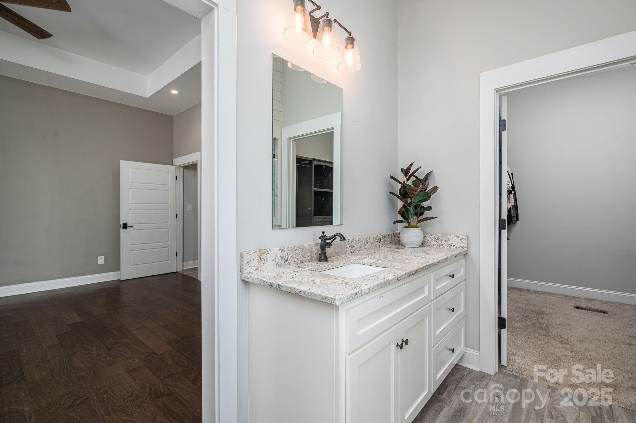 Welcome to this beautifully maintained 3-bedroom, 2.5-bath home offering a spacious and functional floor plan perfect for both everyday living and entertaining with NO HOA. Enjoy abundant natural light through large windows and an open-concept layout that seamlessly connects the living, dining, and kitchen areas. The gorgeous kitchen features custom cabinetry, a large center island, quartz countertops, a stunning brick backsplash, a walk-in pantry, and stainless-steel appliances. Situated on a 1.56± acre lot, this property provides plenty of privacy with a wooded backyard and a covered back porch ideal for outdoor gatherings and relaxation. The primary suite impresses with a tray ceiling, expansive windows, and a luxurious ensuite bath complete with dual vanities, a soaking tub, a tiled shower, and a custom walk-in closet. Additional highlights include a split-bedroom layout with a Jack-and-Jill bath, a private office, a spacious bonus room over the garage, and a laundry room with abundant storage. Conveniently located near Highway 150, offering easy access to nearby amenities and commuting routes.