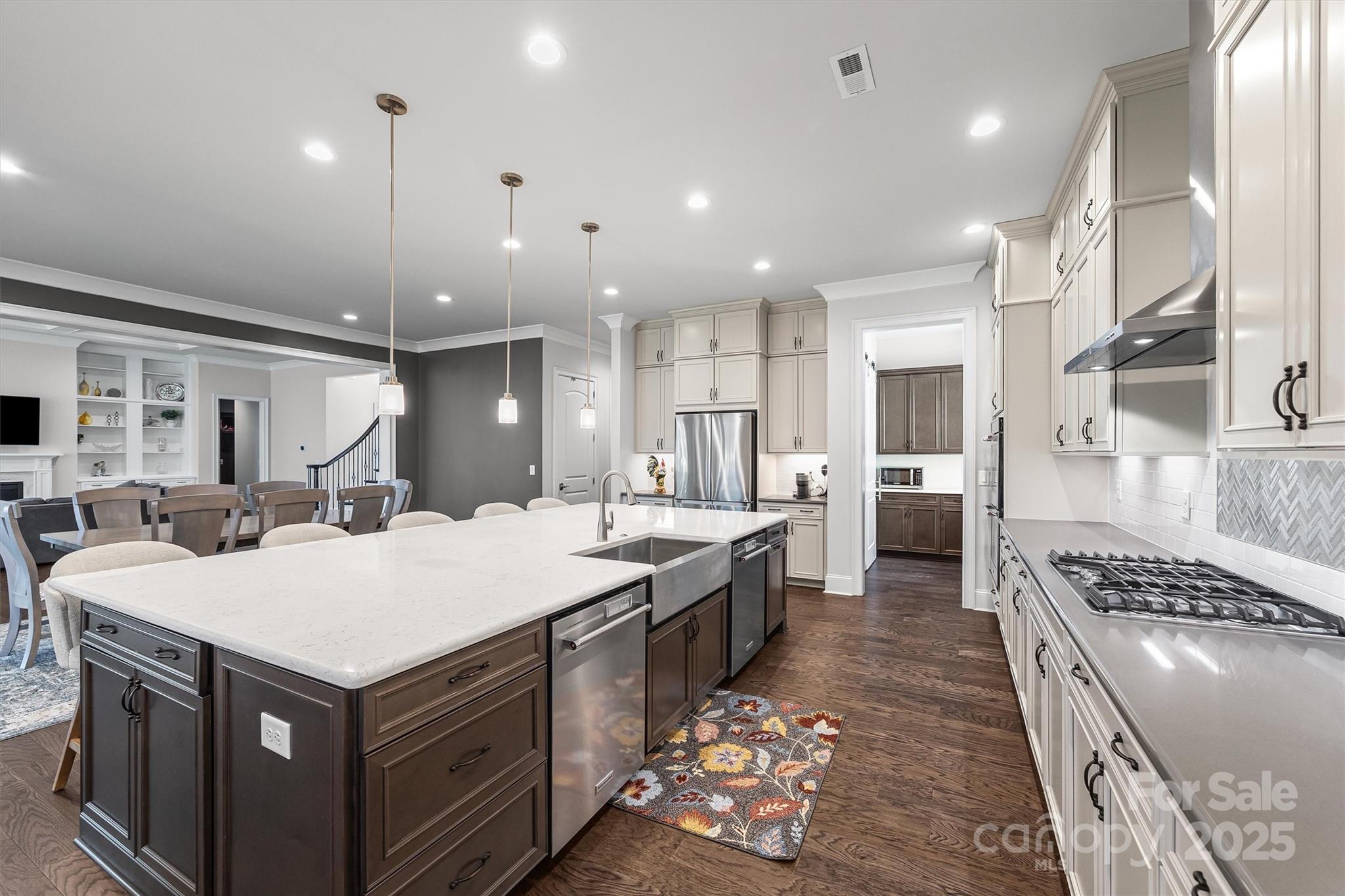 This extraordinary home offers the perfect blend of timeless elegance, modern luxury, and thoughtful design in one of the area’s most desirable communities. With 6 spacious bedrooms, 6 full and 2 half beautifully appointed bathrooms, and 2- 2-car garages, this home is built to impress at every turn. Step inside and experience the grandeur of a soaring 12-foot trey and coffered ceiling in the great room, engineered hardwood floors, and solid wood interior doors that add warmth and sophistication throughout. The open-concept layout creates a seamless flow between living, dining, and entertaining spaces, filling the home with natural light and a sense of effortless comfort. The gourmet kitchen is a true showstopper, featuring quartz countertops, stainless steel appliances—including two refrigerators and two dishwashers—a farmhouse sink, under counter lighting, and a second prep kitchen with a walk-in pantry. Whether you're hosting a dinner party or preparing a quiet meal at home, this kitchen is designed to meet every need with style and efficiency. The primary suite is a private retreat, offering two custom walk-in closets, dual toilets, and a spa-like ensuite bath with a 6' luxury soaking tub. Each additional bedroom is generously sized, with access to beautifully finished bathrooms that reflect the same level of quality and care. Function meets luxury in the oversized laundry room, complete with washer, dryer, sink, and counters, as well as a huge drop zone perfect for organizing daily essentials. A second-floor balcony off the bonus/media room provides a peaceful outdoor escape, while 2 tankless gas water heaters and full-yard irrigation system add convenience and efficiency. Beyond the home itself, residents enjoy access to a beautifully maintained community pool and playground—ideal for relaxing weekends, and connecting with neighbors in a vibrant, welcoming environment. From its expansive layout and high-end finishes to its great location and community amenities, this home offers a rare opportunity to live in luxury without compromise. It’s more than a home—it’s a lifestyle.