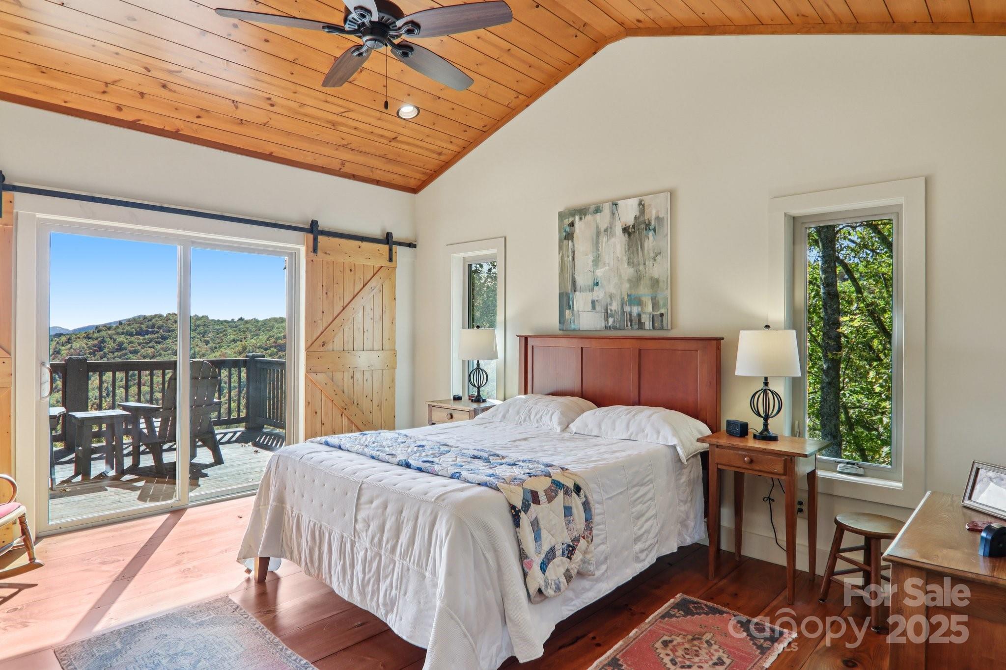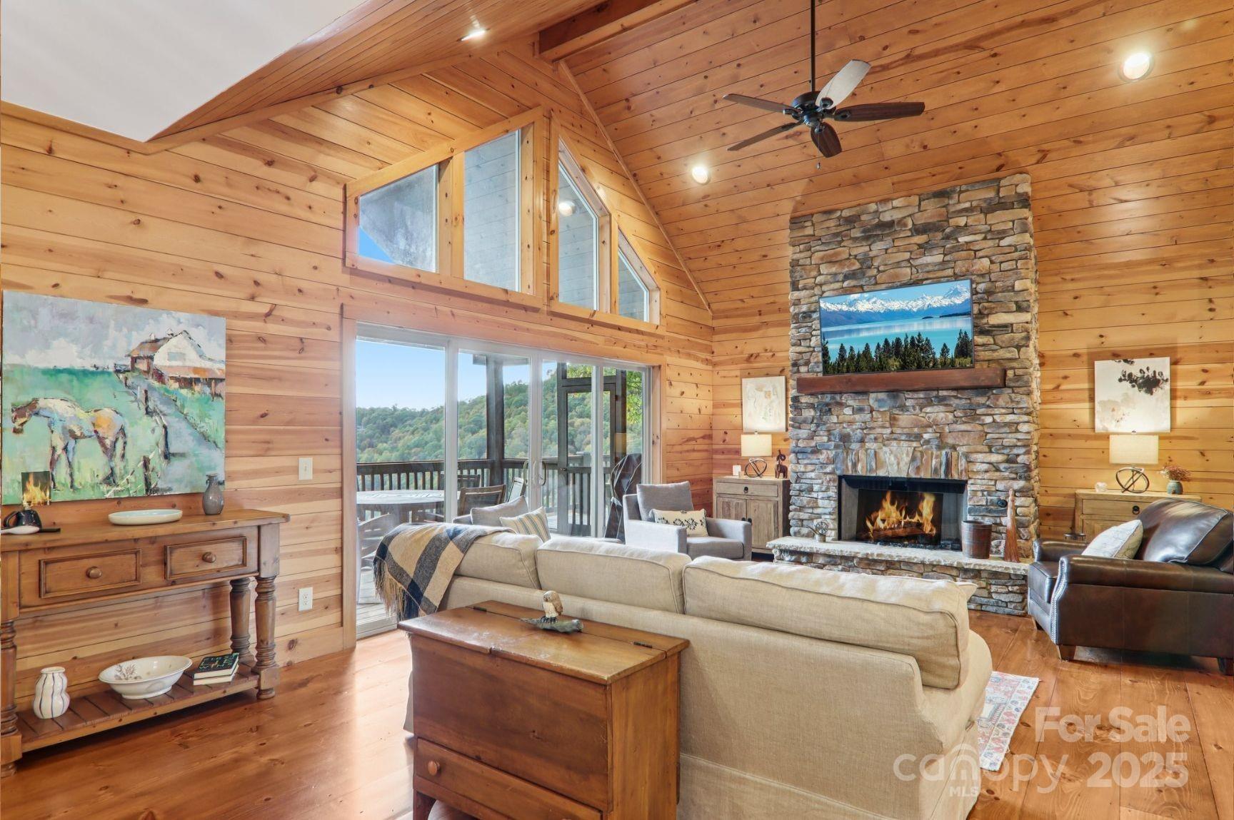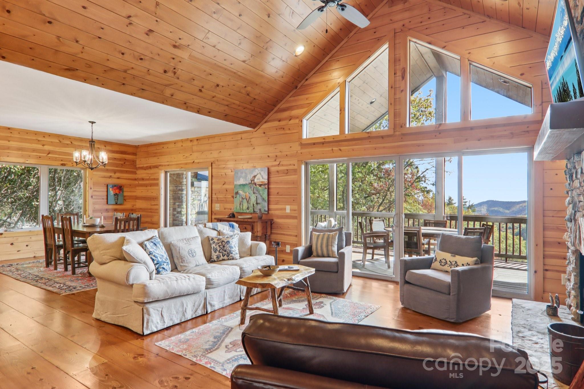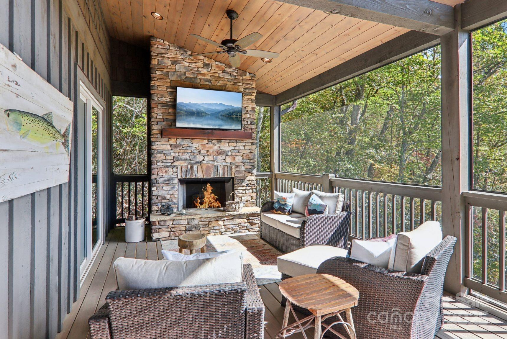 Looking for a private mountain view paradise? Check out this incredible newer mountaintop home on 4.2 acres with Southern Exposure and Big Mountain Views down a level paved 650' long driveway. Enjoy open the floorplan with large modern kitchen, a vaulted open living area with gas stone fireplace, the big master bedroom suite, an open deck and the large screened-in outdoor living room with gas fireplace, all overlooking the big southerly mountain views at 4100' elevation. 2 car breezeway connected garage. Downstairs has a large family room, plenty of storage, second master suite, and 2 more bedrooms sharing another full bathroom, plus another big deck with southerly mountain views. Full house generator. This well maintained home comes fully furnished and move-in ready to enjoy fall in the mountains! Directly across the street from the Divide Pavilion, the Panthertown Valley National Forest and the Eastern Continental Divide.